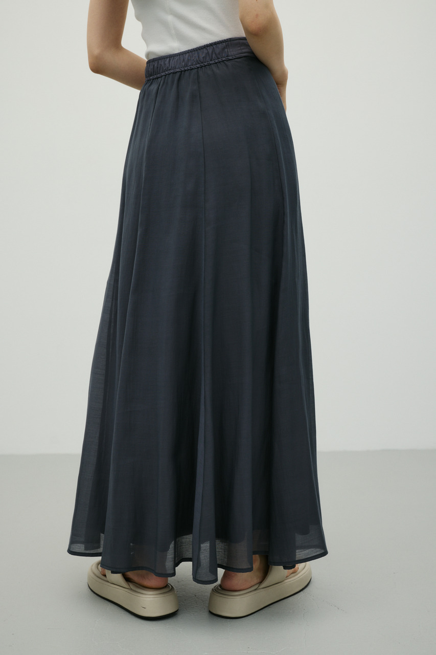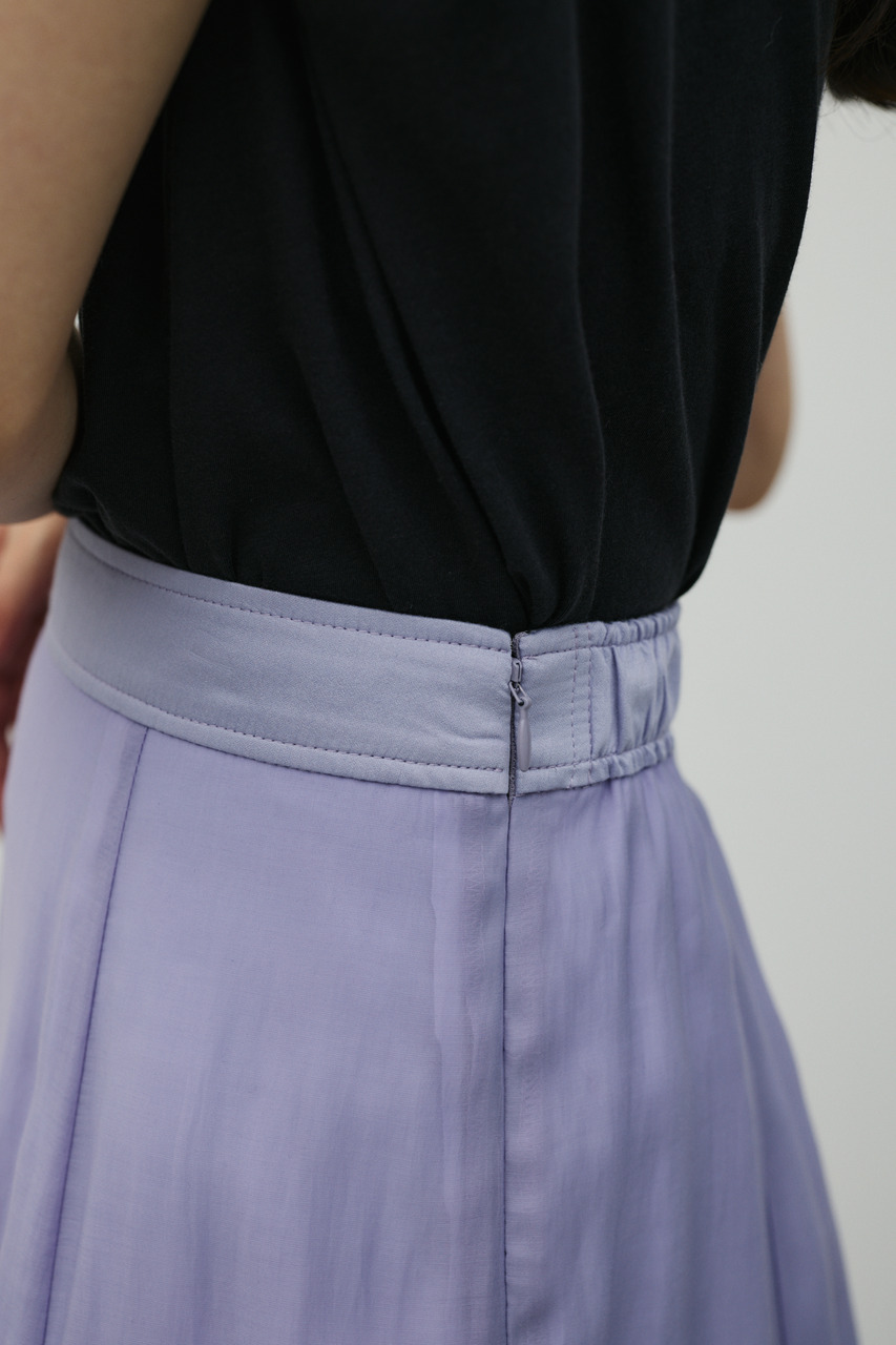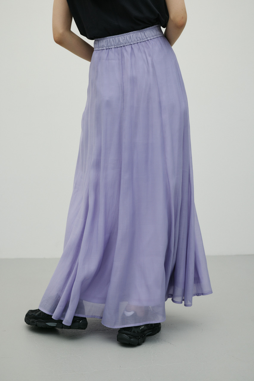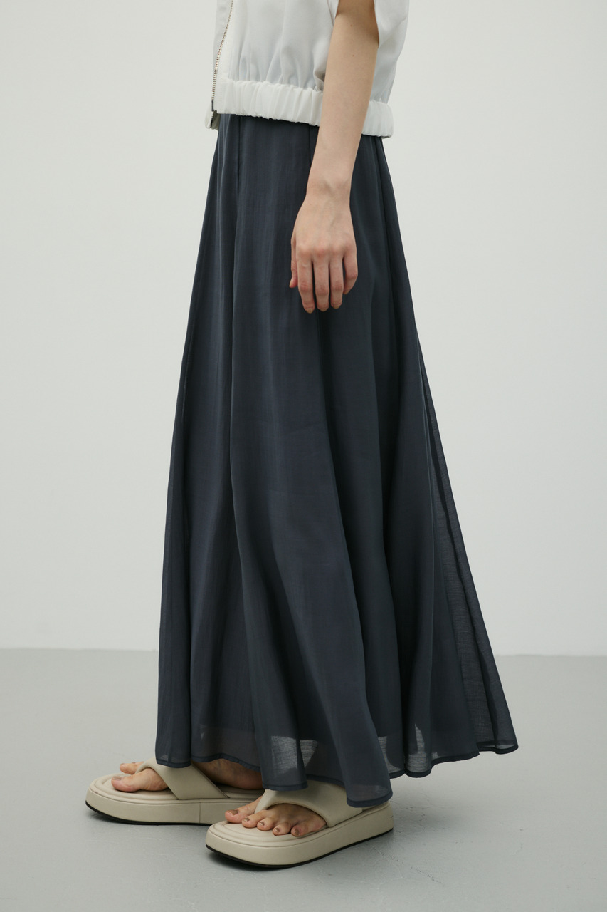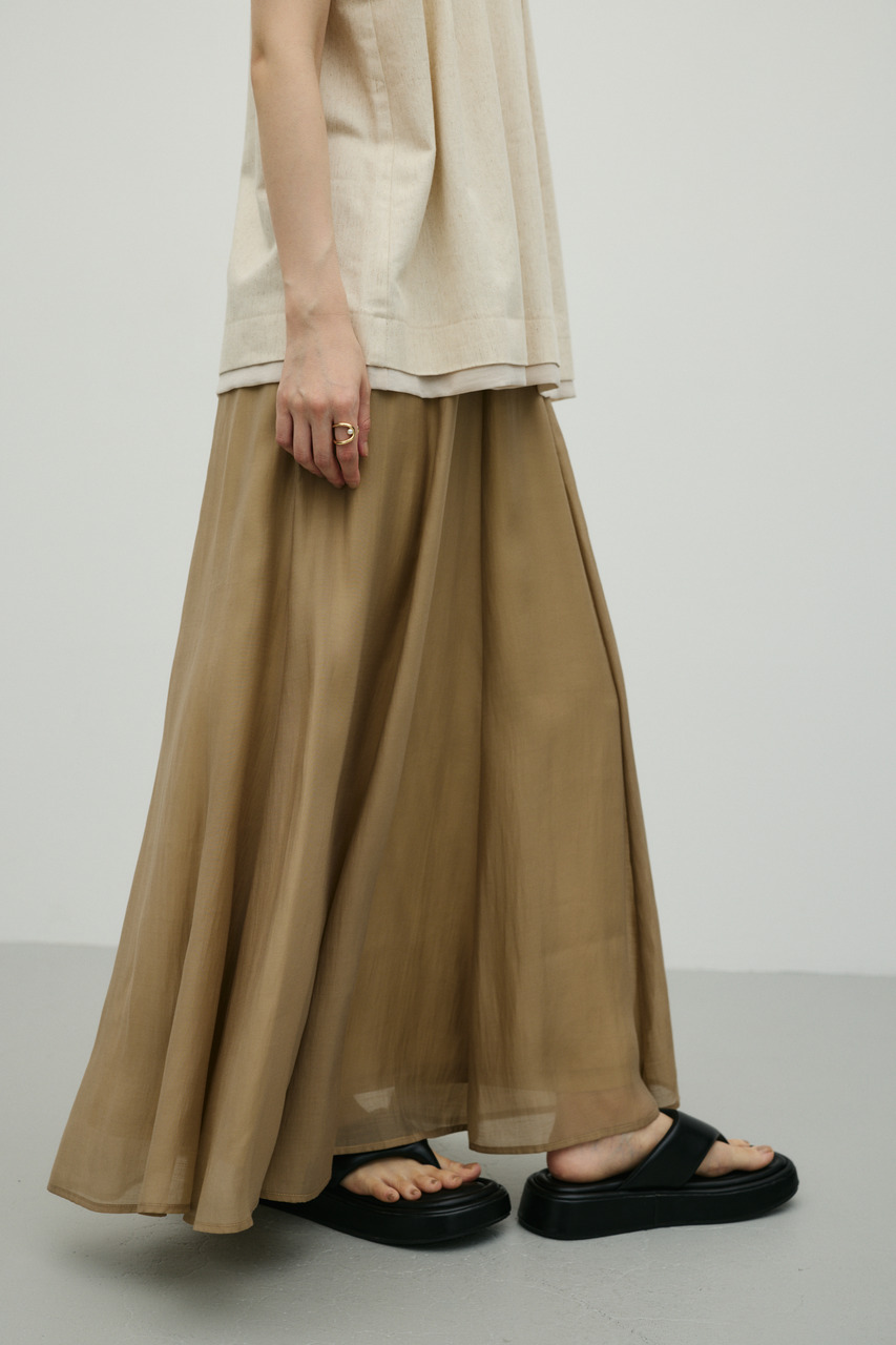 軽やかなシアー生地がポイントのフレアスカート。すっきりとしたウエスト周りから裾に向かって広がるフレアシルエットで女性らしい印象に仕上げました。デイリースタイルに程よいアクセントを加えてくれる一枚です。透け感あり(裏地付き)、ストレッチなし。