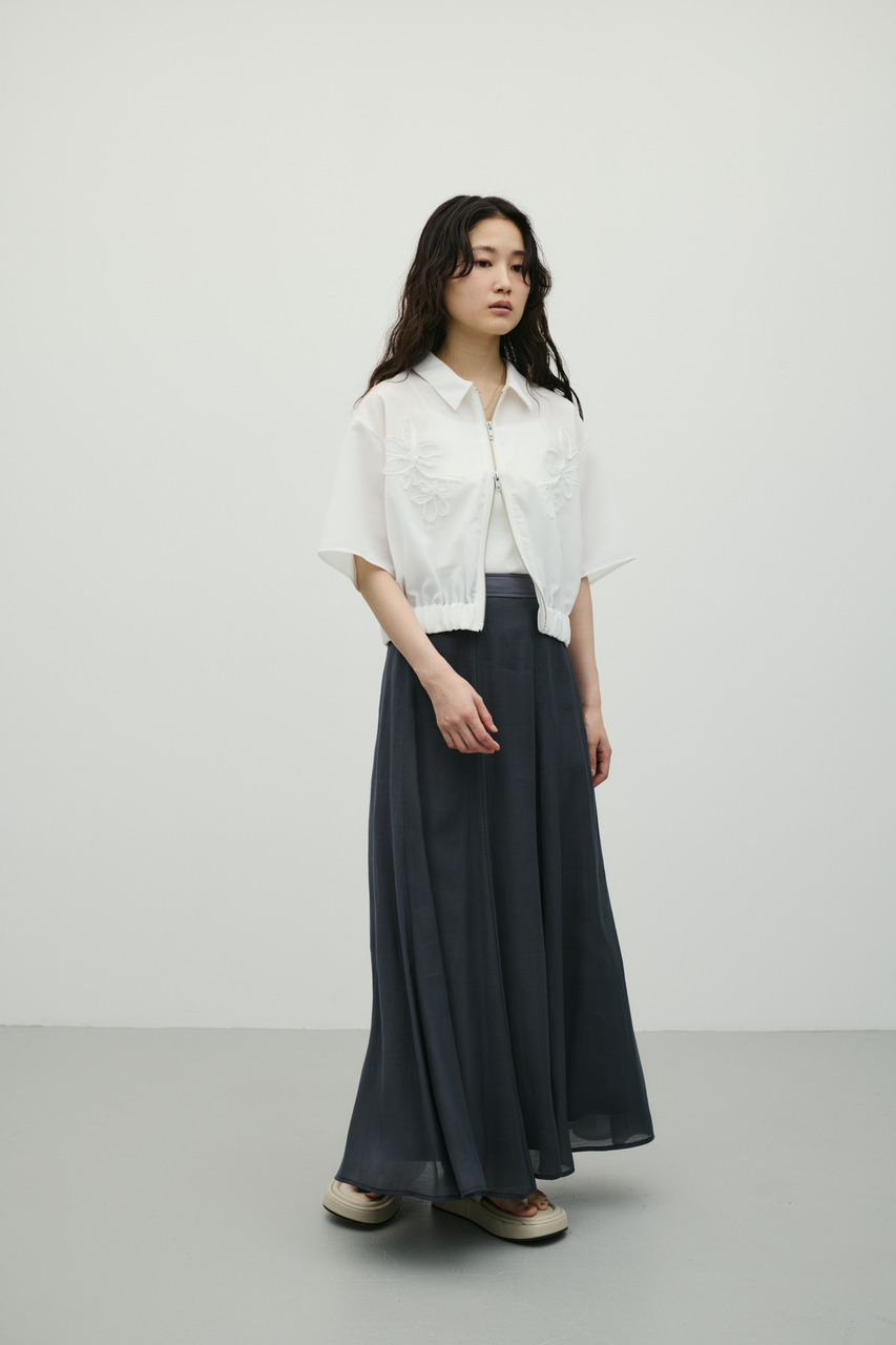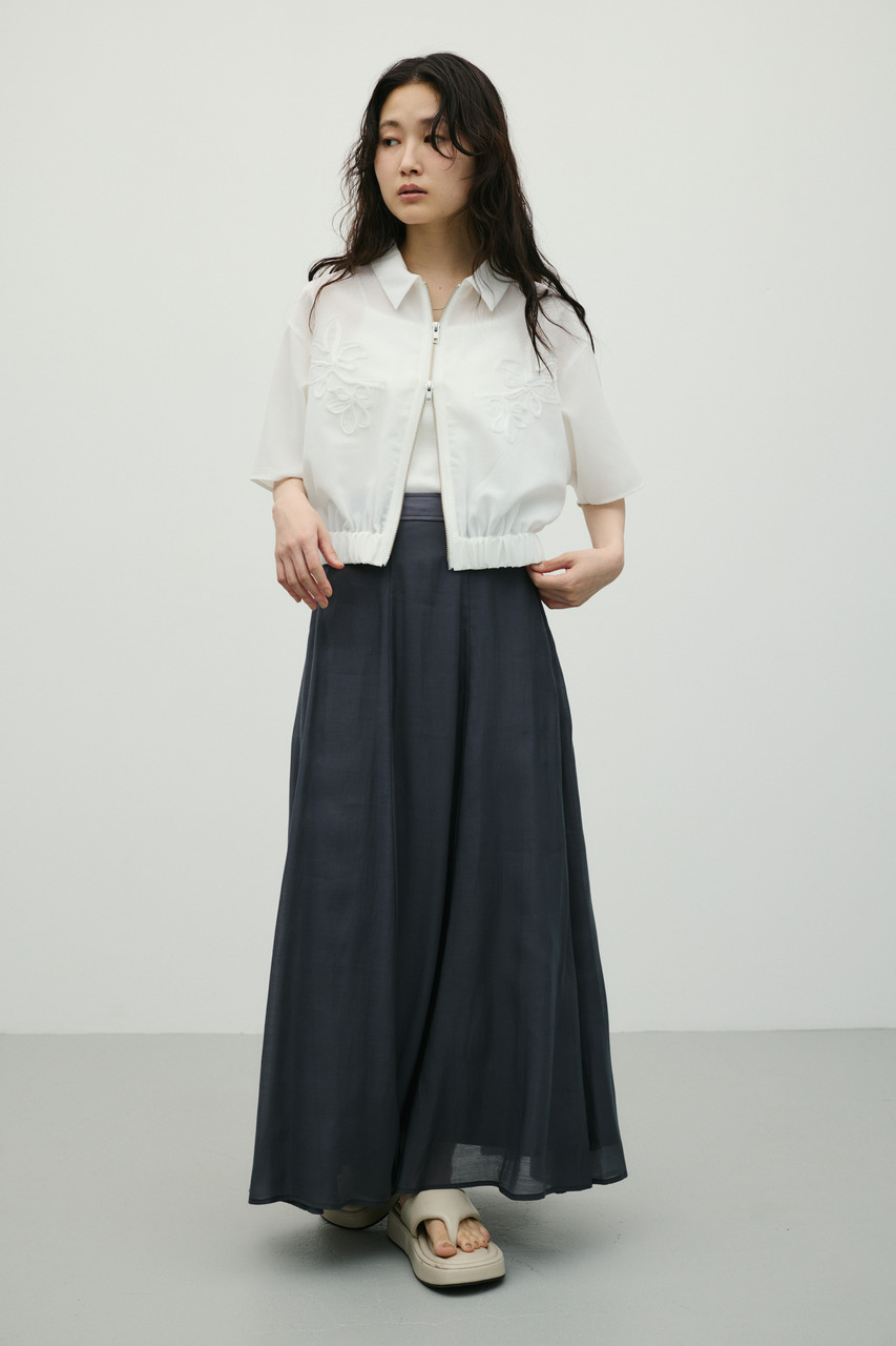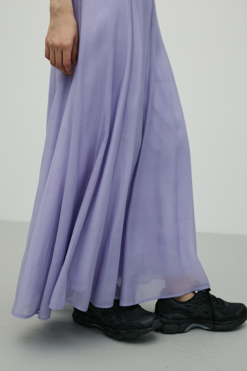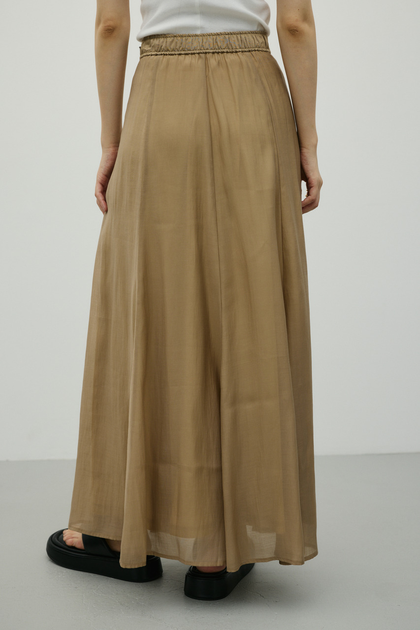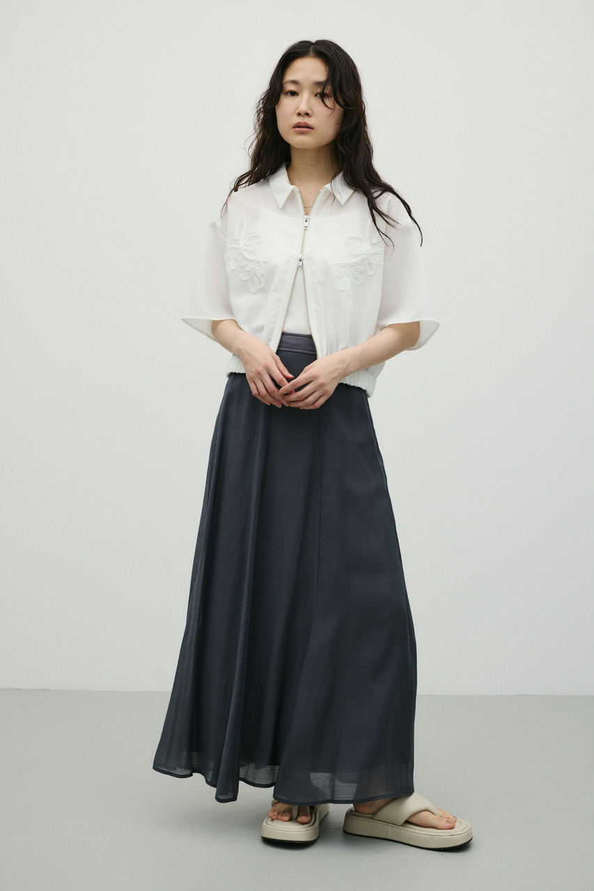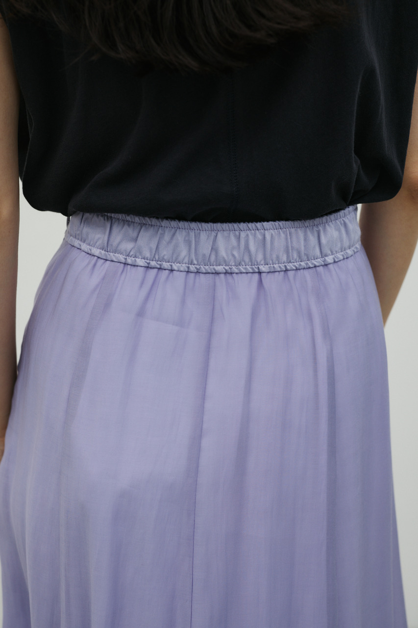 軽やかなシアー生地がポイントのフレアスカート。すっきりとしたウエスト周りから裾に向かって広がるフレアシルエットで女性らしい印象に仕上げました。デイリースタイルに程よいアクセントを加えてくれる一枚です。透け感あり(裏地付き)、ストレッチなし。