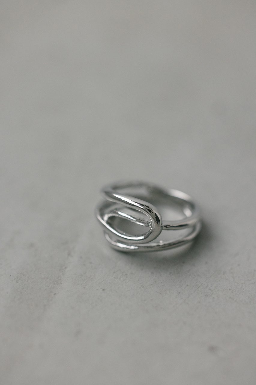 カーブラインがモードなリング。立体的なデザインがポイントで手元を華やかに見せてくれます。