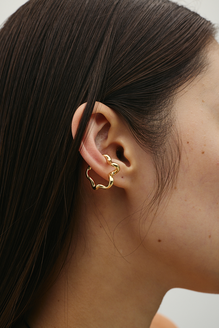 ウェーブラインで存在感のあるイヤーカフ。指先につけてリングのような着用にもおすすめです。