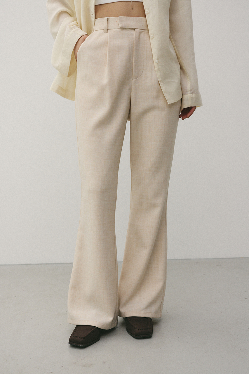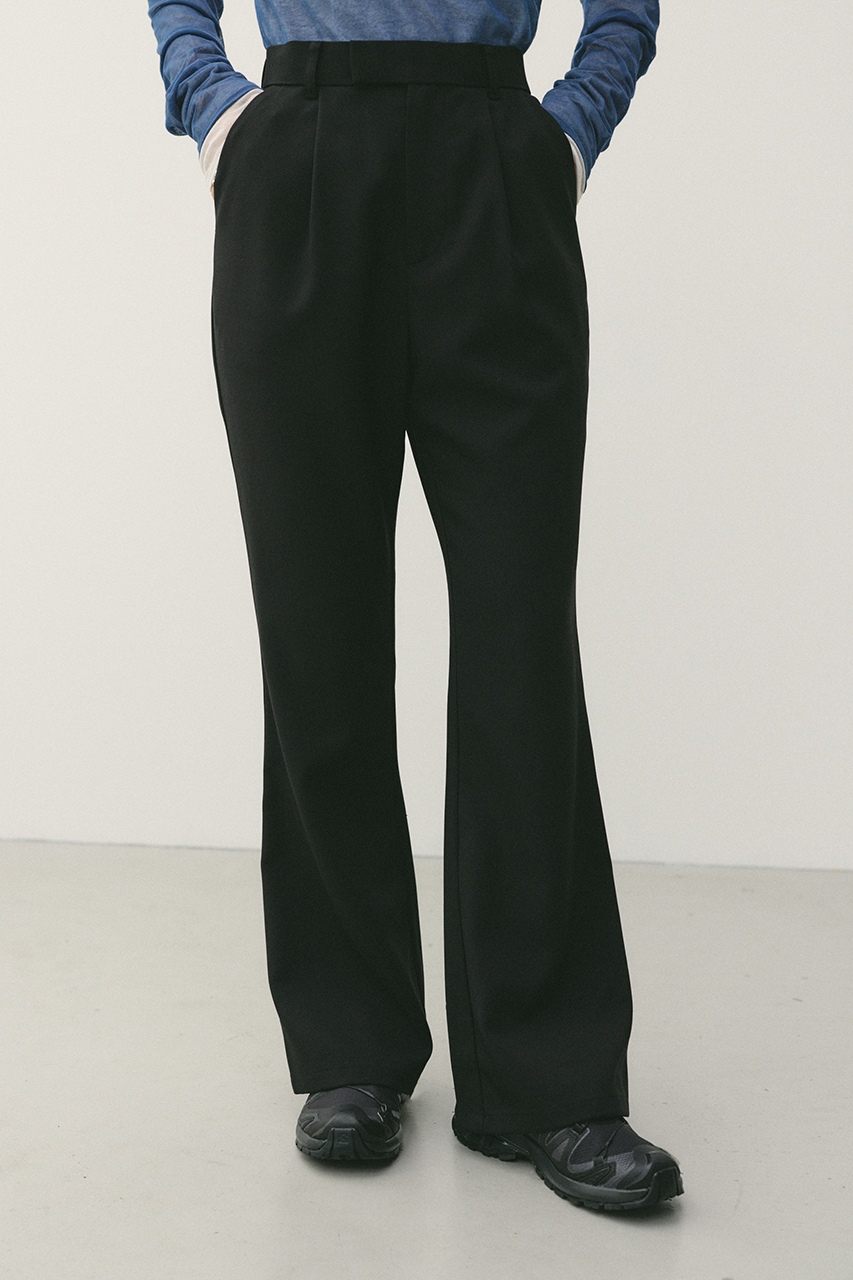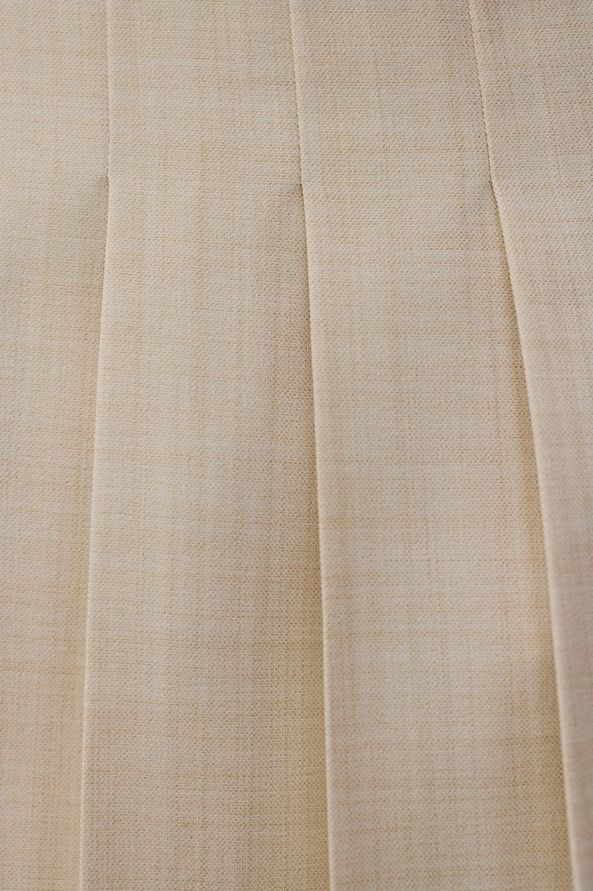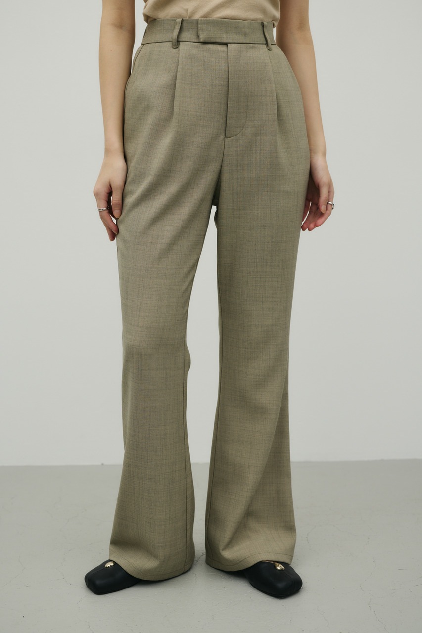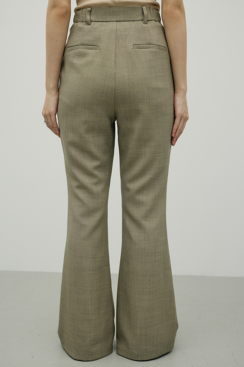 単品使いも可能なラッププリーツスカートとフレアパンツがセットになった2ピースアイテム。膝から裾にかけて広がるフレアシルエットのパンツが、脚のラインをすっきりと美しく見せます。プリーツスカートは気分やスタイリングに合わせて紐を一重巻き・二重巻きとアレンジが可能。セットでの着用はもちろん、お手持ちのパンツとレイヤードするなど、幅広いコーディネートが楽しめる一枚です。裏地付き。500JSO30-3211(テーラーカラーオープンシャツ)とのスタイリングがおすすめです。ストレッチややあり、透け感なし。