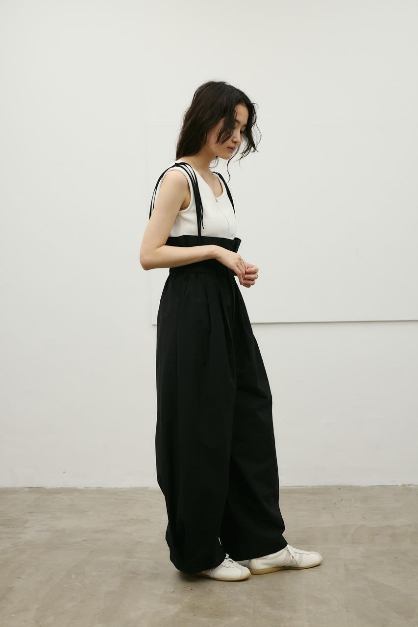 ウエストにフリップベルトのディテールを効かせたデザインタックパンツ。軽やかで程よいハリ感のある素材を使用しており、動きに合わせてニュアンスのある表情を見せてくれます。立体的なタックがシルエットをきれいに整え、モードな印象をキープしながらもデイリーに取り入れやすい一本。シャツやジャケットを合わせれば洗練されたスタイルに、Tシャツやニットでカジュアルに着こなすのもおすすめです。ストレッチなし、透け感なし。