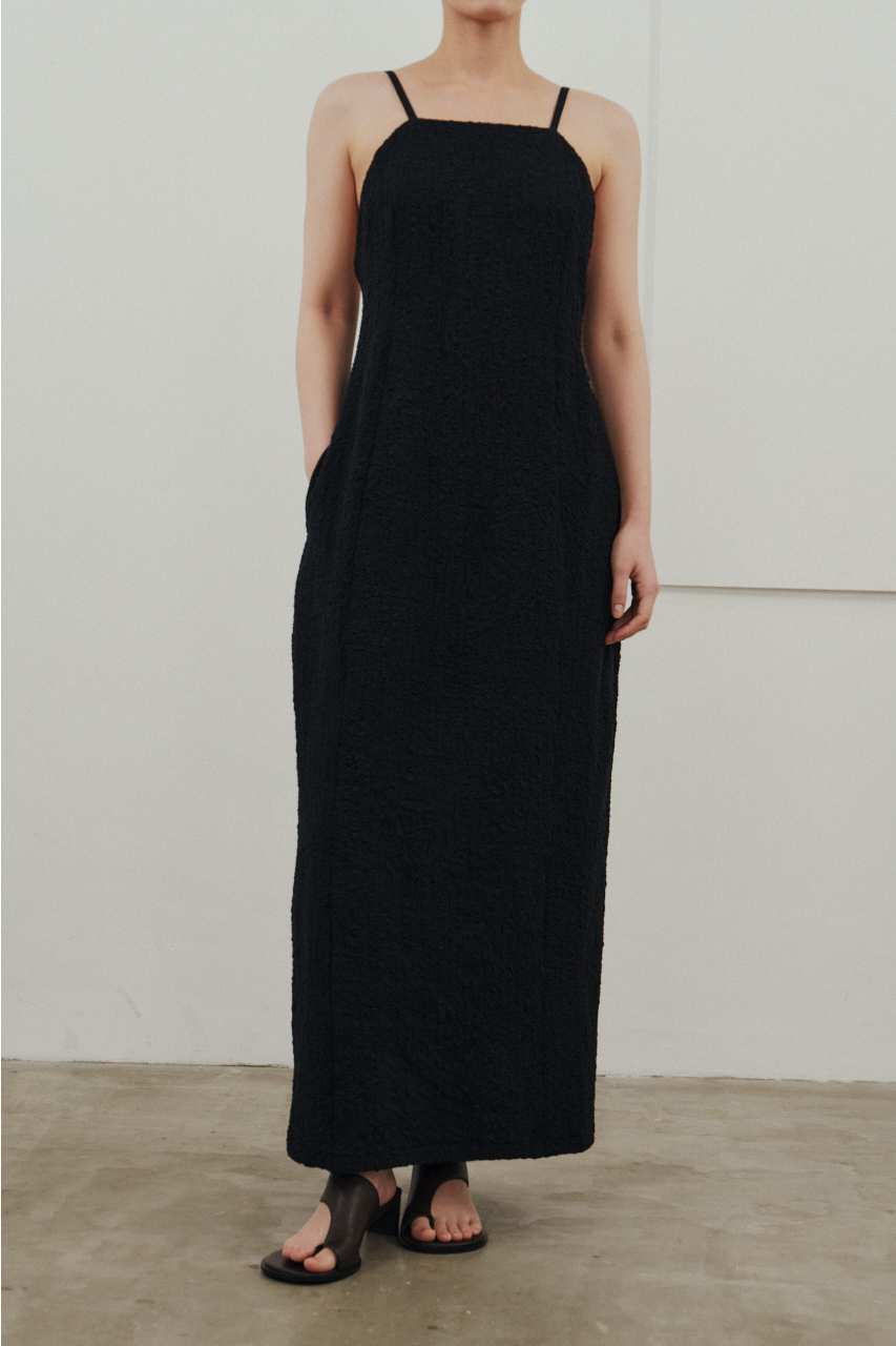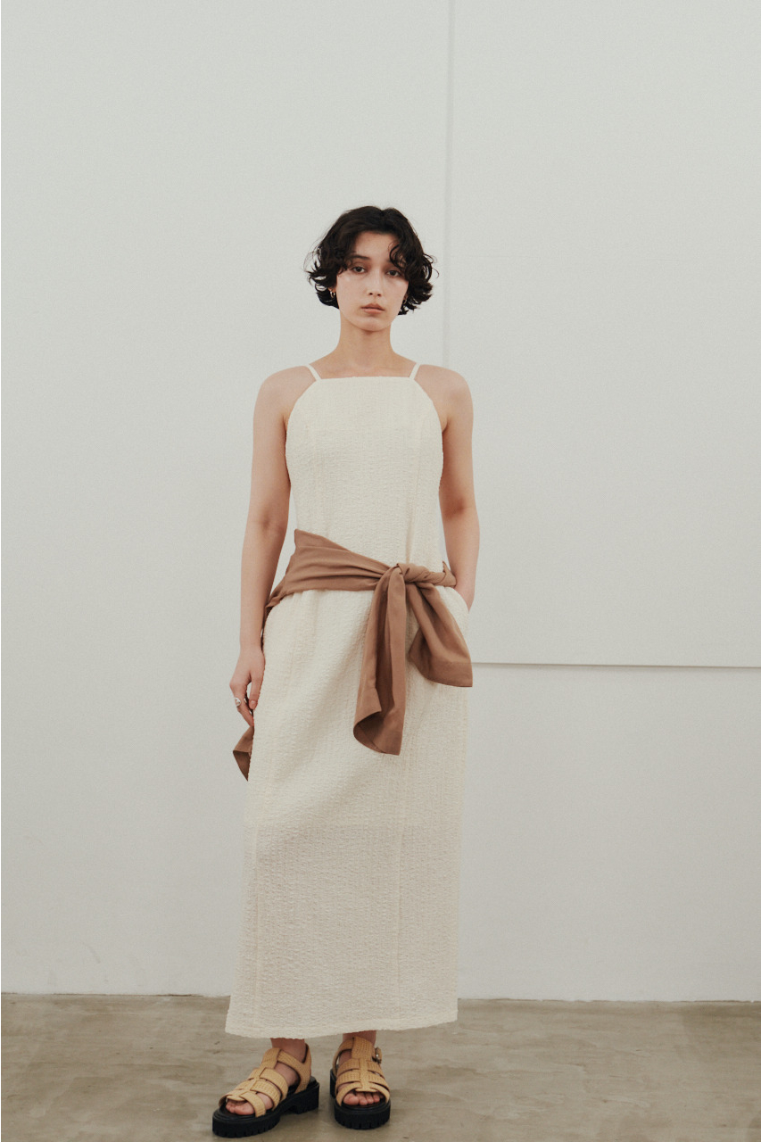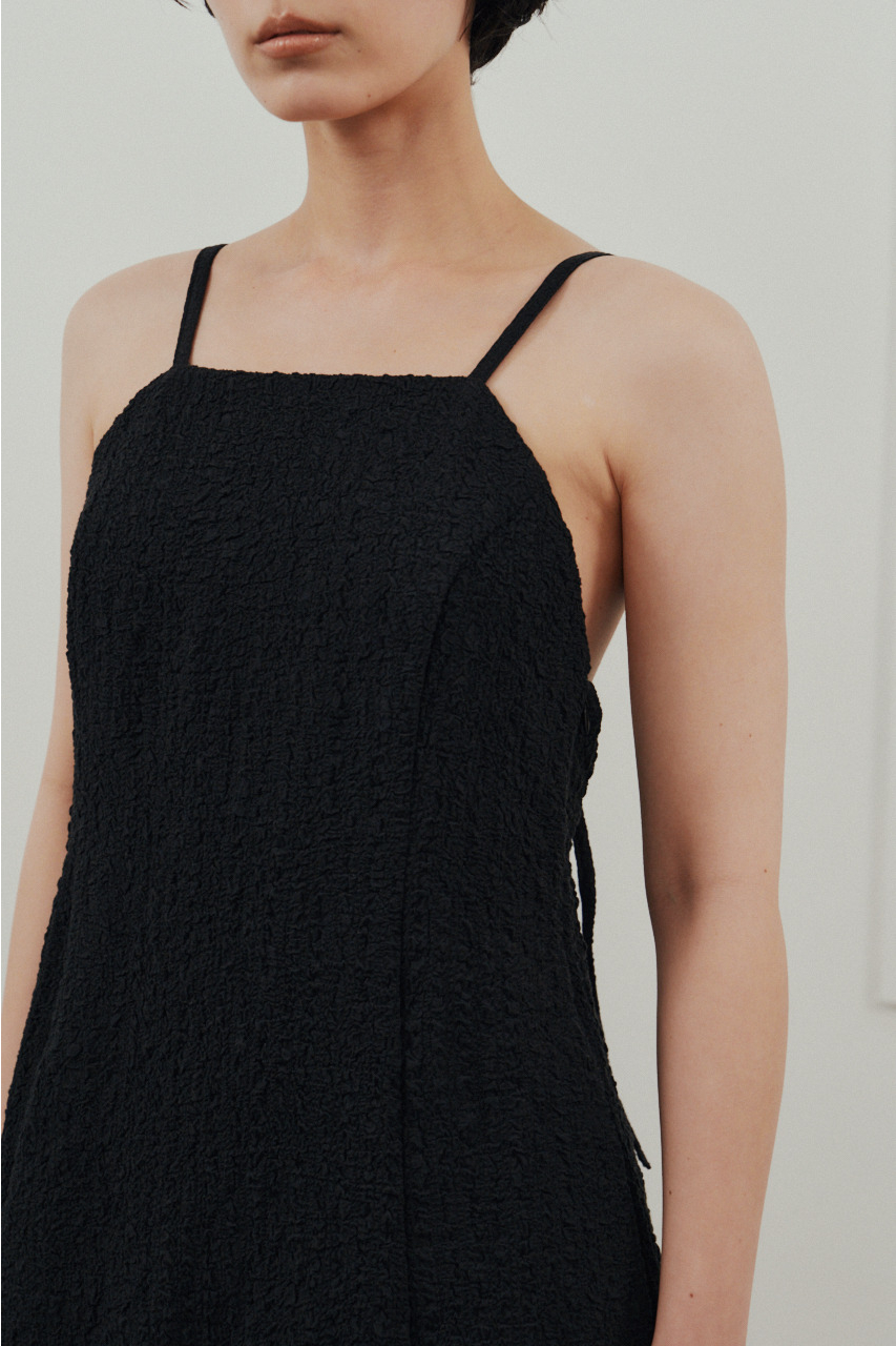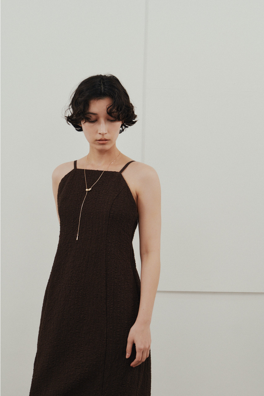 背中を大きく開けたバックオープンデザインが印象的なキャミワンピース。シンプルなフロントデザインとのコントラストで、バックスタイルは抜け感と存在感を演出。1枚でドレスライクに着こなすのはもちろん、Tシャツやシアートップスとのレイヤードでカジュアルダウンでの着用もおすすめ。リゾートからタウンユースまで幅広く活躍する、主役級の一枚です。