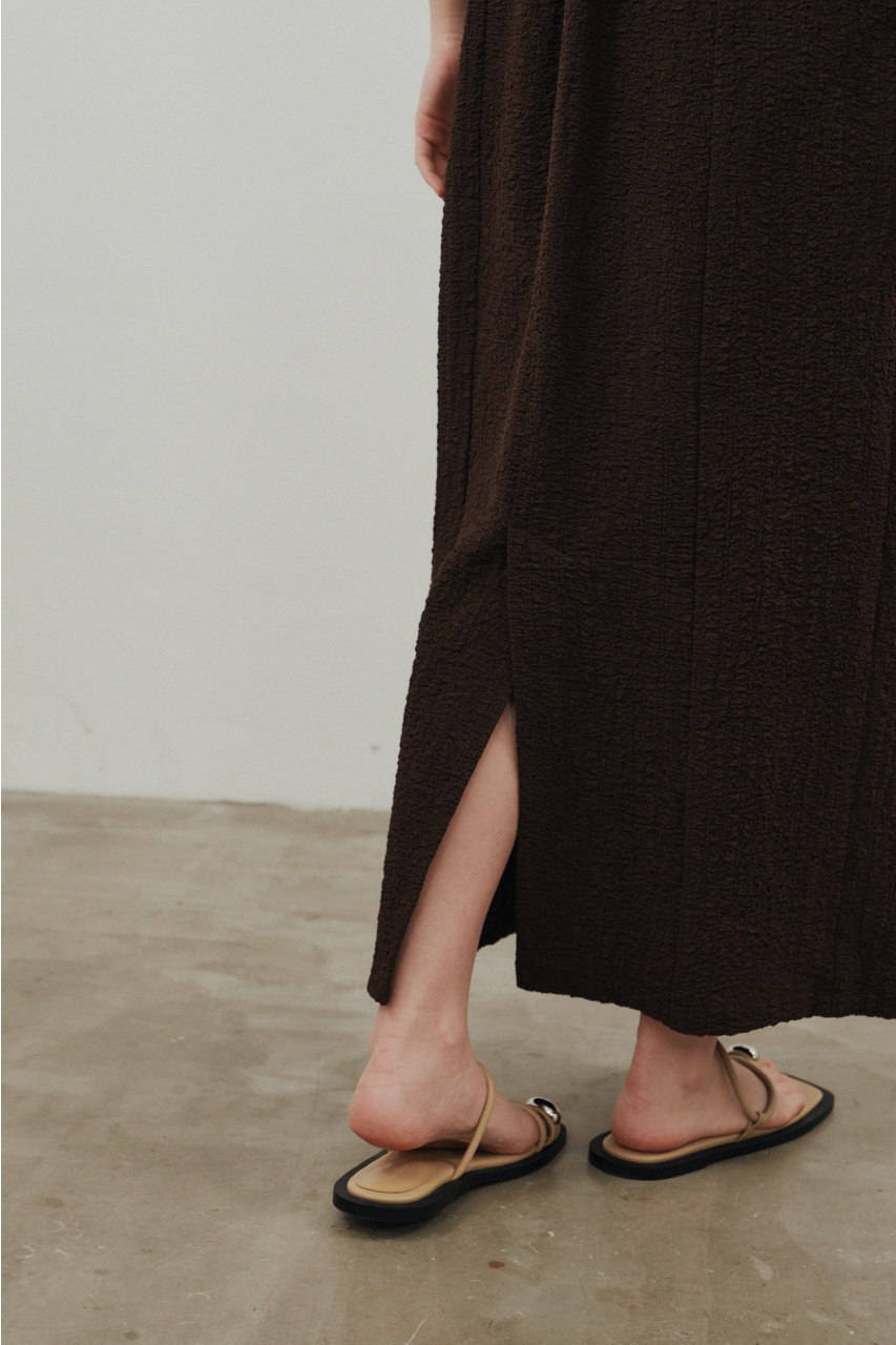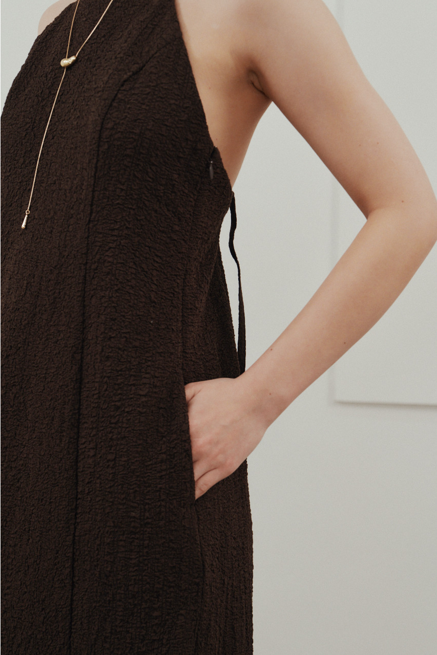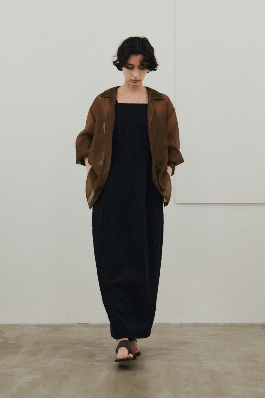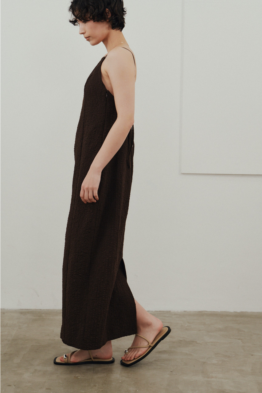 背中を大きく開けたバックオープンデザインが印象的なキャミワンピース。シンプルなフロントデザインとのコントラストで、バックスタイルは抜け感と存在感を演出。1枚でドレスライクに着こなすのはもちろん、Tシャツやシアートップスとのレイヤードでカジュアルダウンでの着用もおすすめ。リゾートからタウンユースまで幅広く活躍する、主役級の一枚です。