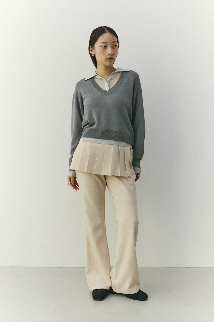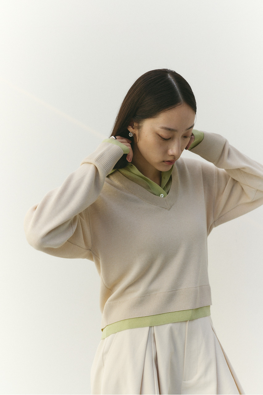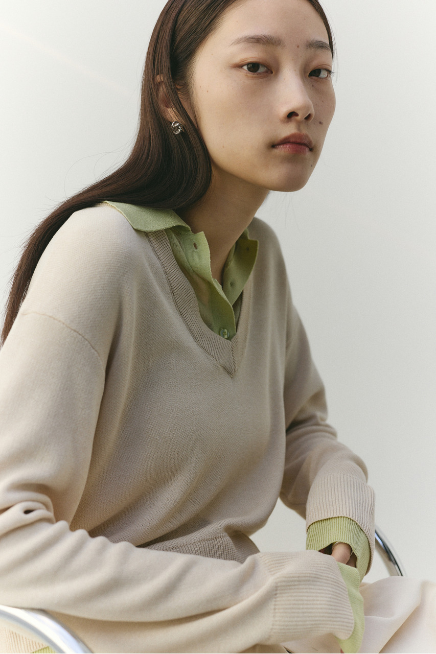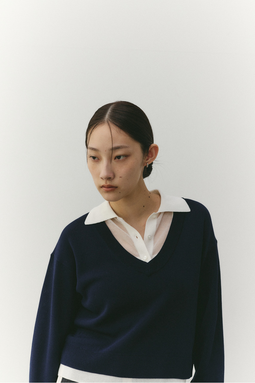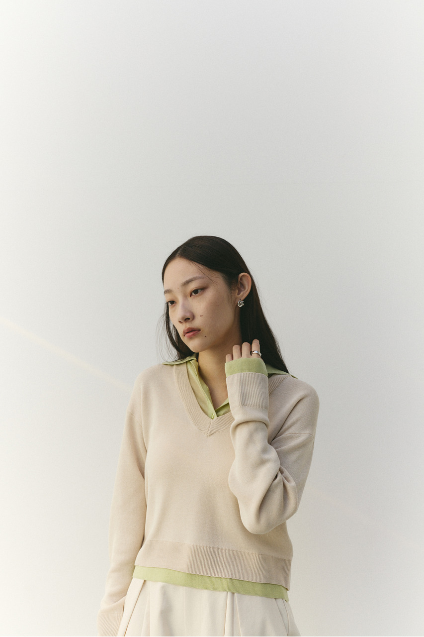 レイヤードポロニットトップ