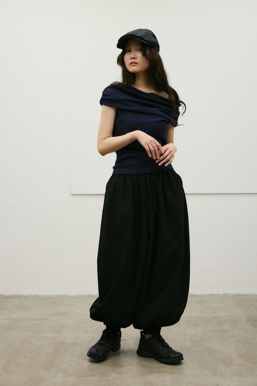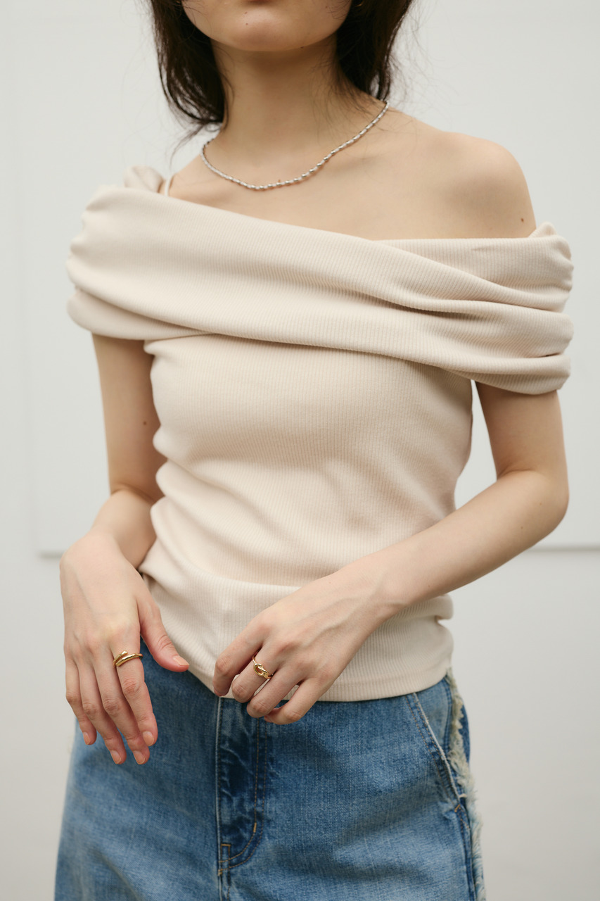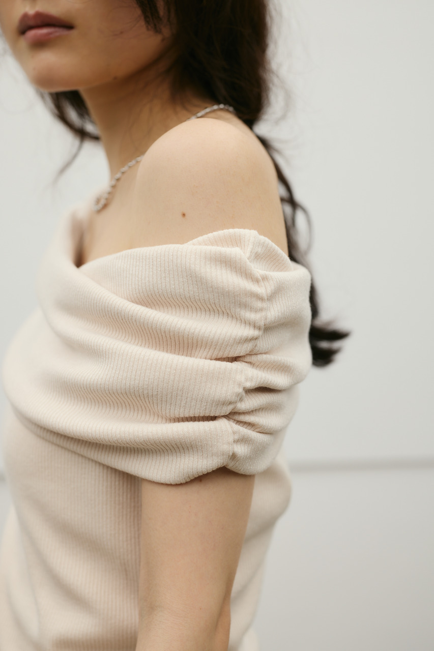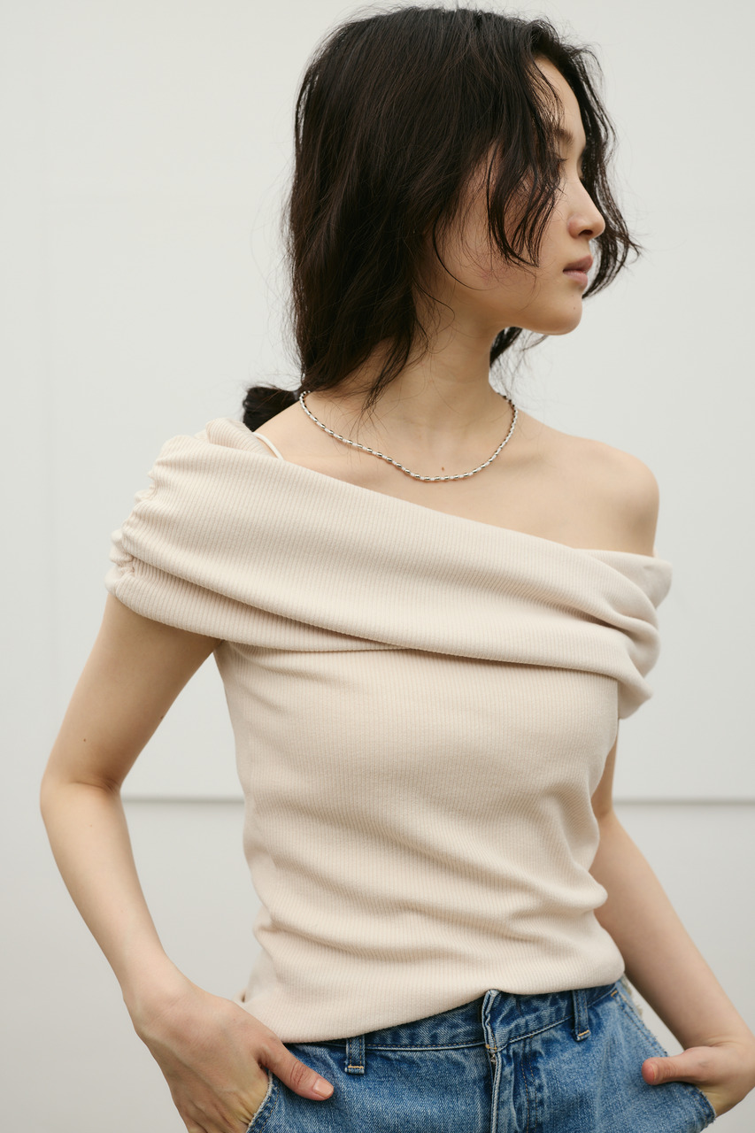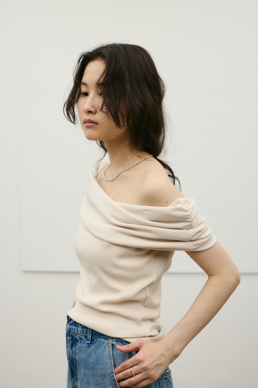 サイドにたっぷりと入れたギャザーが華やかな印象を与えるオフショルトップ。肩を落として女性らしく着こなすのはもちろん、少し引き上げてネックラインを調整することでヘルシーな雰囲気にもアレンジできます。ふんわりとしたシルエットが身体のラインをさりげなくカバーしつつ、スタイリングに抜け感をプラス。デニムでカジュアルに、スカートでフェミニンにと、幅広いシーンで活躍するアイテムです。ストレッチなし、透け感なし。
