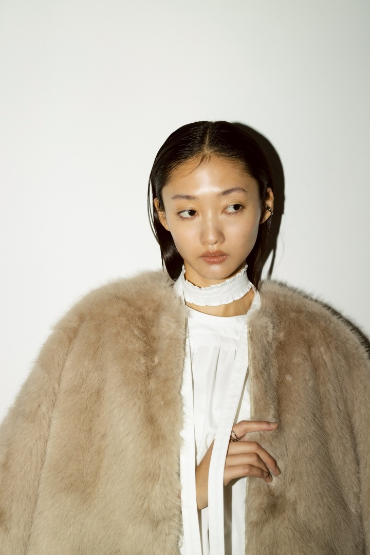 • 存在感のある毛足がかわいい上品なノーカラーファージャケット。