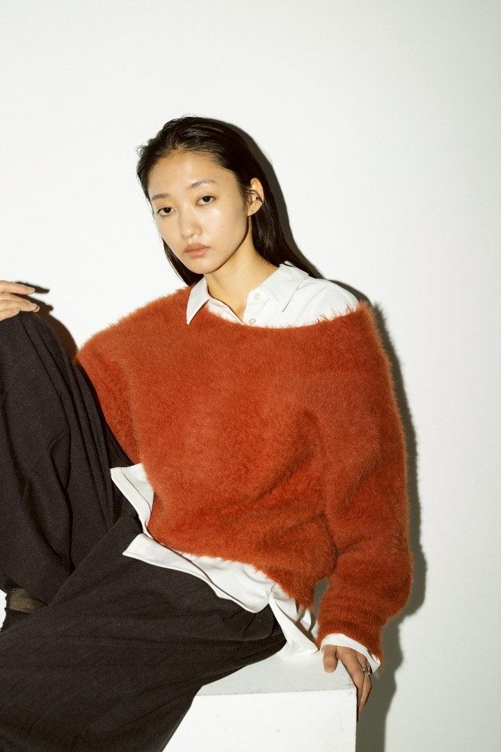 • 一枚で華やかな印象に導き、前後2WAYで着用できる主役ニット。