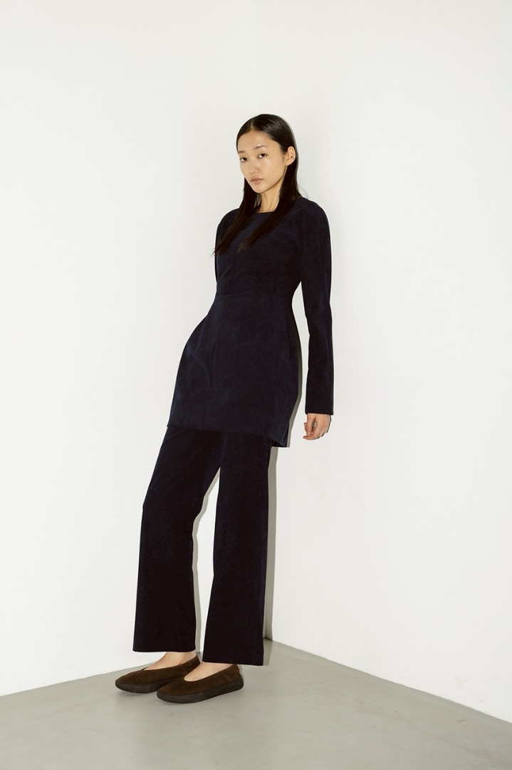 • やわらかい肌触り、独特の光沢感と畝のある見た目がモードなコーデュロイミニワンピース。