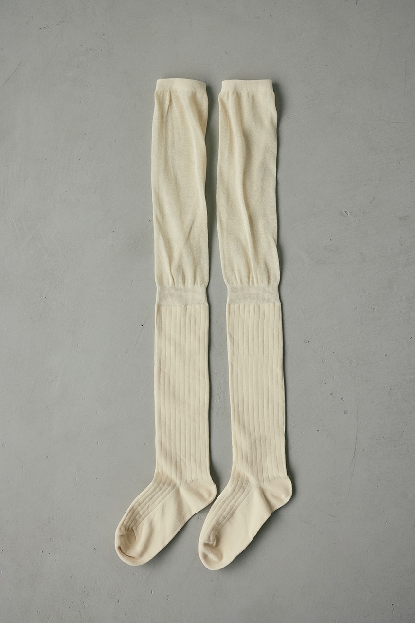 足口の透け感が可愛いニーハイソックス。くしゅくしゅと少したるませての着用がおすすめです。