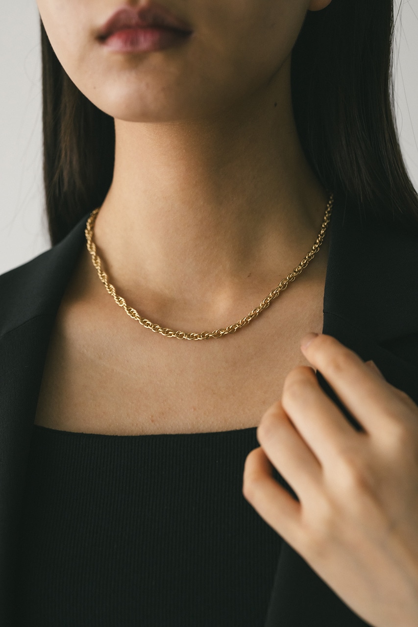 存在感のあるツイストチェーンネックレス。しっかりと存在感があり、シンプルな装いを華やかにしてくれます。