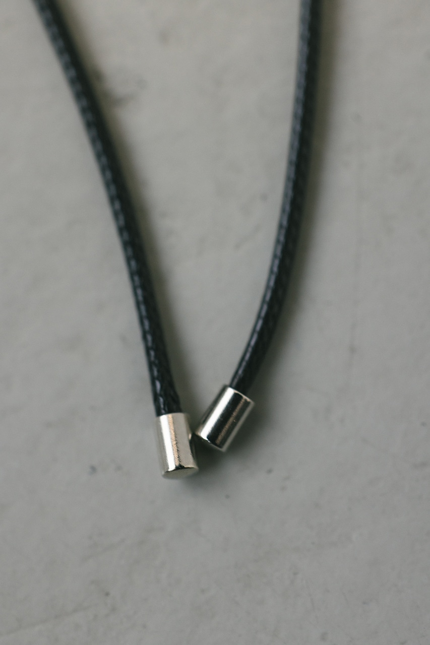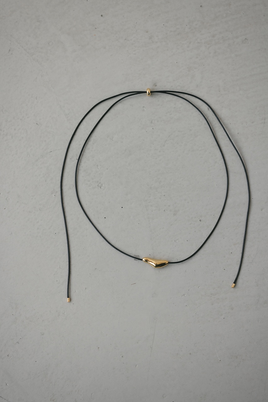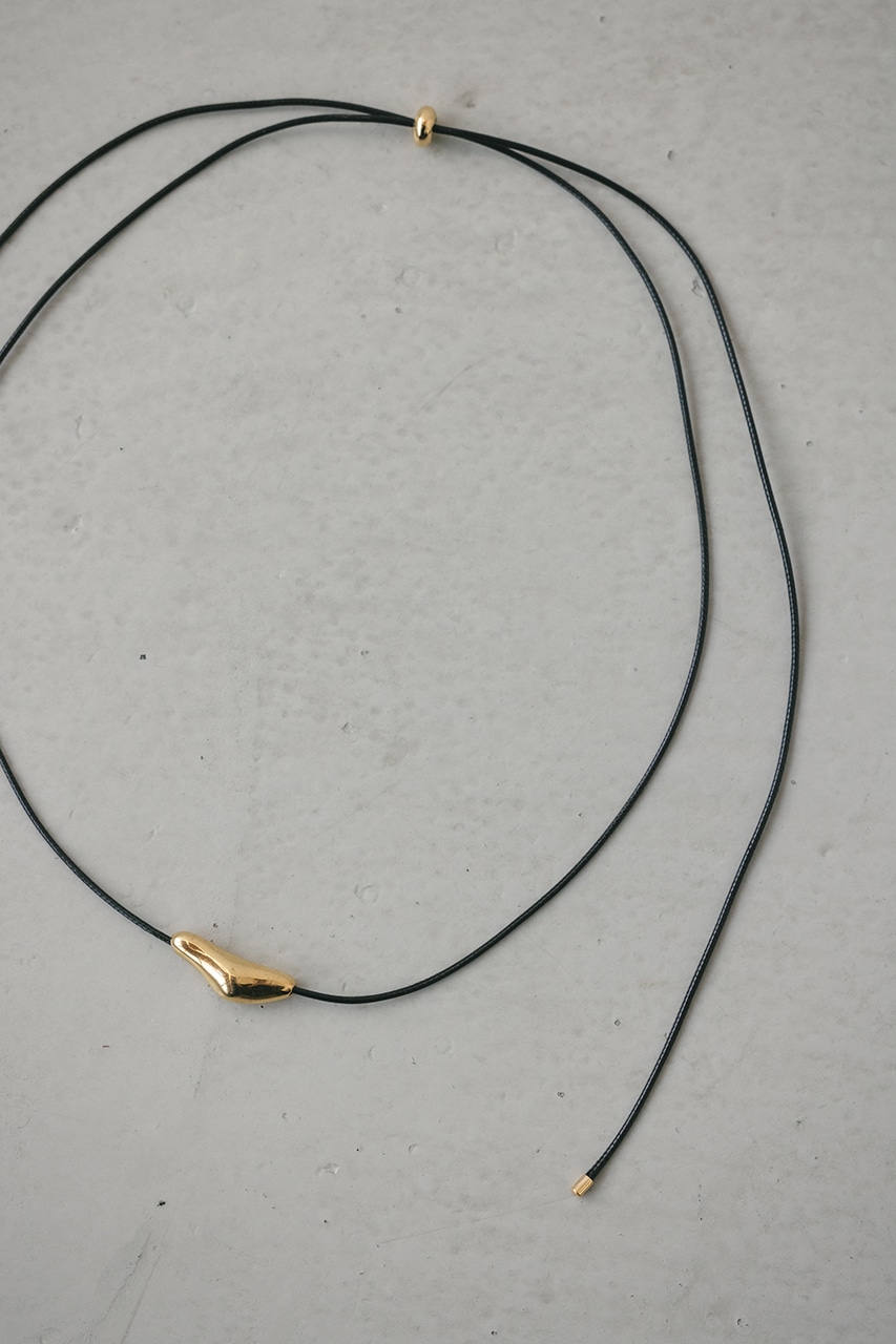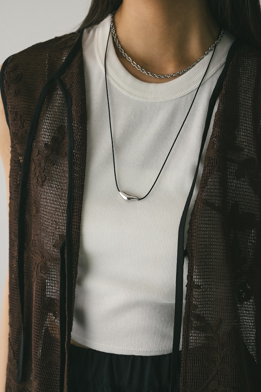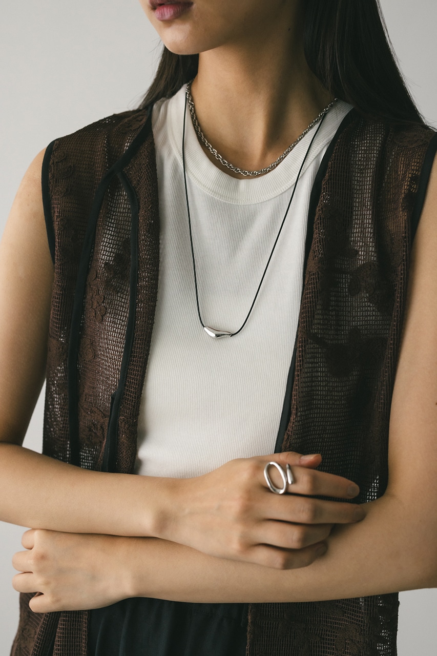 モードで存在感のあるコードネックレス。調整次第で様々なスタイリングを楽しめます。