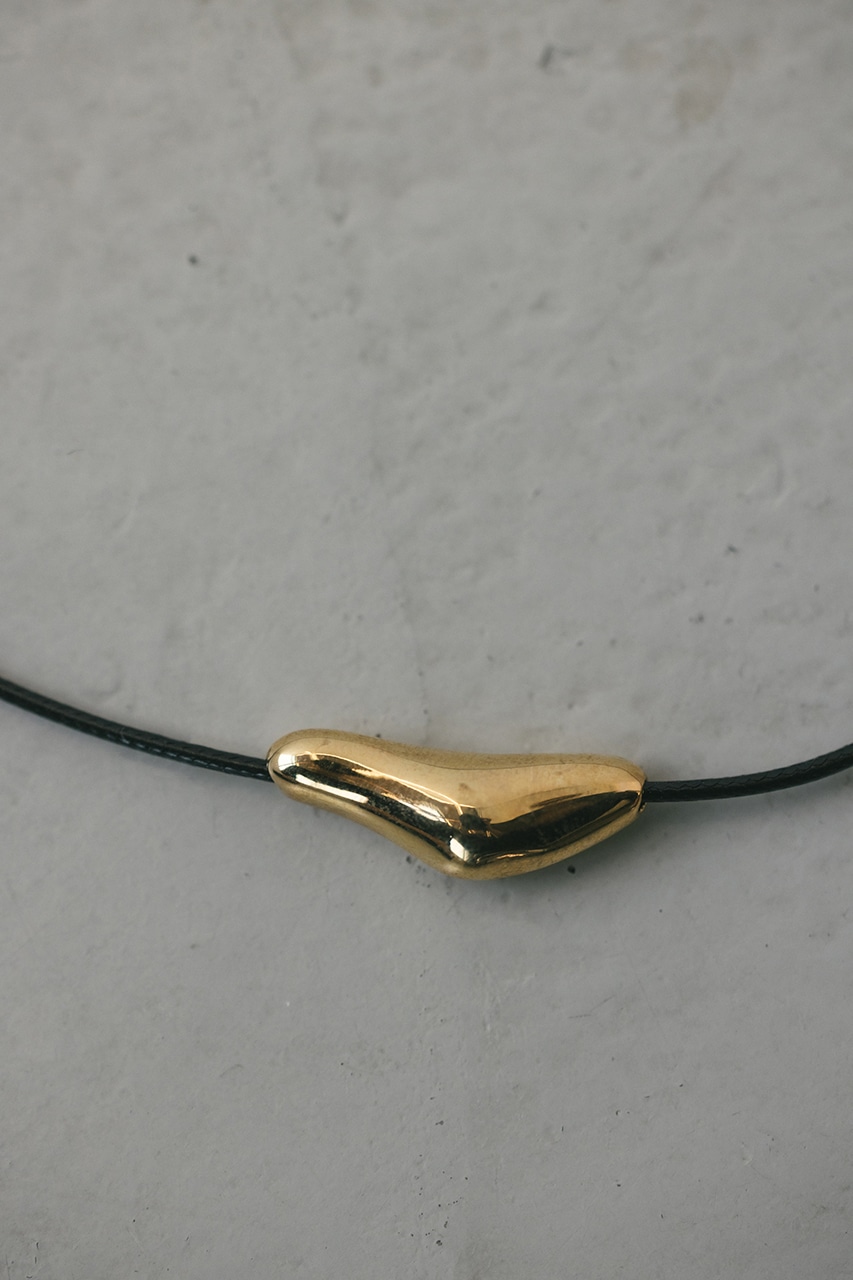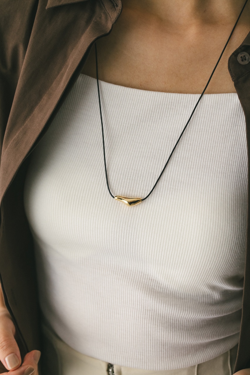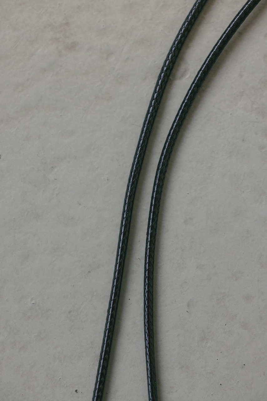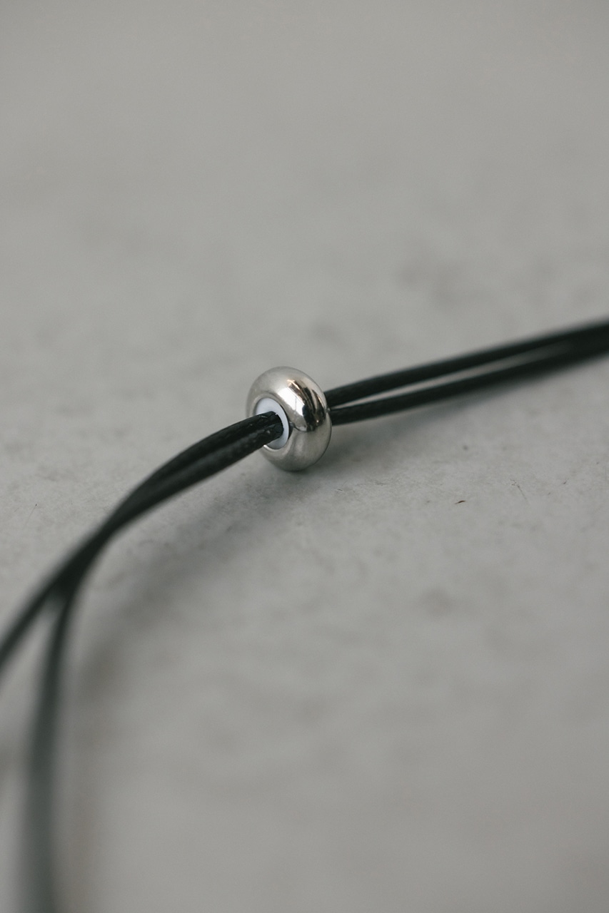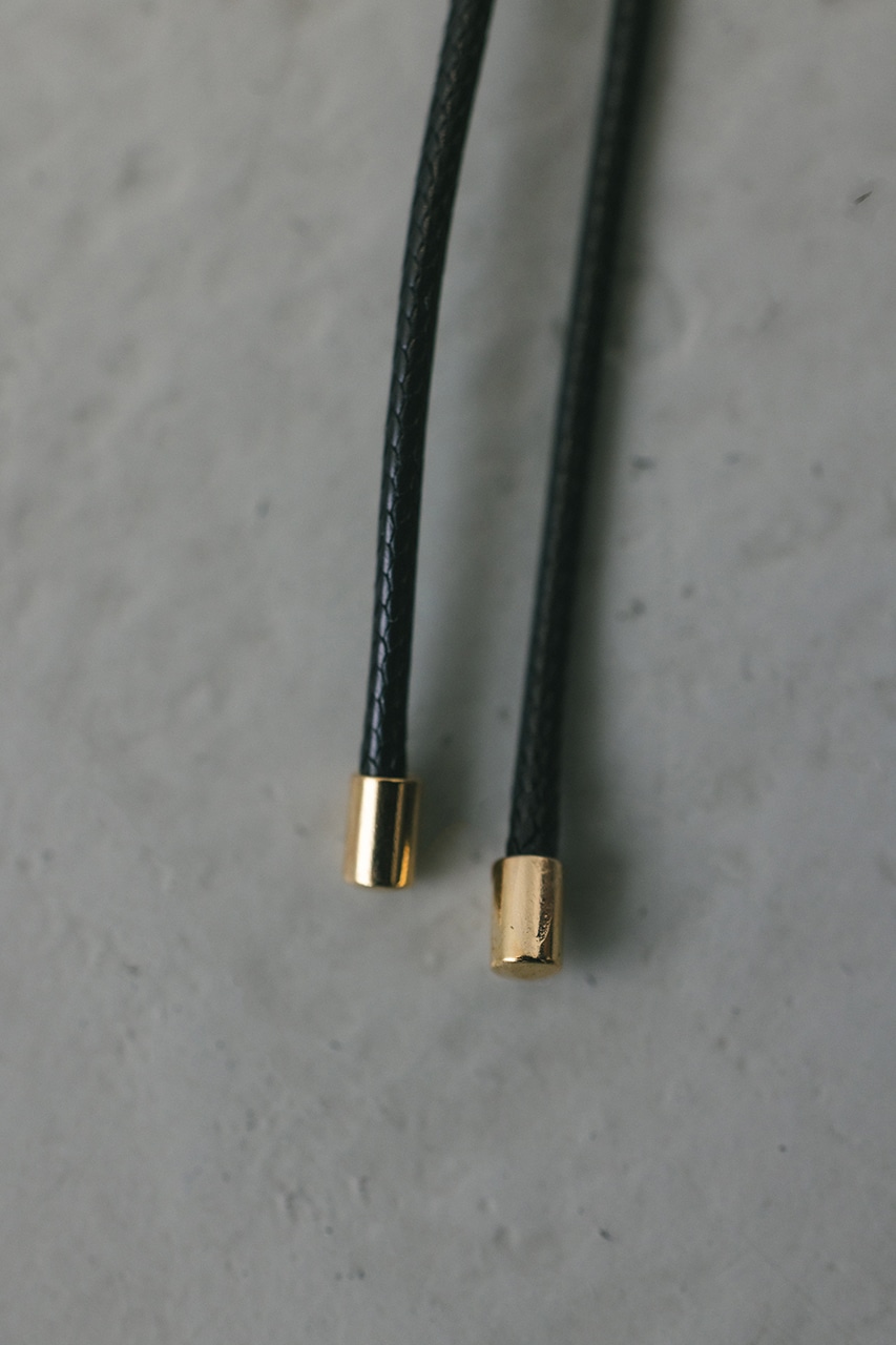 モードで存在感のあるコードネックレス。調整次第で様々なスタイリングを楽しめます。
