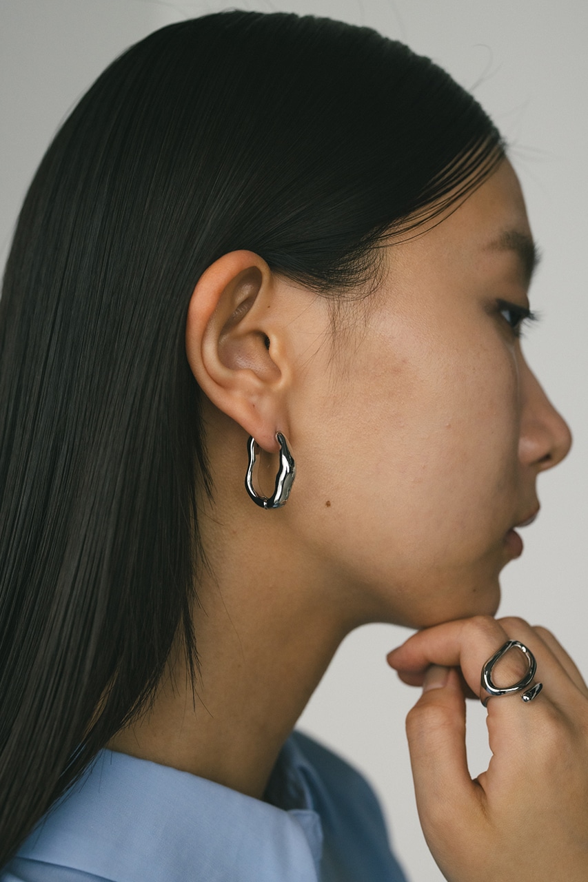 ウェーブラインがモードなデザインピアス。立体的なシルエットで存在感のあるピアスです。