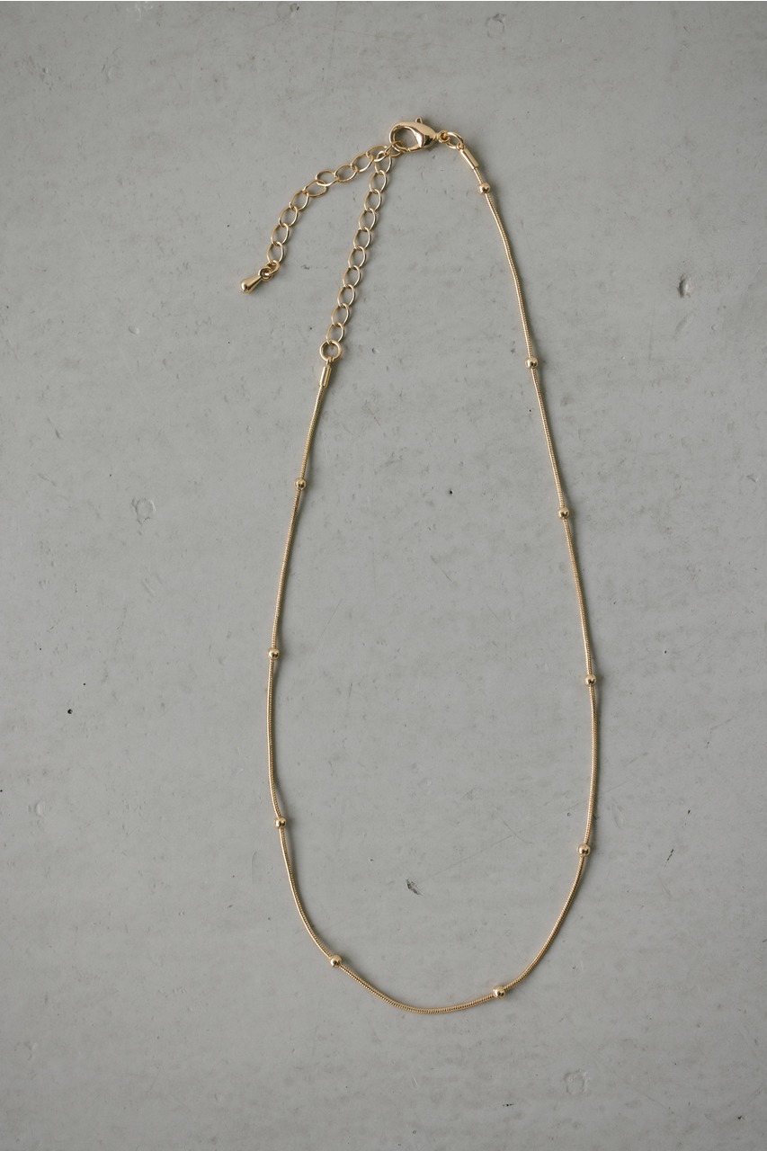 シンプルながら存在感のあるボールネックレス。首元を明るい印象に導きます。