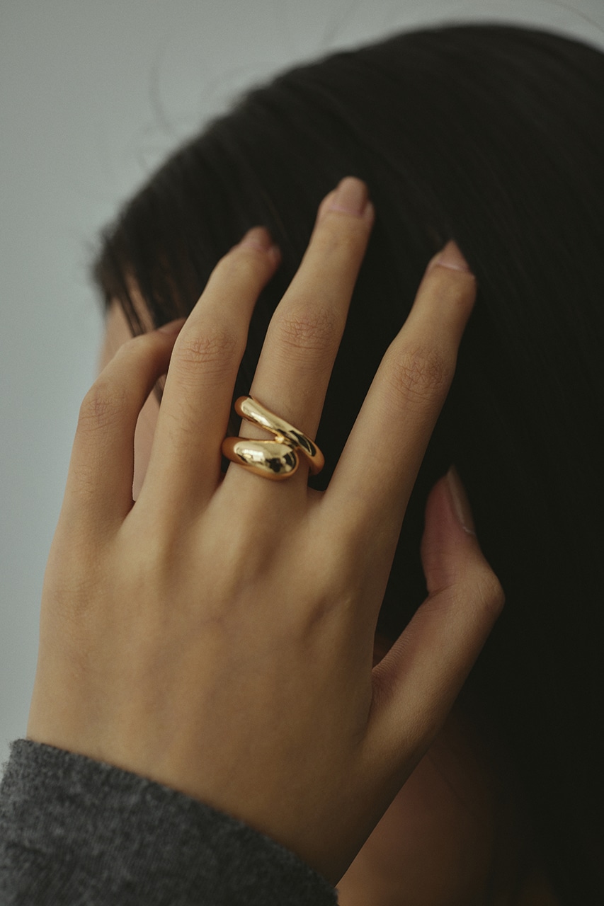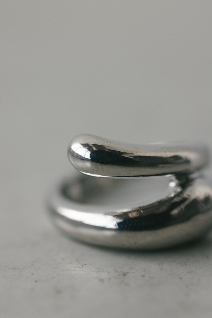 丸みのあるフォルムがモードなボリュームリング。指を華奢に見せてくれます。重ね付けにもおすすめです。