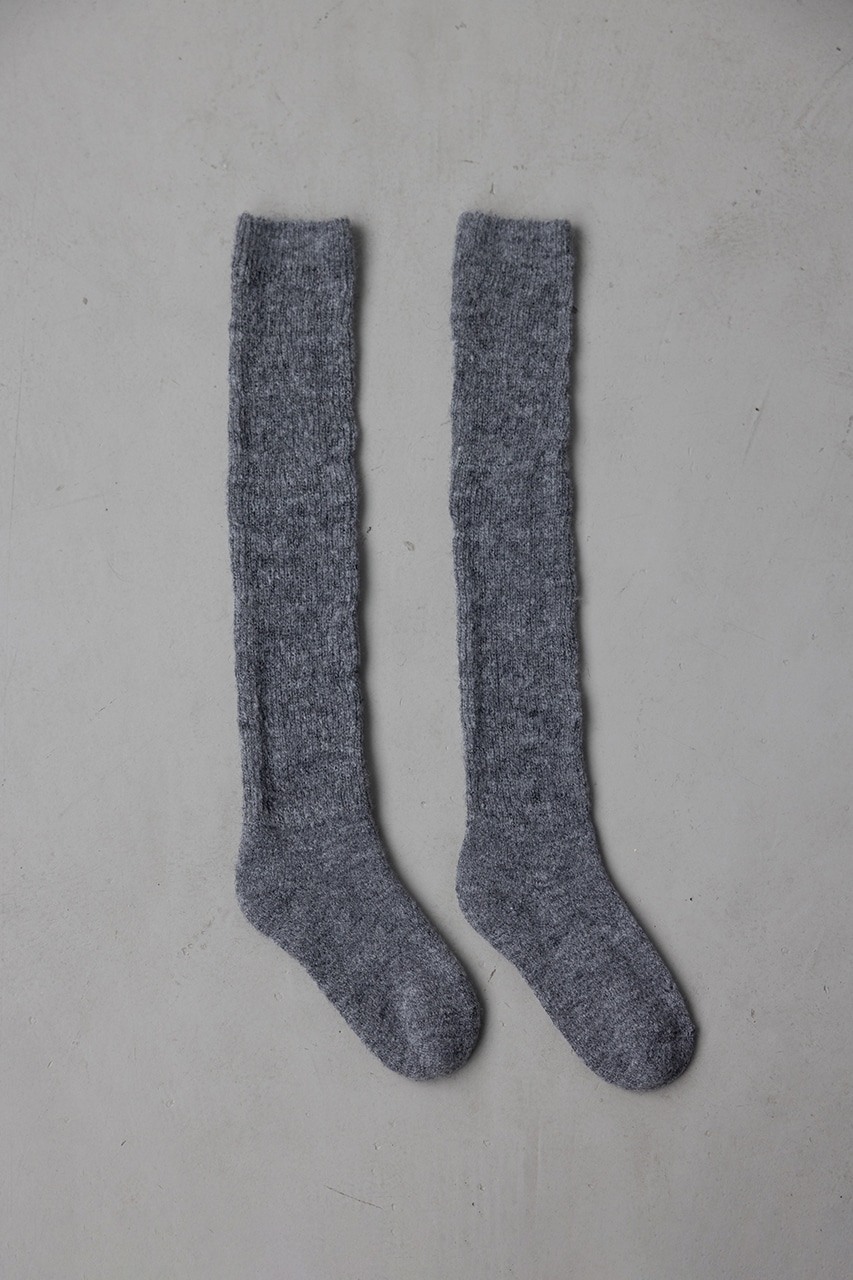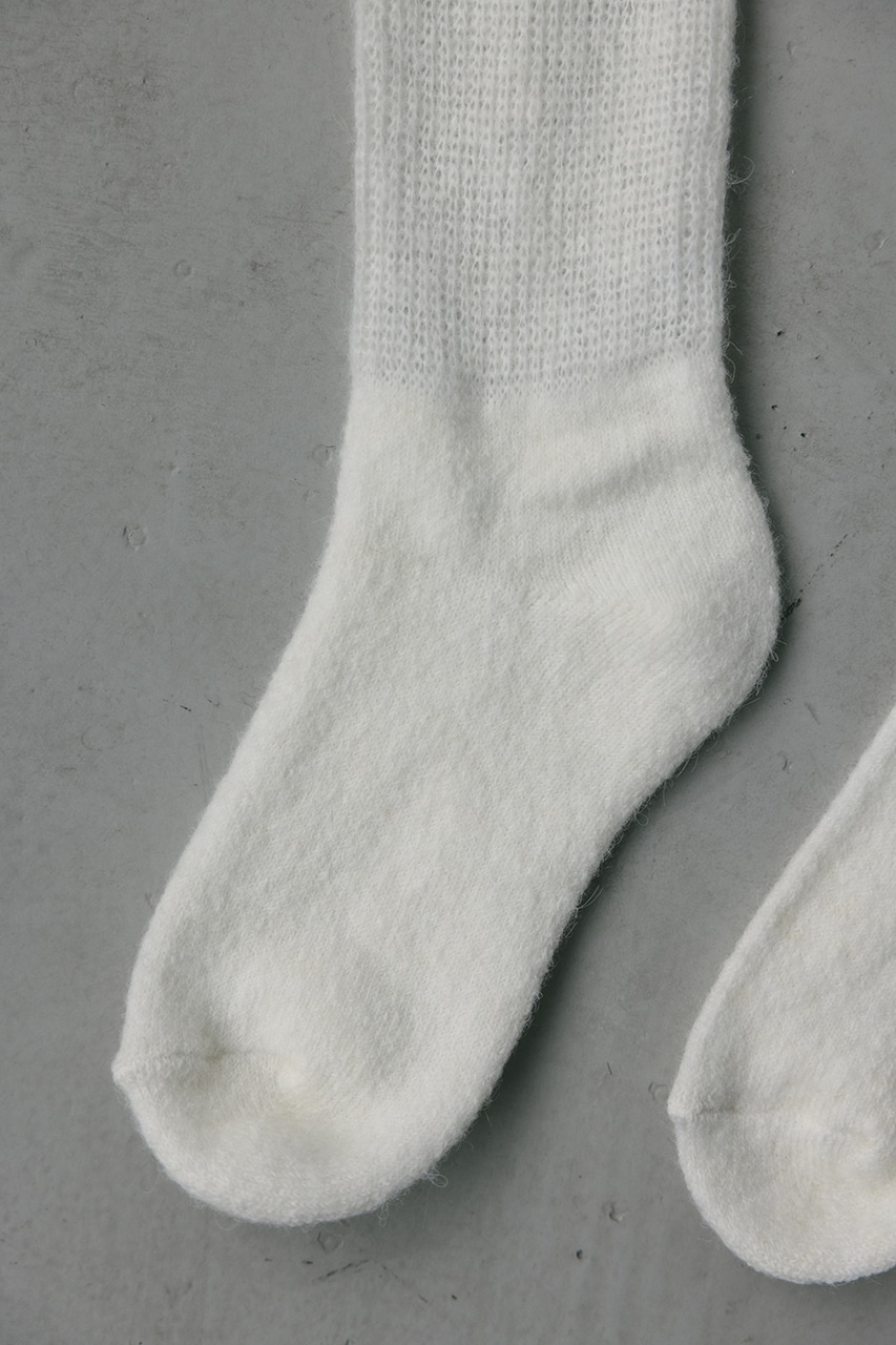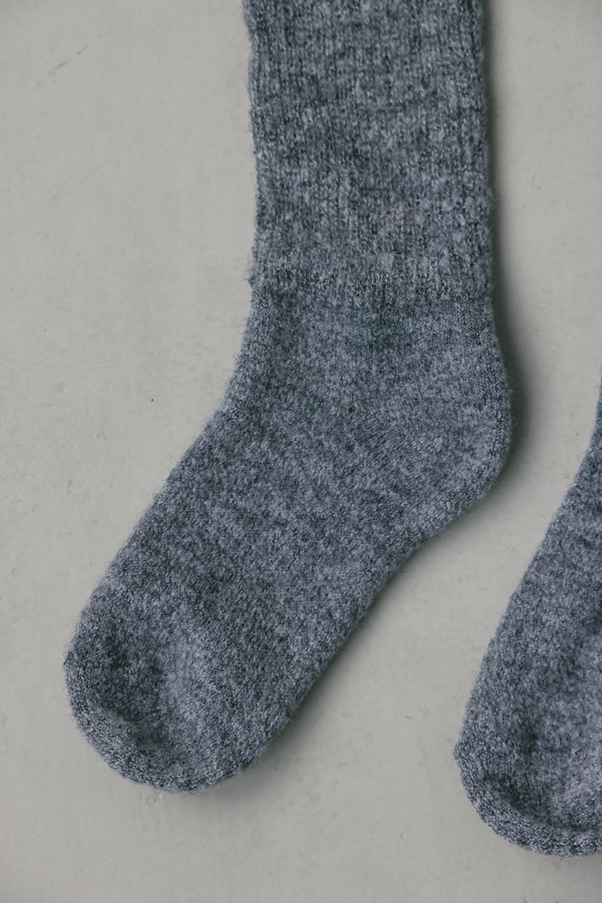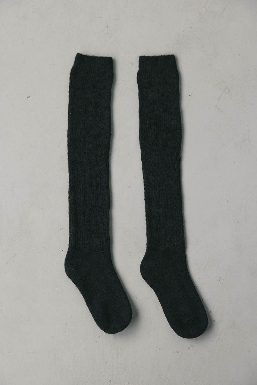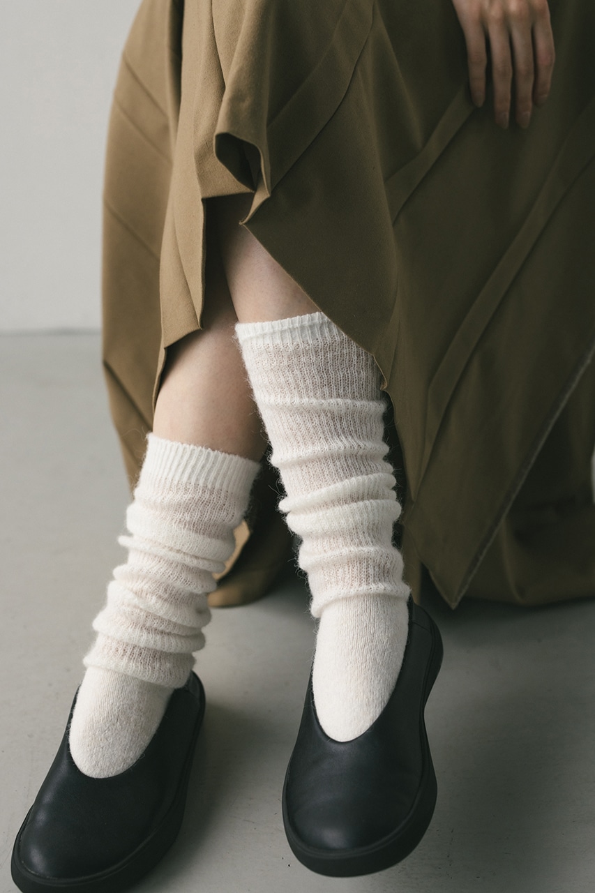 柔らかな糸を使用したリブハイソックス。単品ではもちろん、タイツやソックスとレイヤードして履くとよりトレンド感のあるスタイリングを楽しめます。