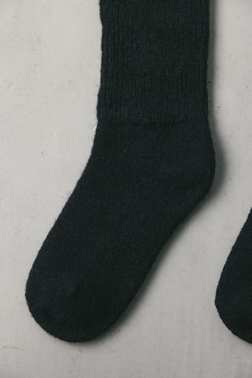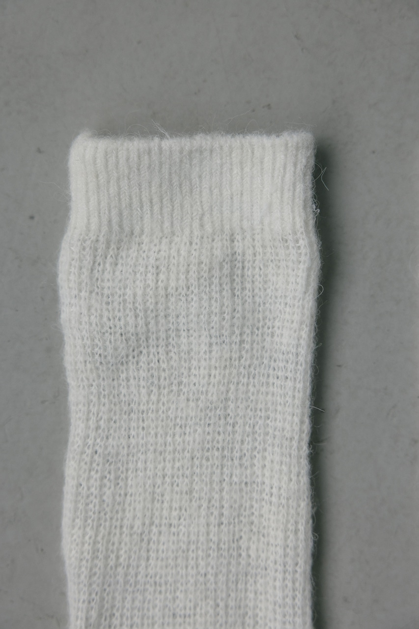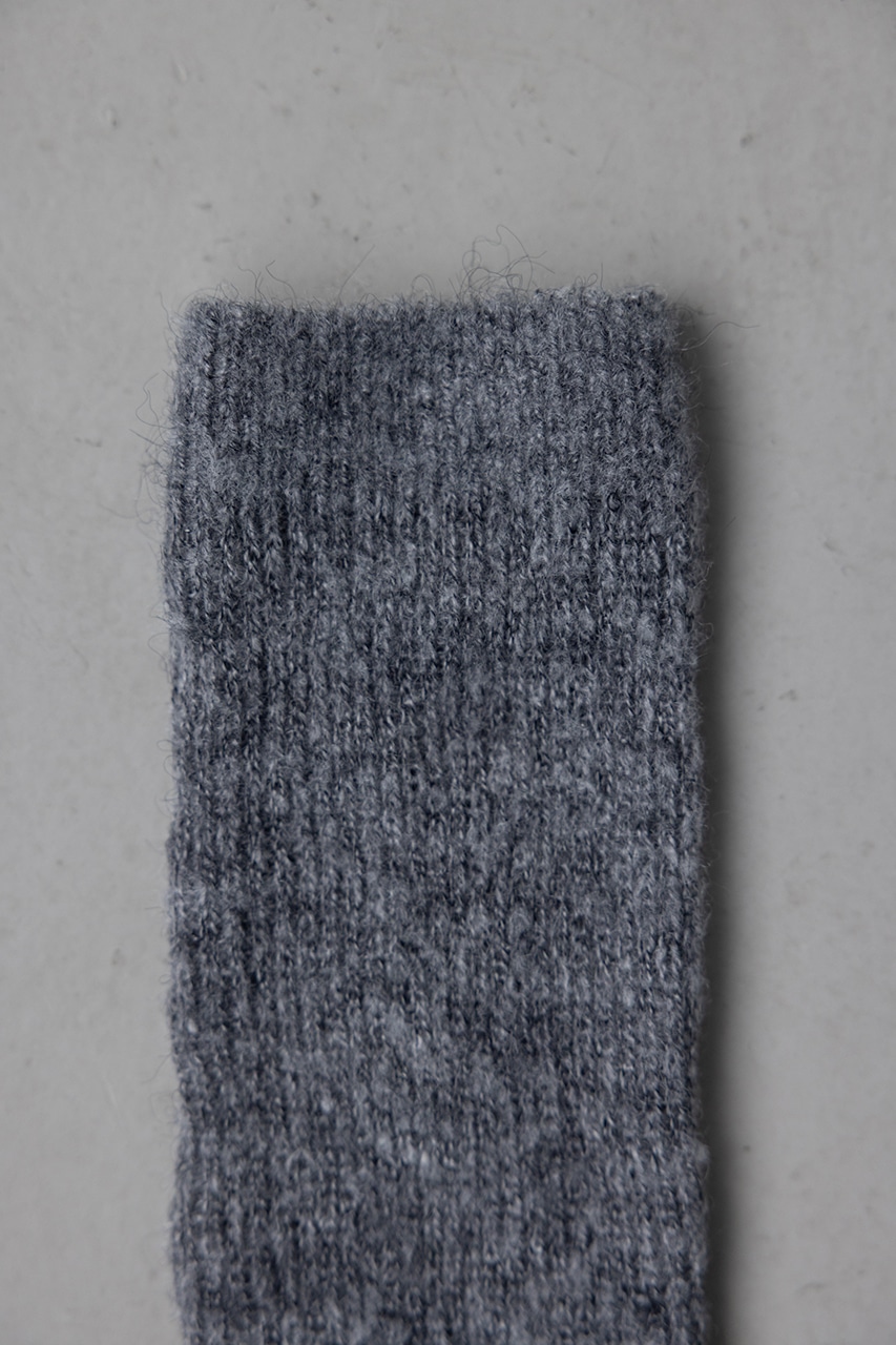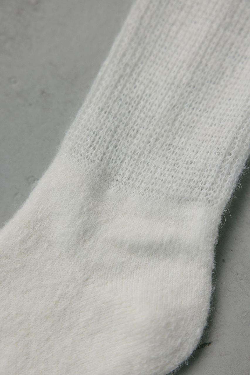 柔らかな糸を使用したリブハイソックス。単品ではもちろん、タイツやソックスとレイヤードして履くとよりトレンド感のあるスタイリングを楽しめます。