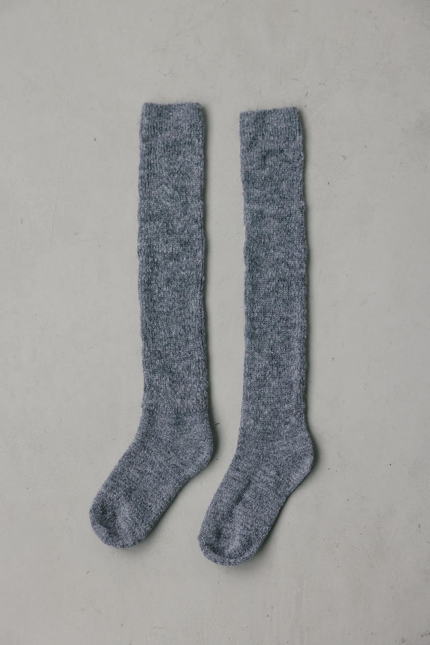 柔らかな糸を使用したリブハイソックス。単品ではもちろん、タイツやソックスとレイヤードして履くとよりトレンド感のあるスタイリングを楽しめます。
