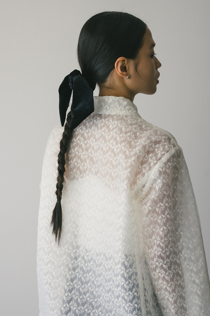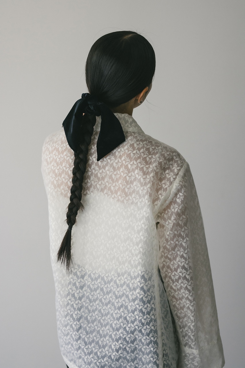 滑らかな手触りと美しい光沢感が可愛いベロアシュシュ。リボン部分はとりはずし可能の2WAY仕様。