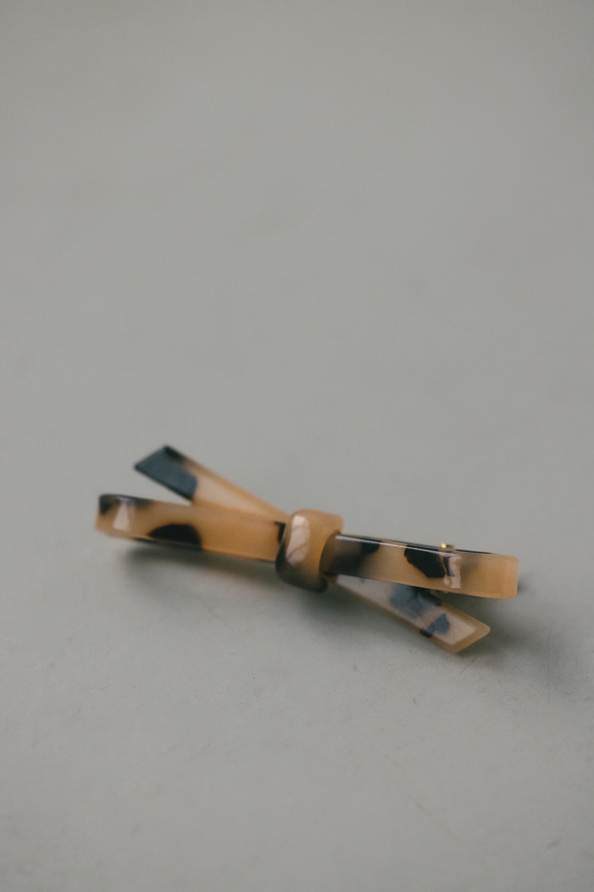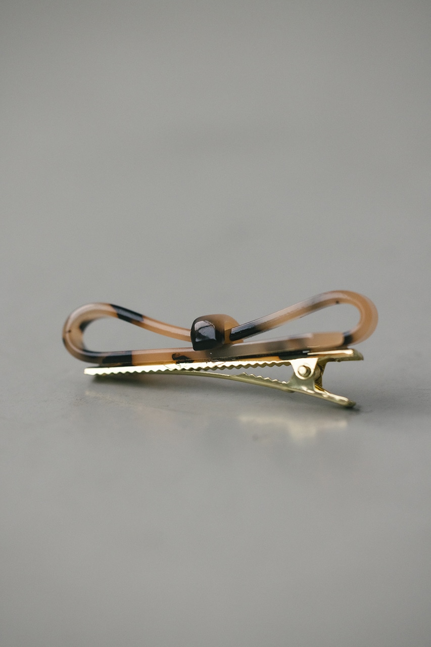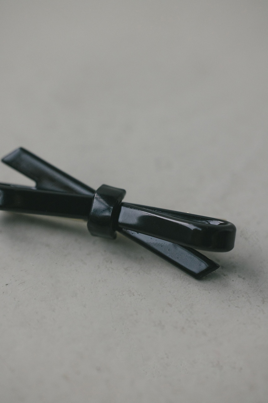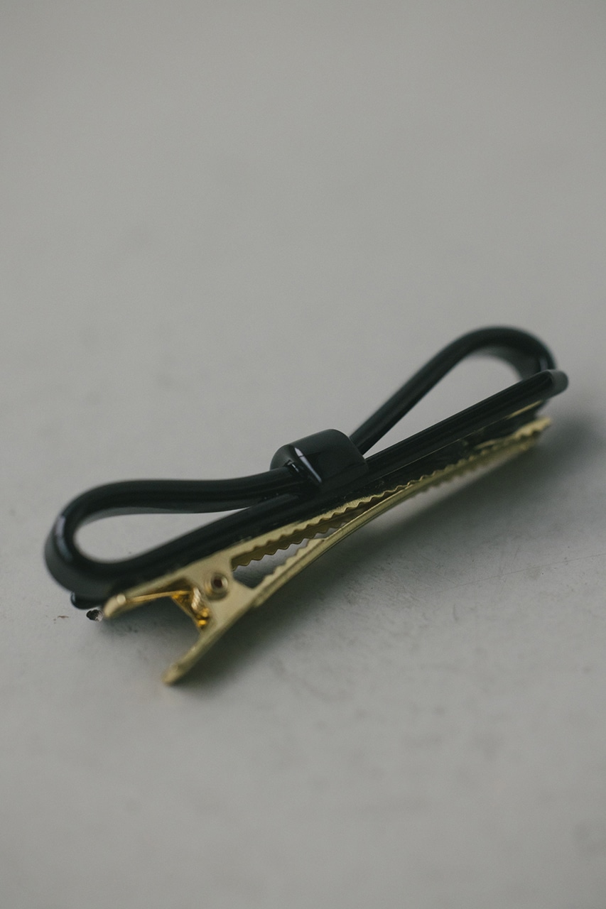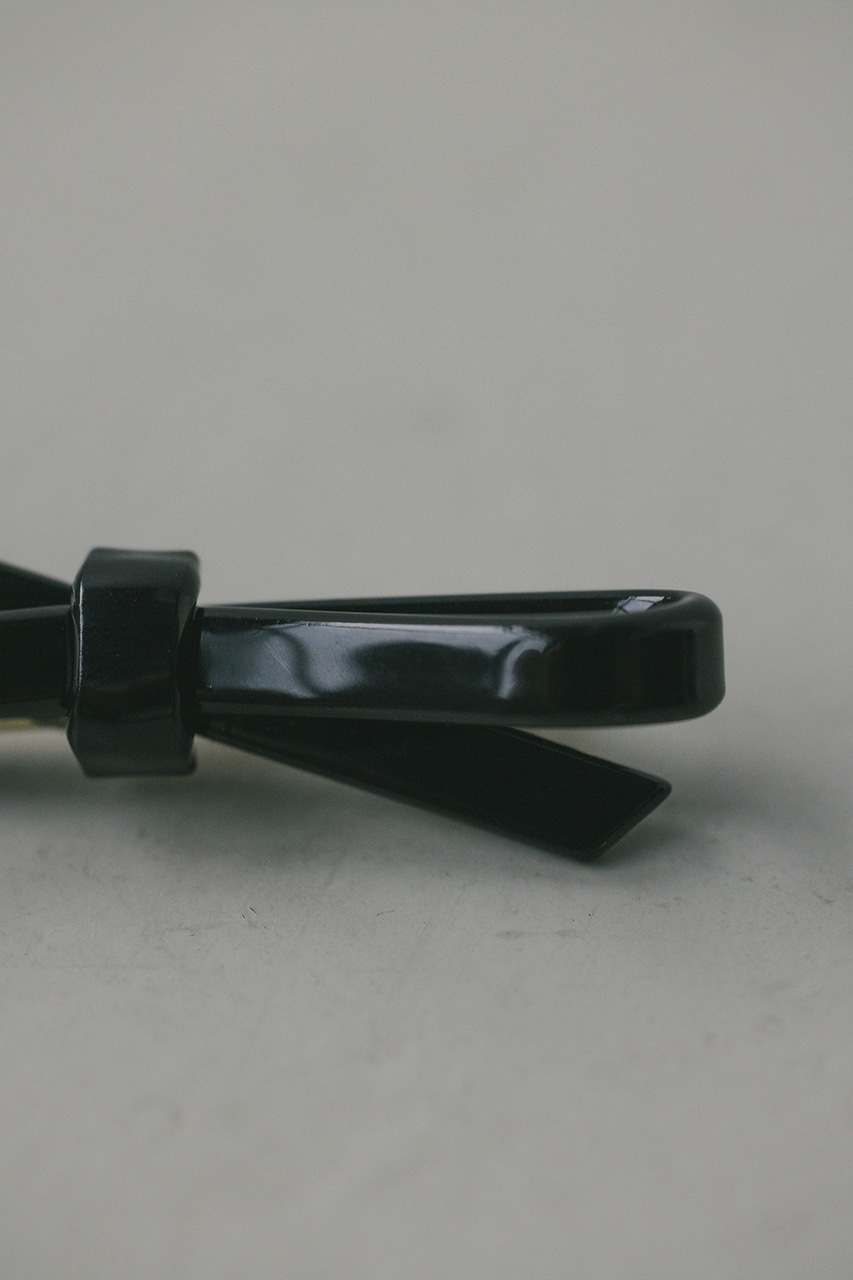 リボンモチーフデザインのヘアクリップ。細身のリボンなのでモードにもフェミニンスタイルにも合わせやすいヘアアクセサリー。シーズン問わず、幅広いコーディネートと相性抜群です。