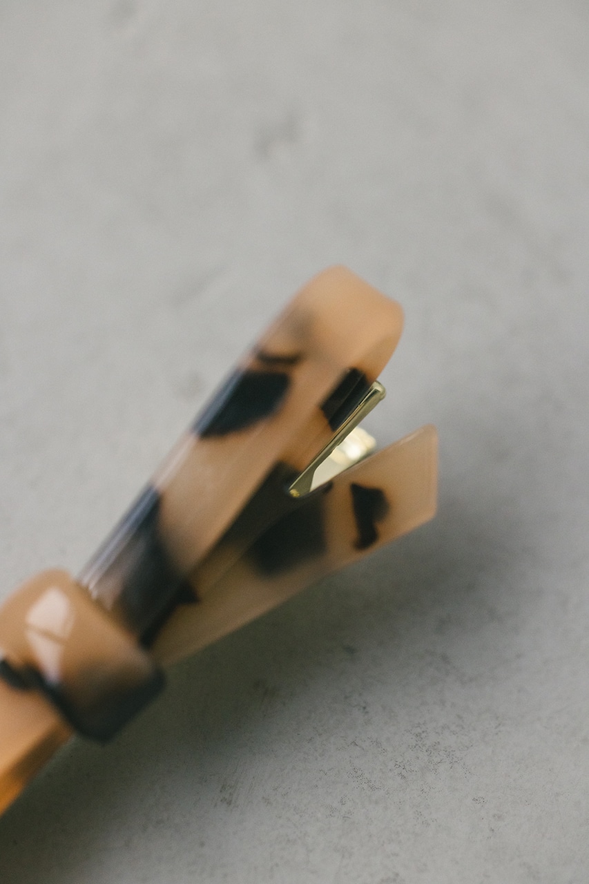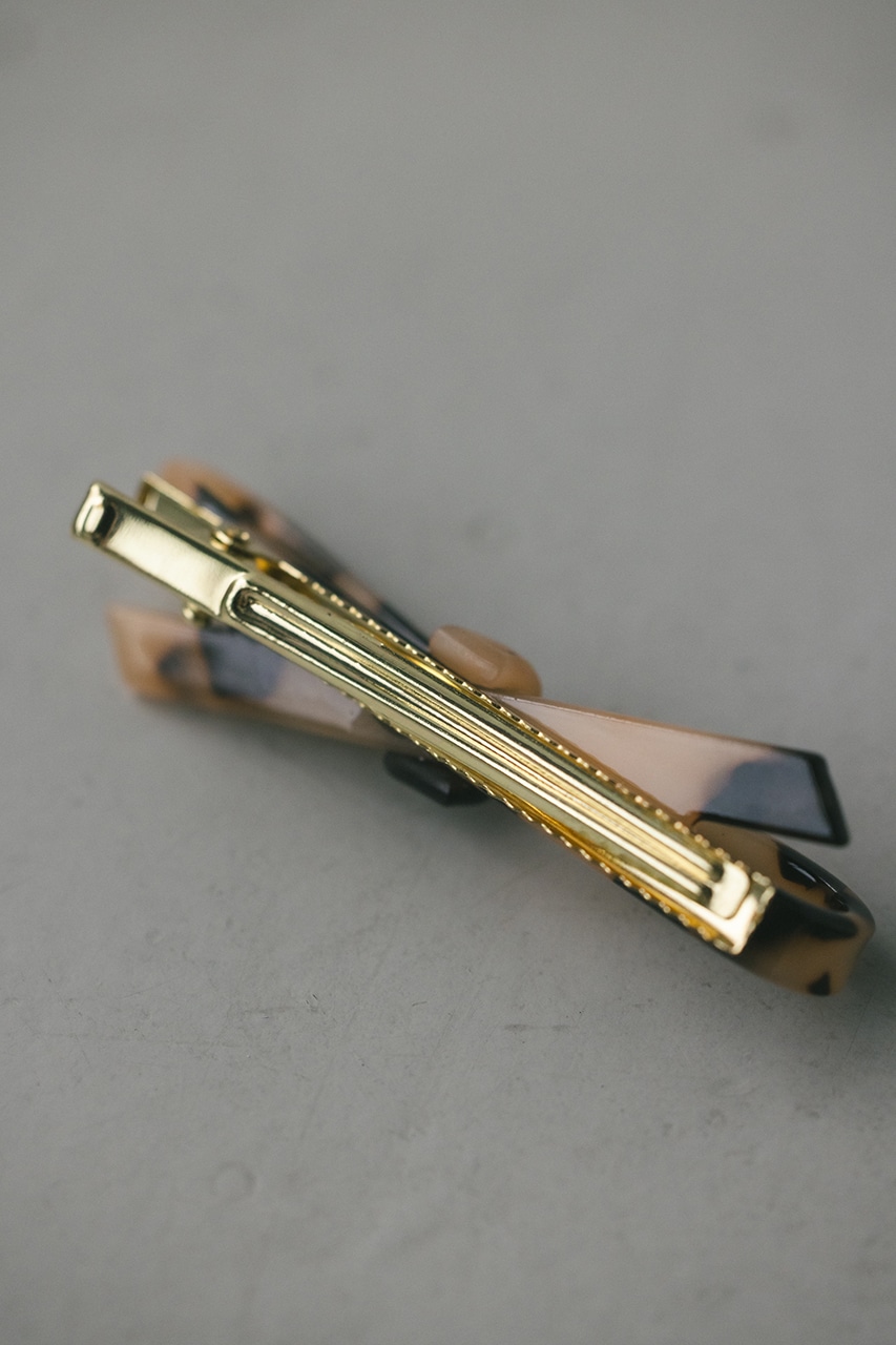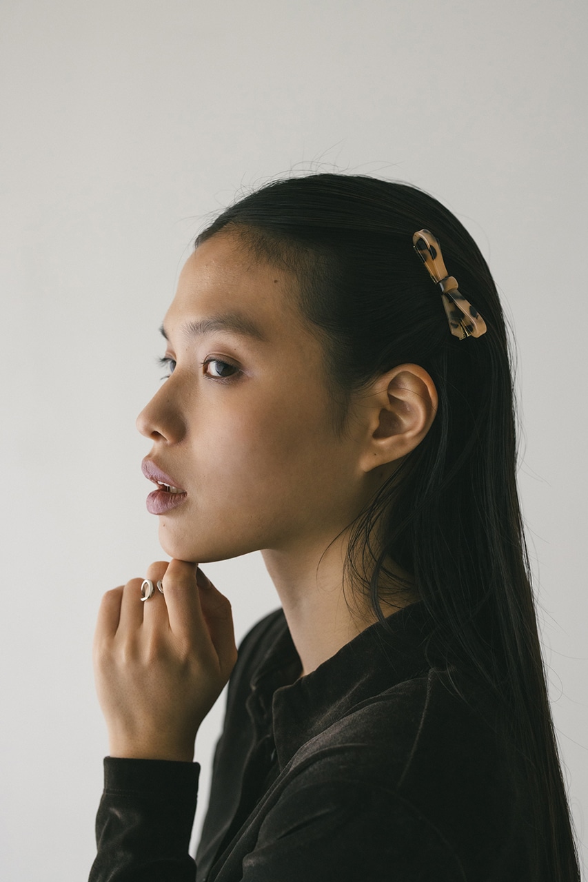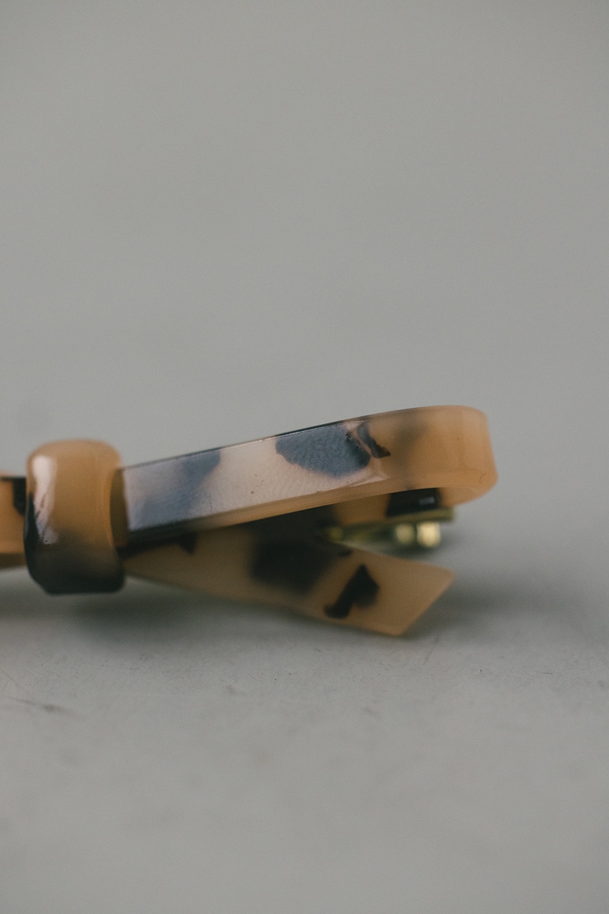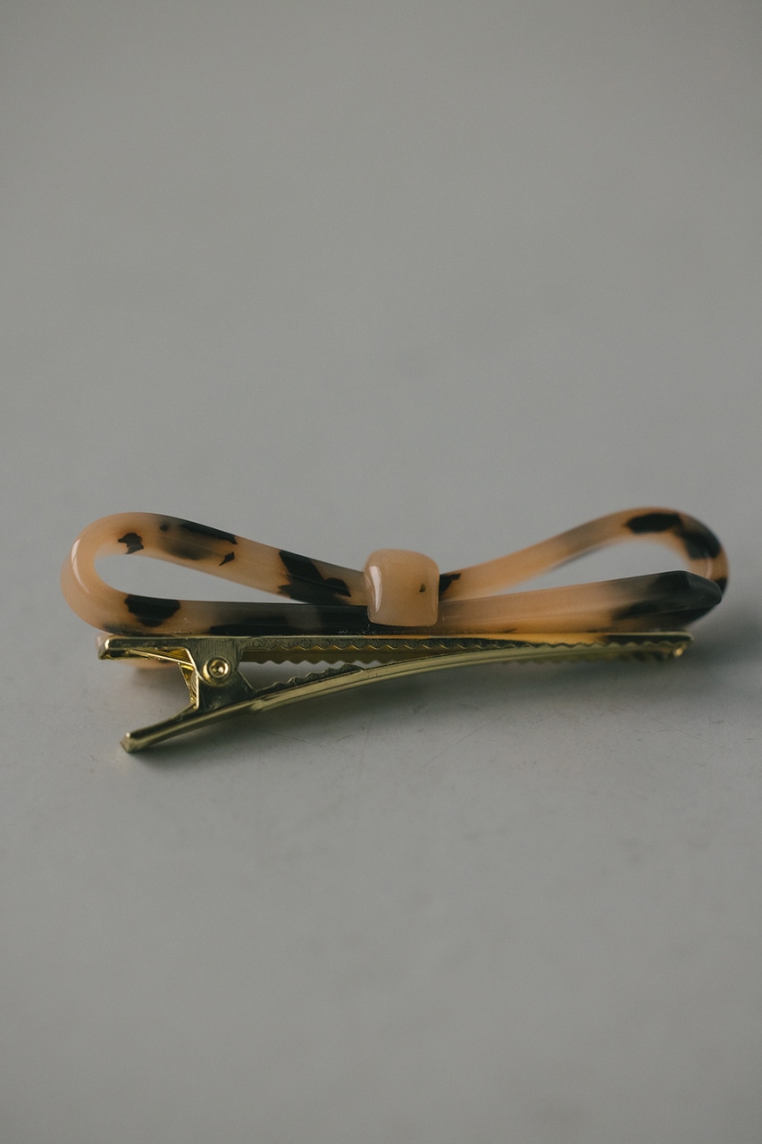 リボンモチーフデザインのヘアクリップ。細身のリボンなのでモードにもフェミニンスタイルにも合わせやすいヘアアクセサリー。シーズン問わず、幅広いコーディネートと相性抜群です。