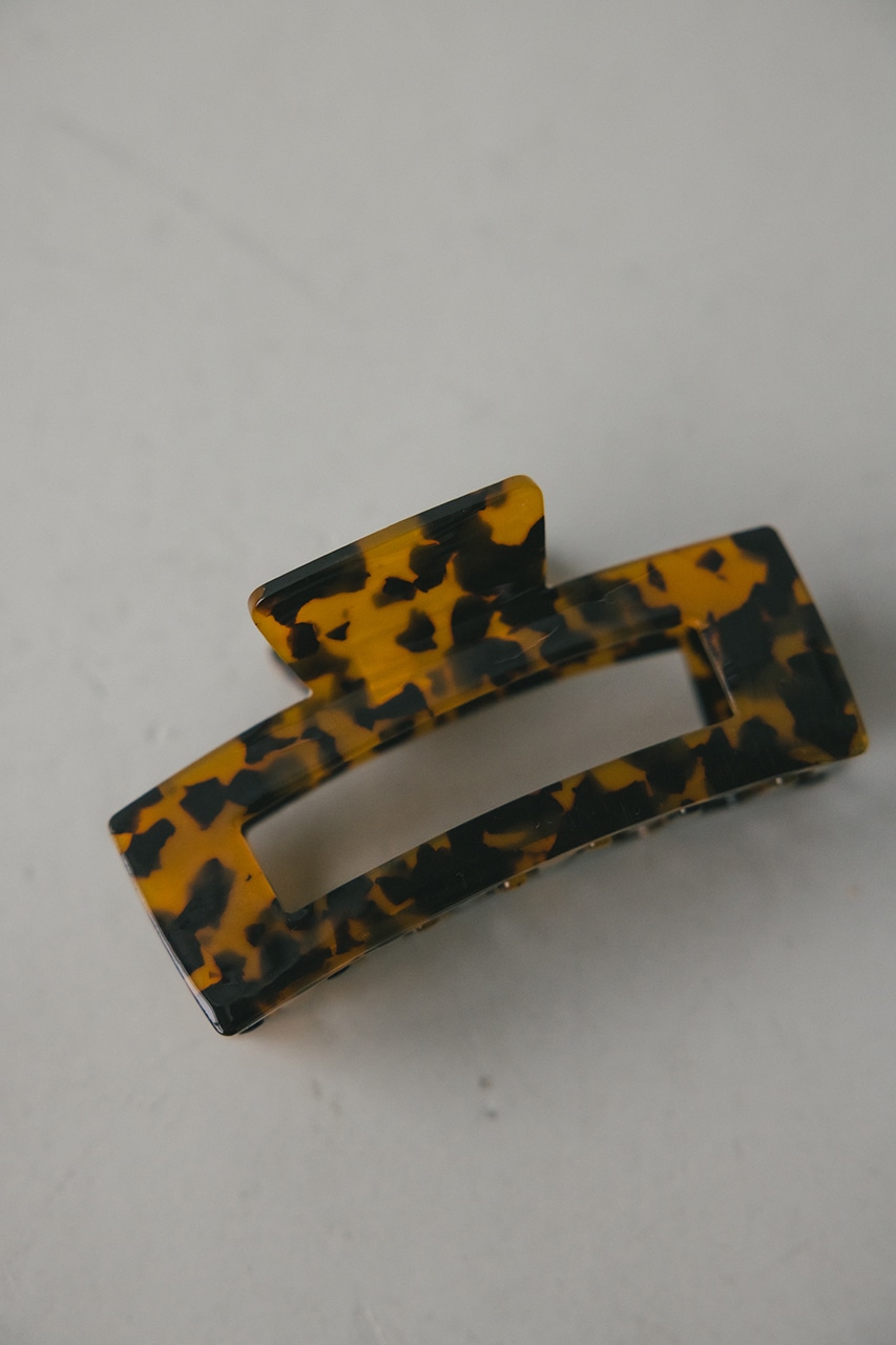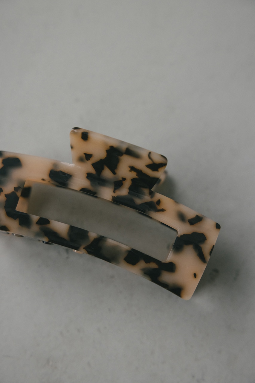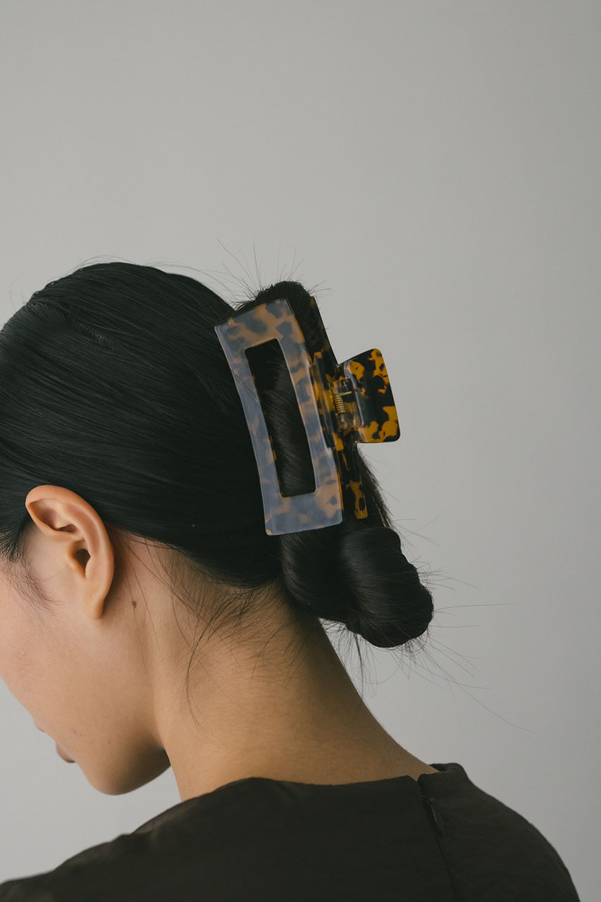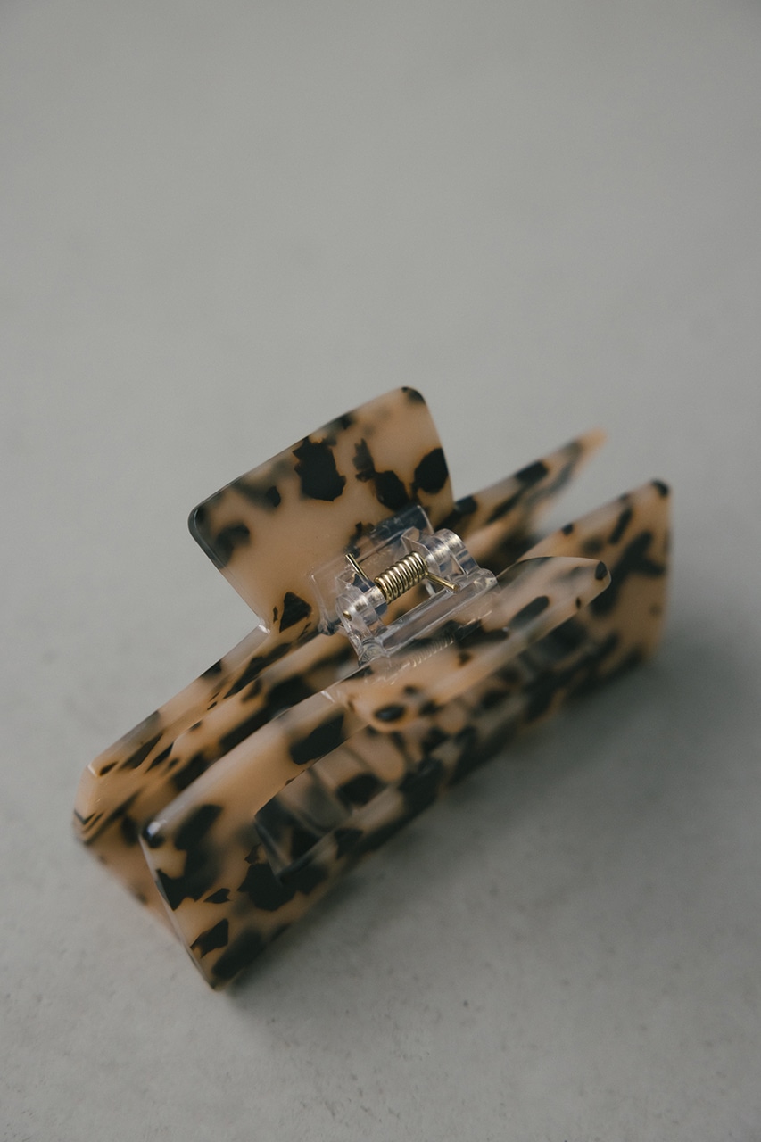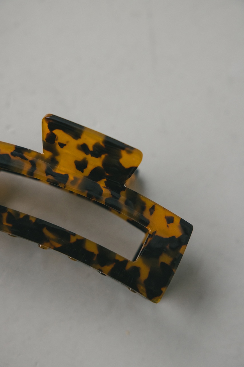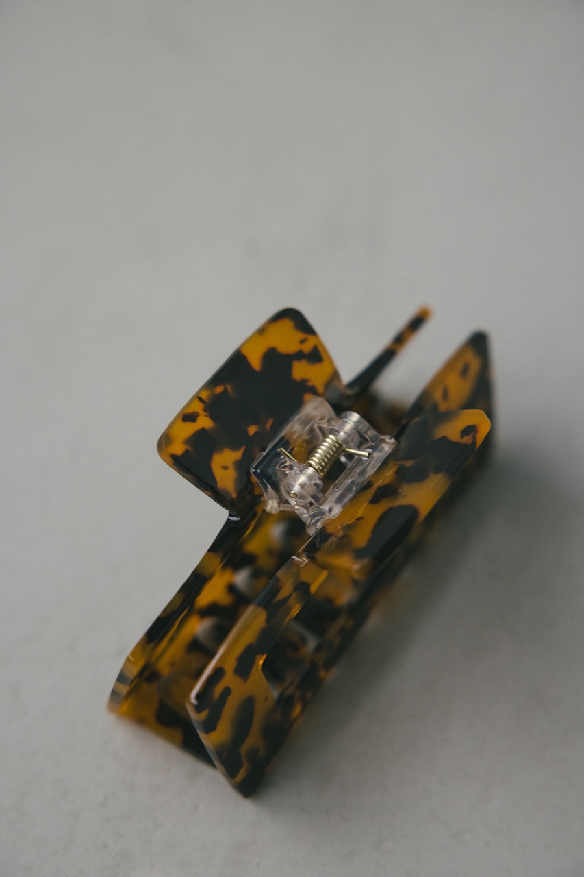 べっ甲調のスクエア型ヘアクリップ。髪をまとめるのに使いやすい大きめサイズ。シンプルなスタイリングのアクセントになるアイテムです。