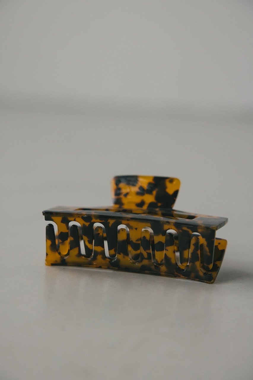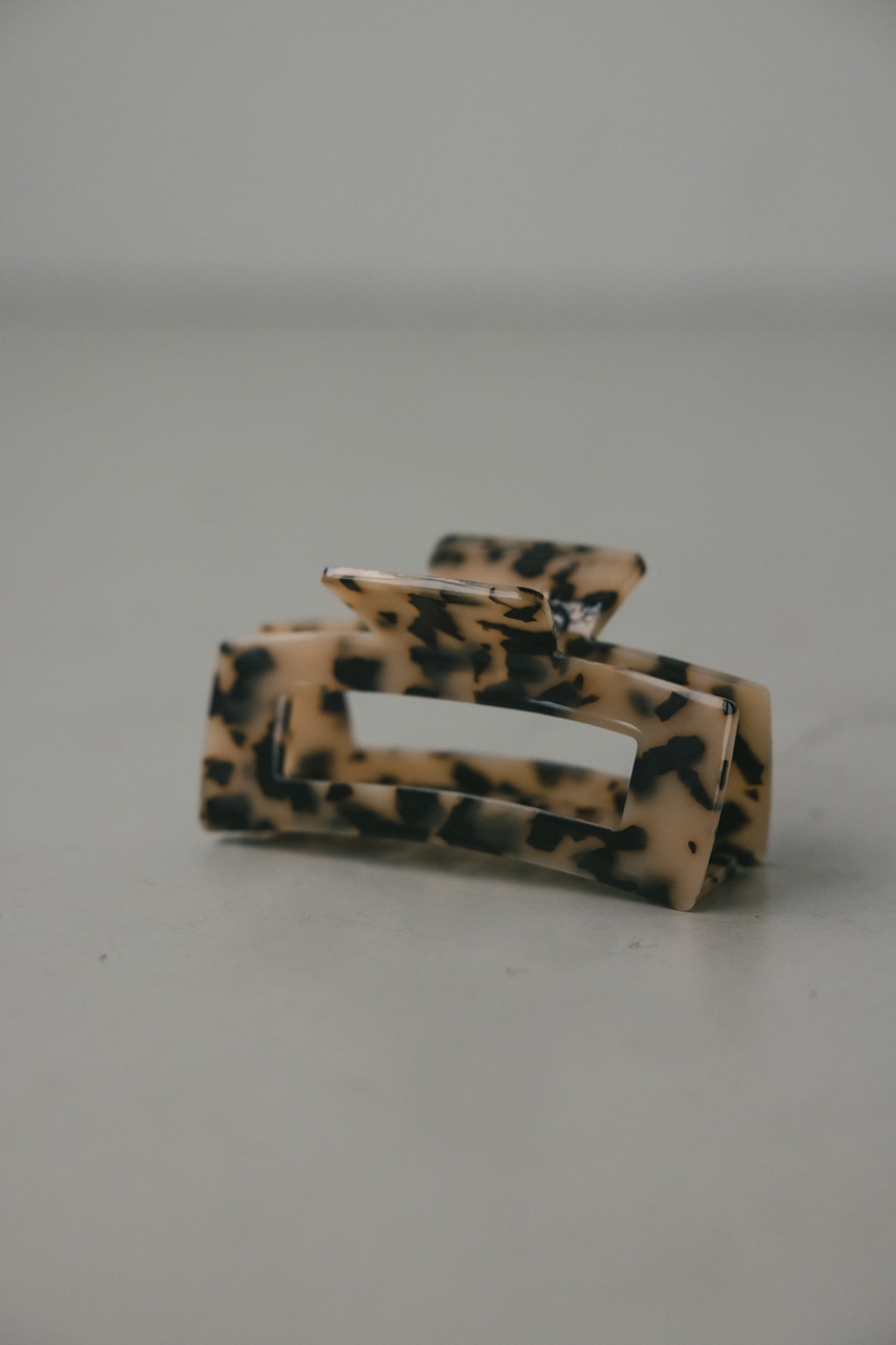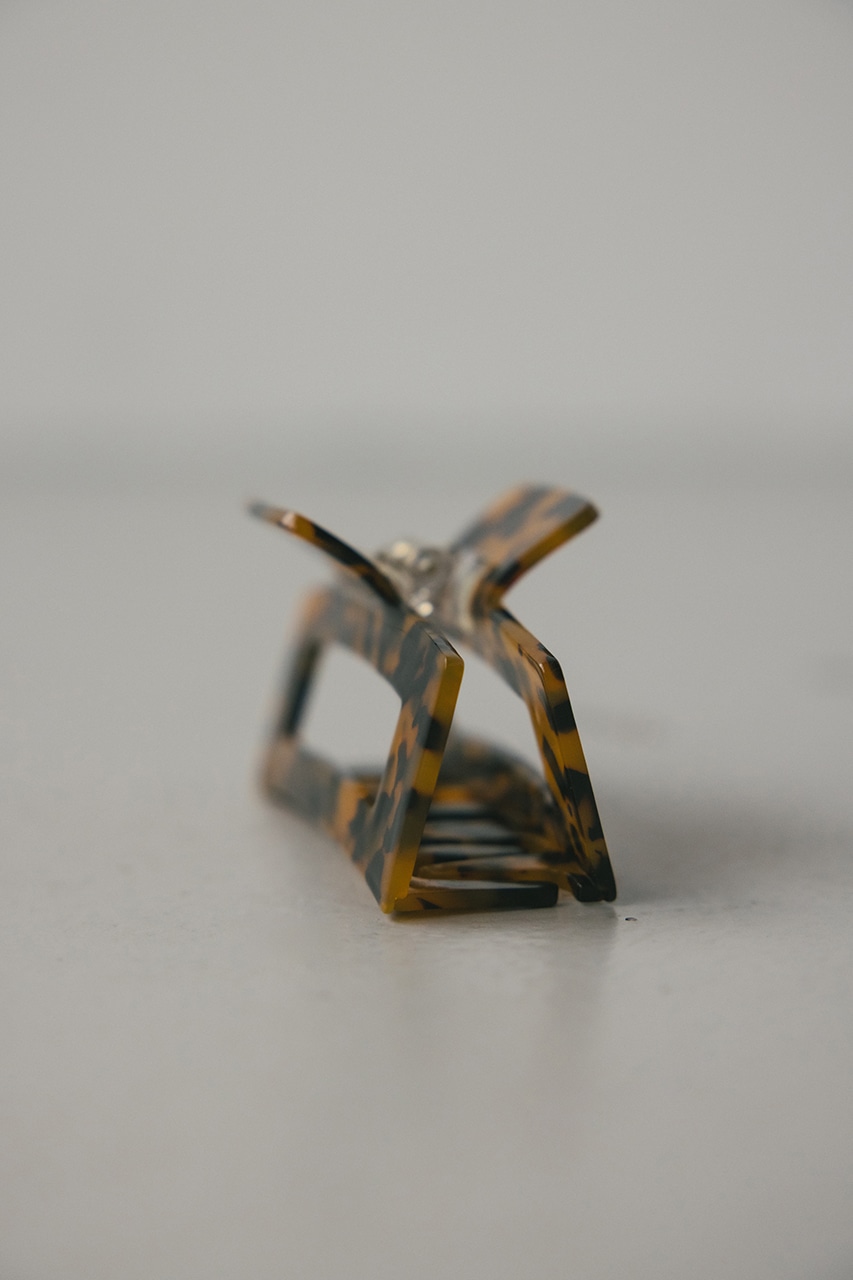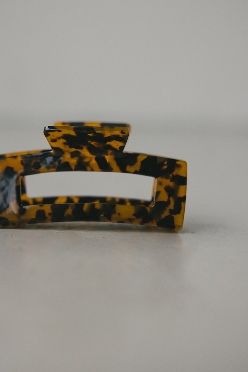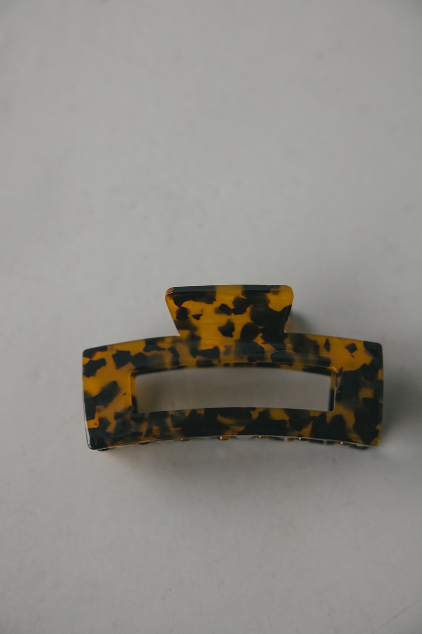 べっ甲調のスクエア型ヘアクリップ。髪をまとめるのに使いやすい大きめサイズ。シンプルなスタイリングのアクセントになるアイテムです。