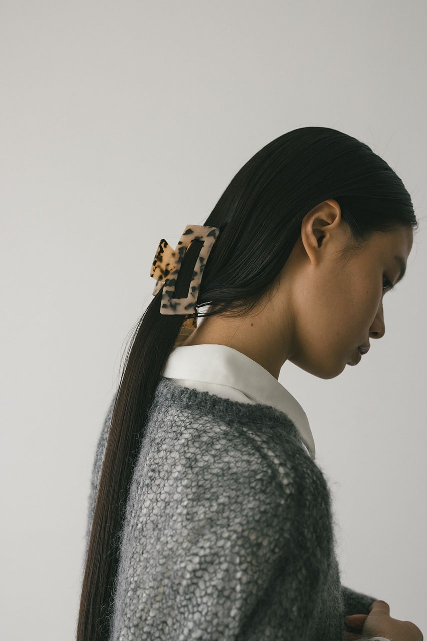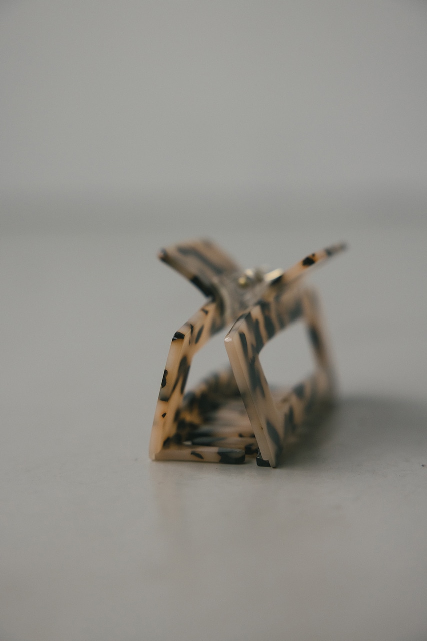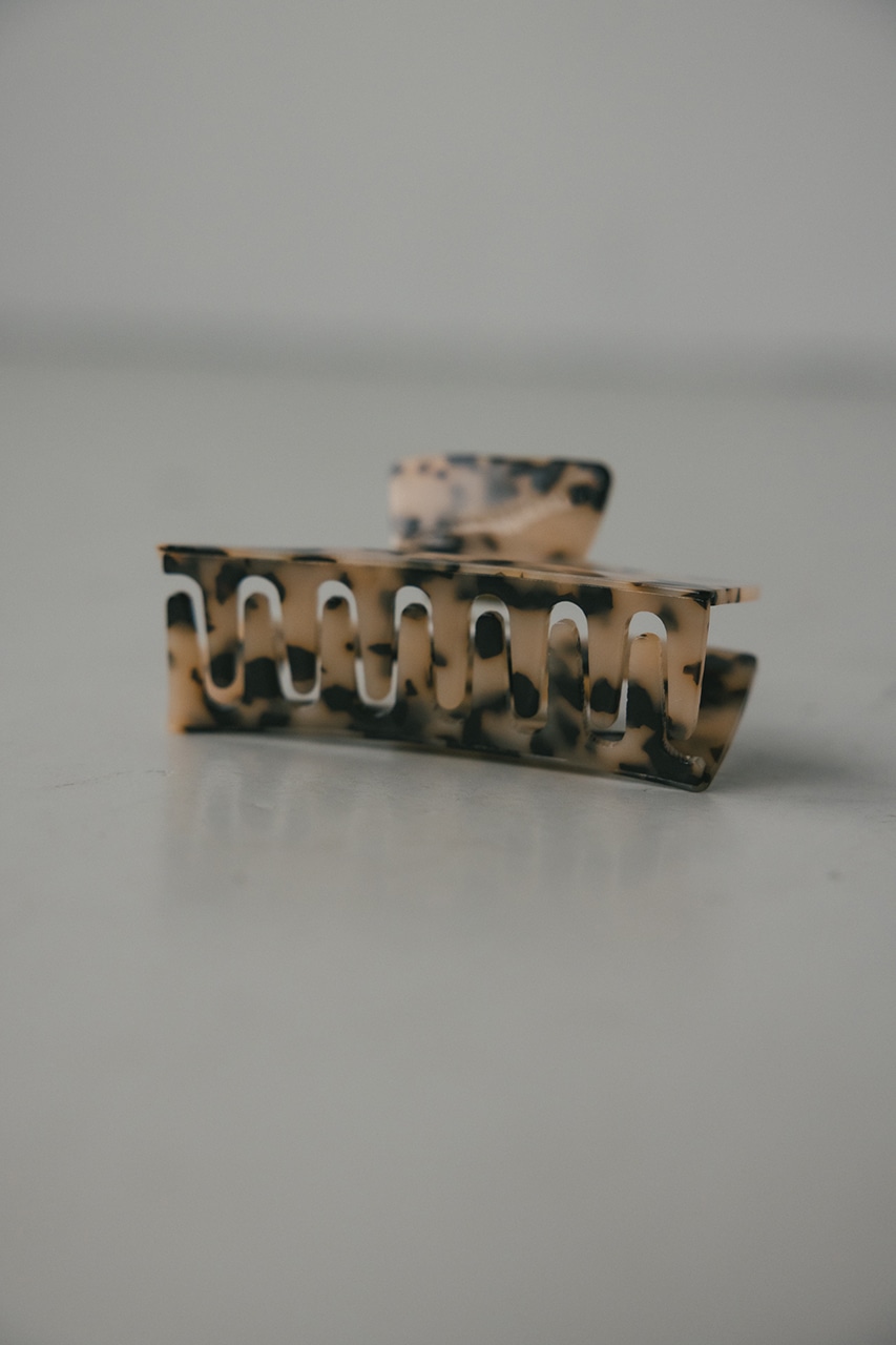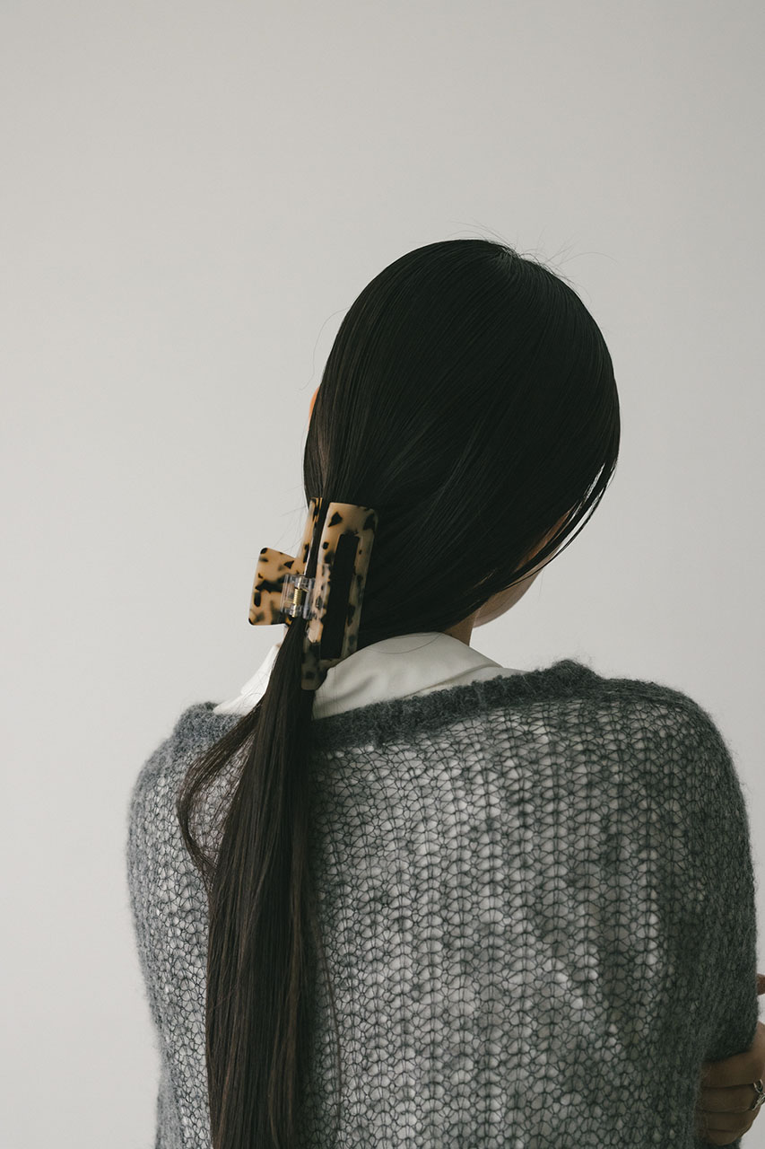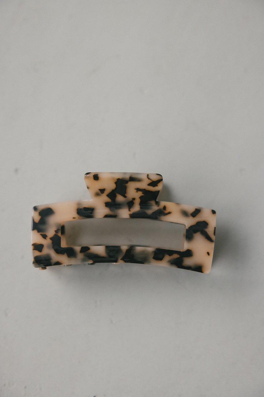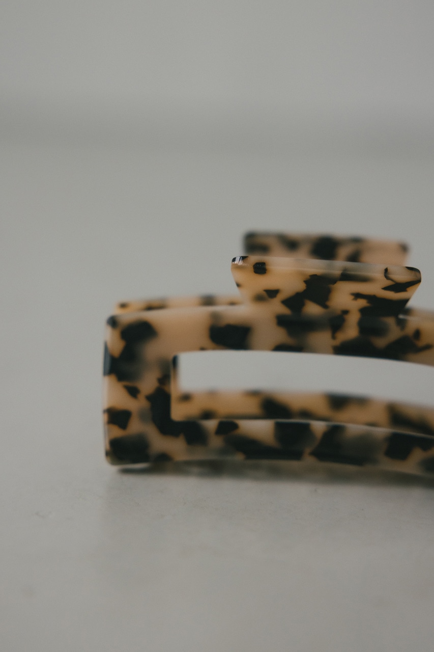 べっ甲調のスクエア型ヘアクリップ。髪をまとめるのに使いやすい大きめサイズ。シンプルなスタイリングのアクセントになるアイテムです。