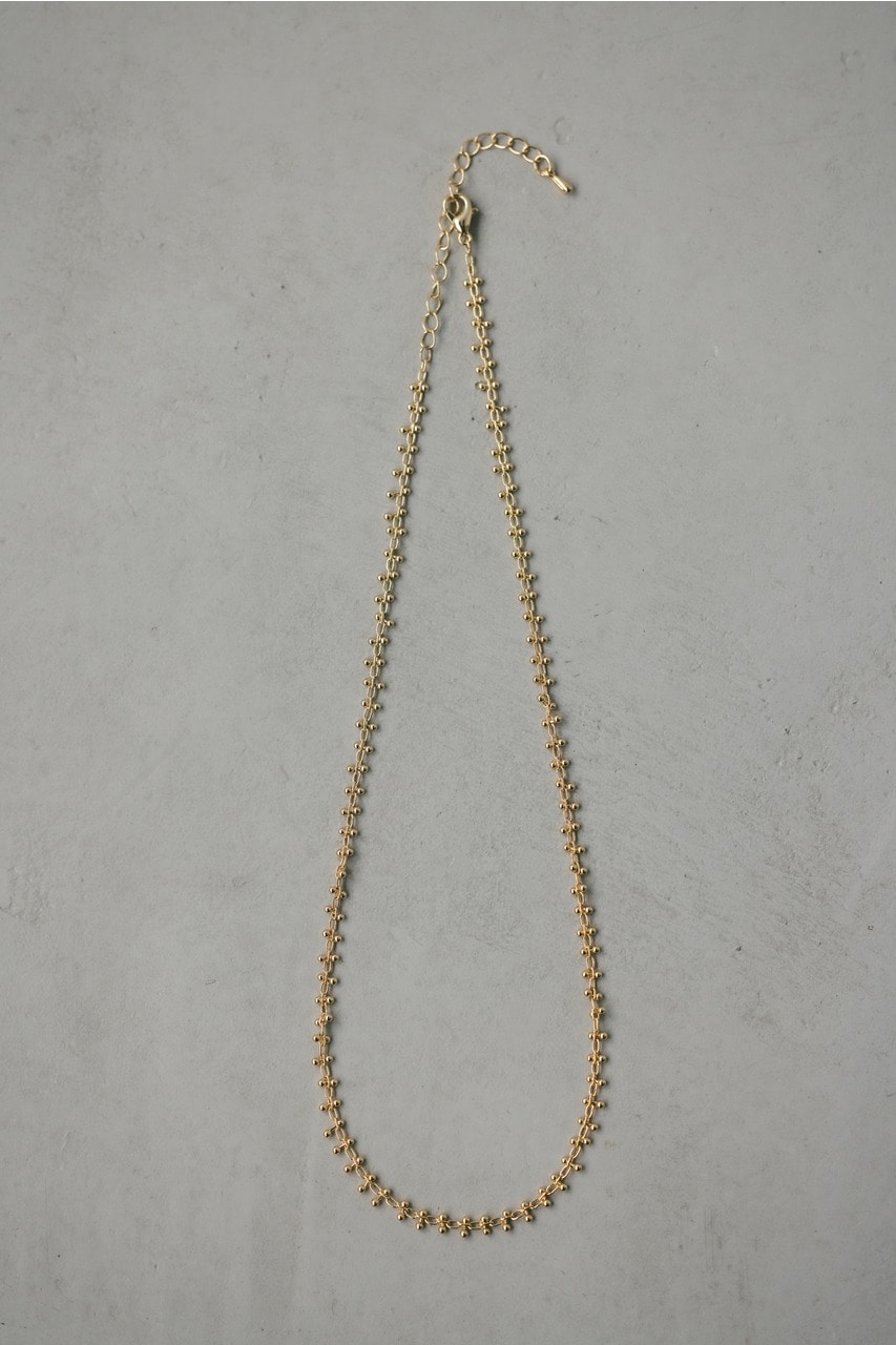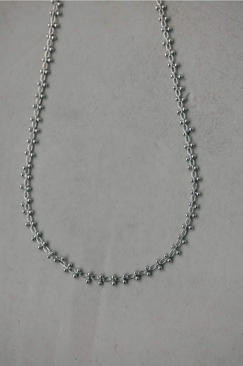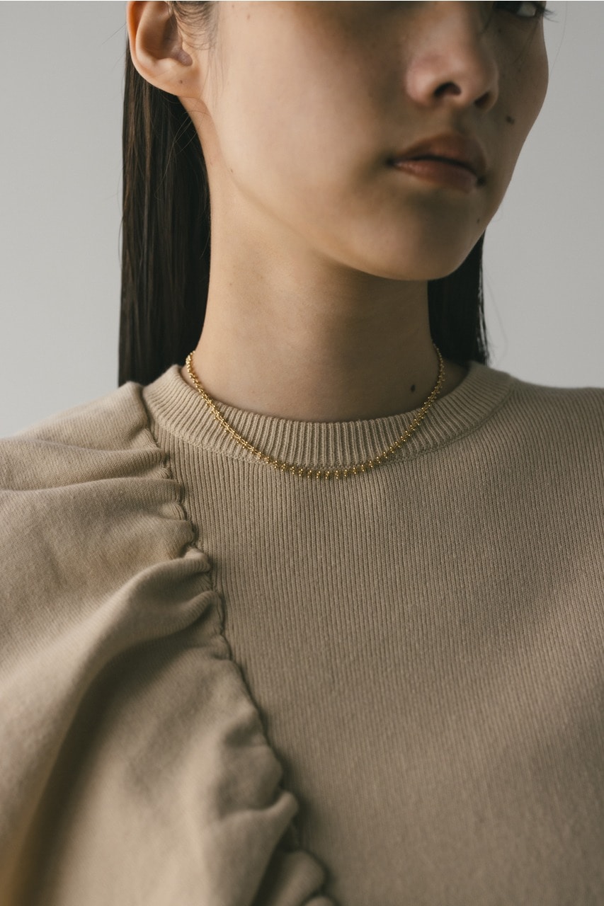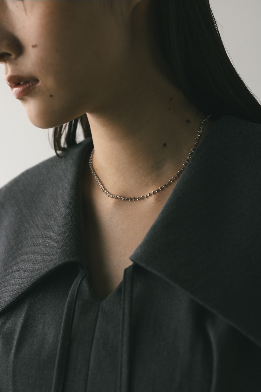 存在感のあるビーズチェーンネックレス。しっかりと存在感があり、シンプルな装いを華やかにしてくれます。