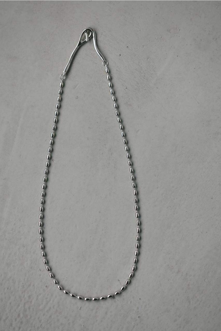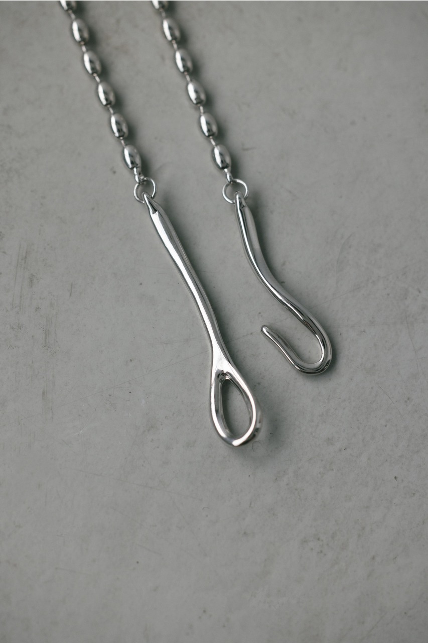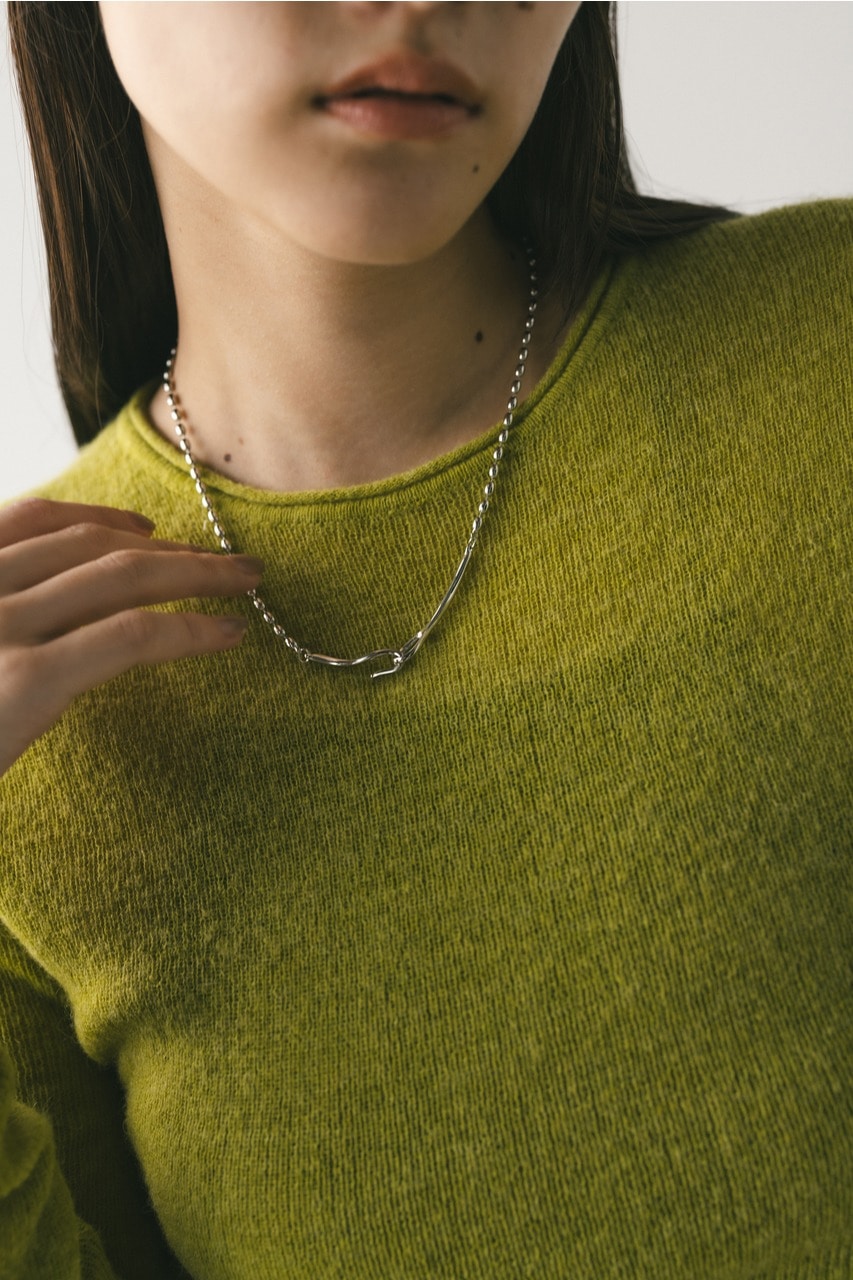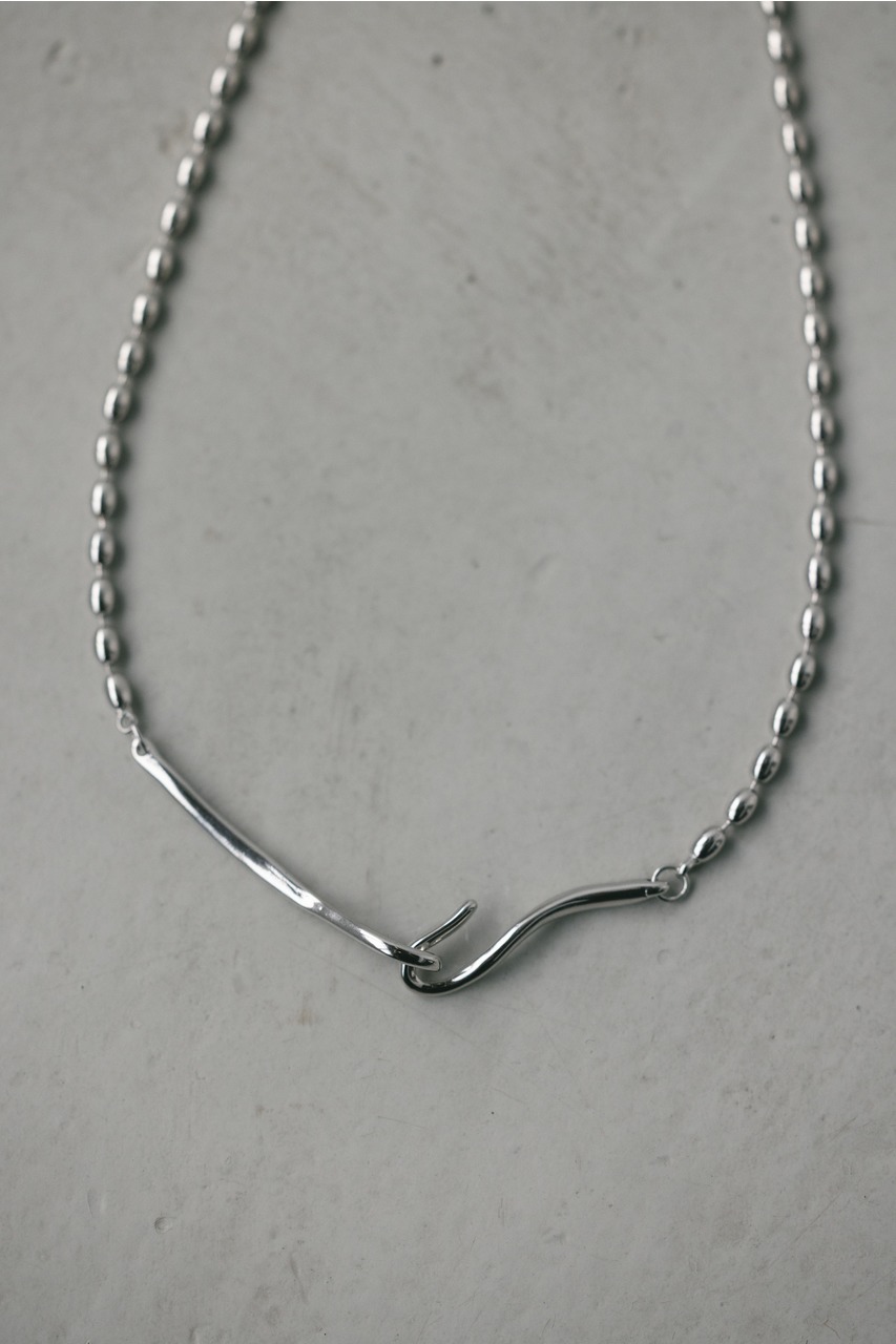 フックデザインがポイントのネックレス。ミニマルな装いのアクセントになります。