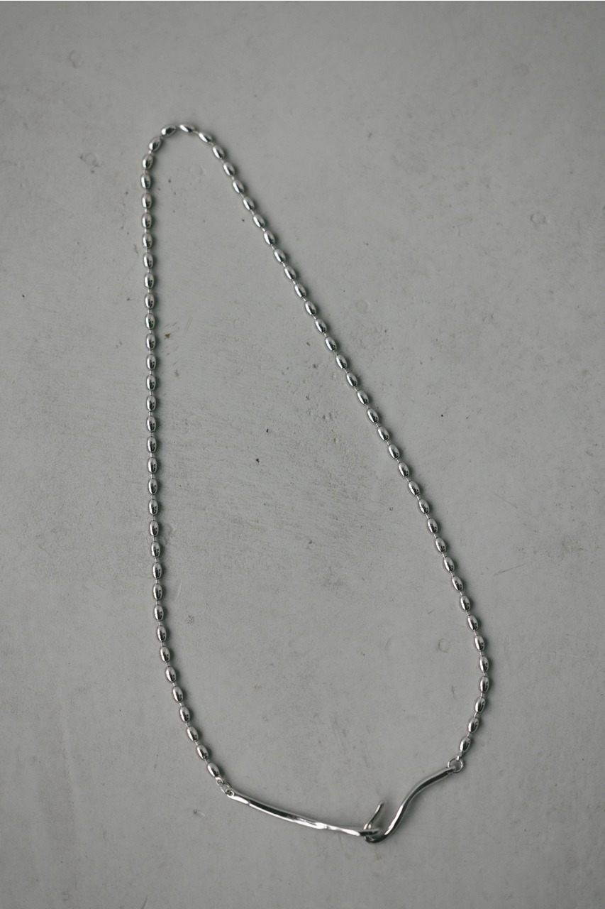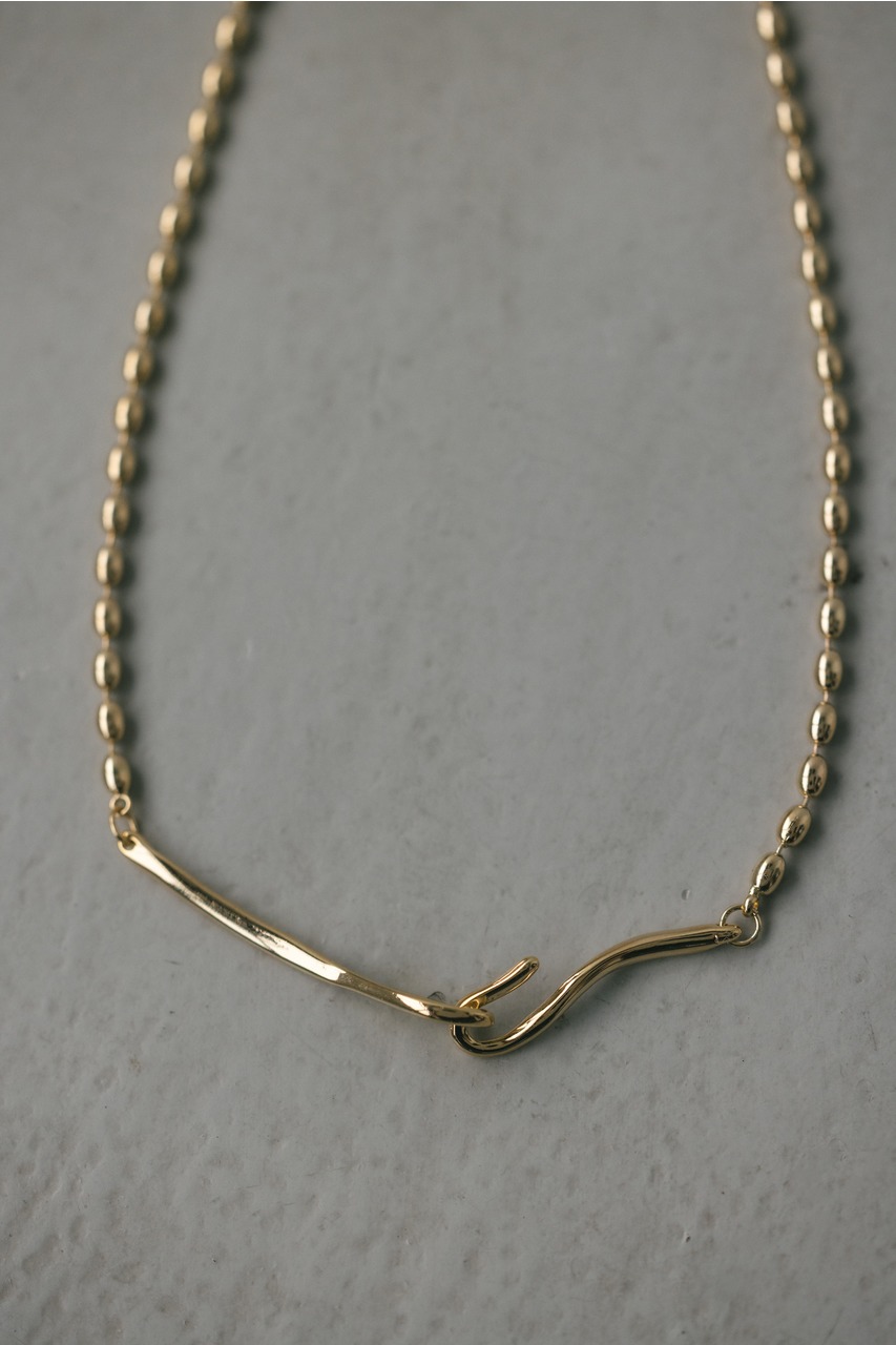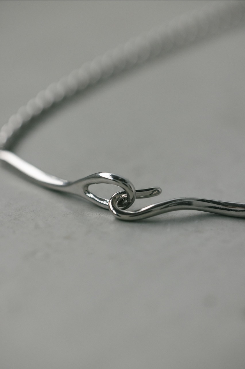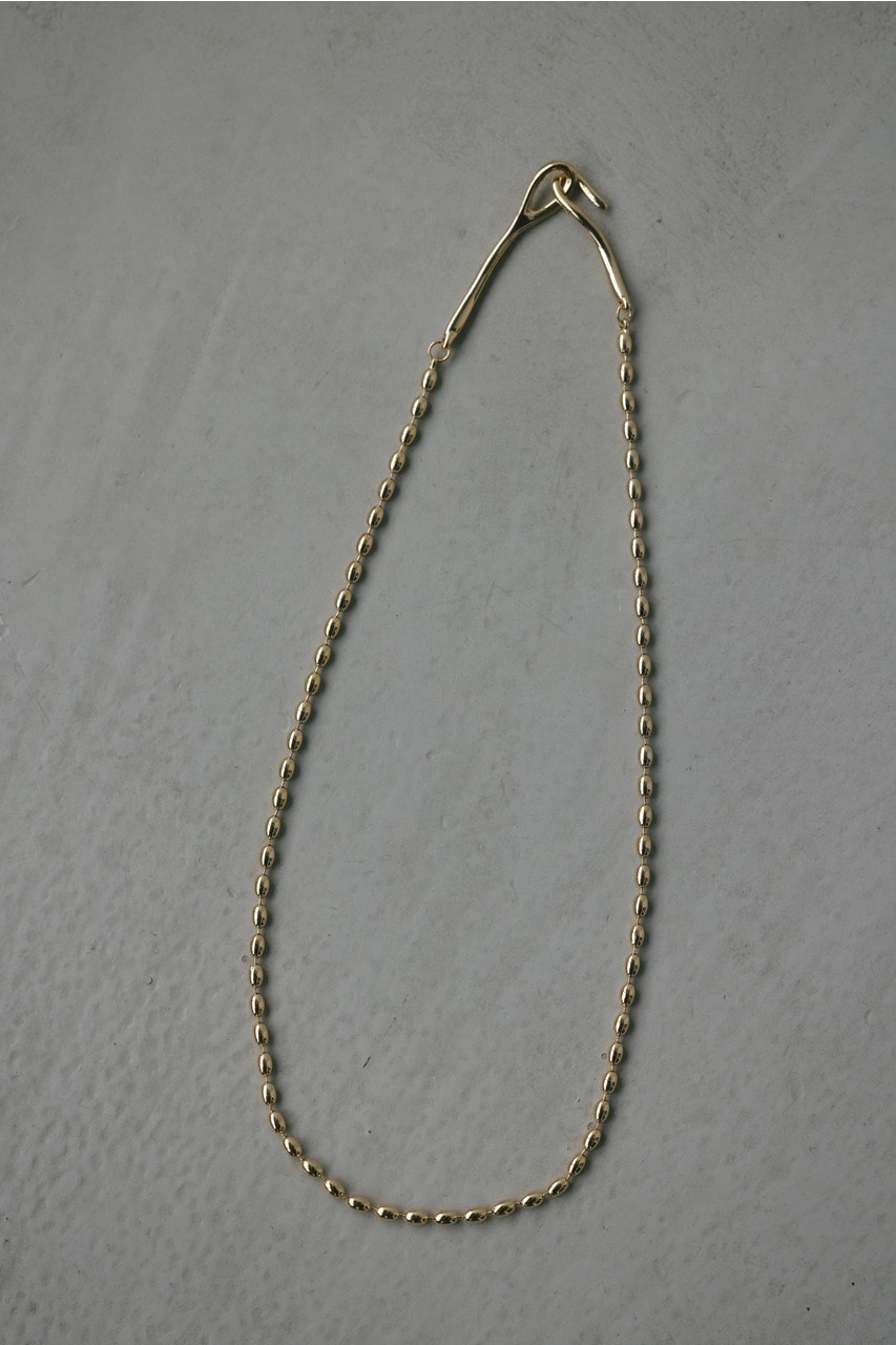フックデザインがポイントのネックレス。ミニマルな装いのアクセントになります。