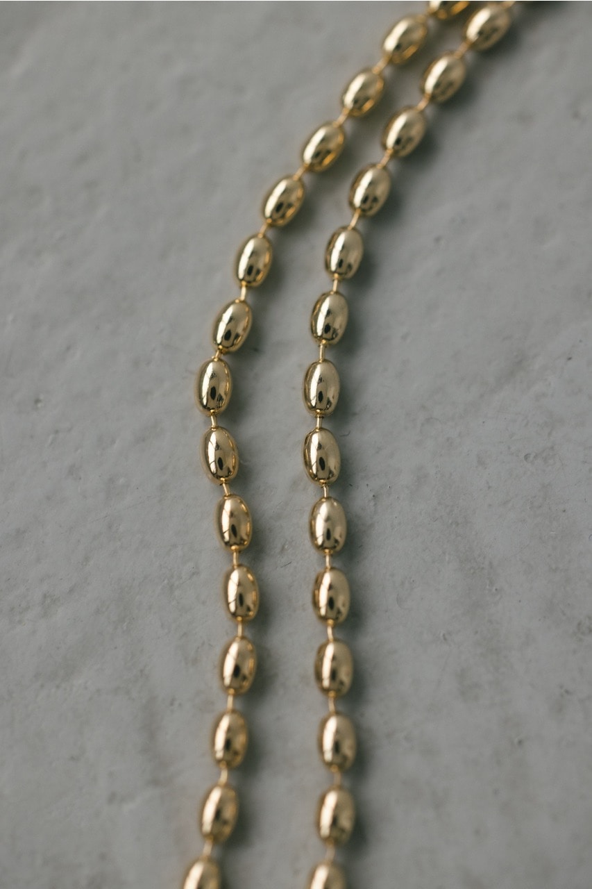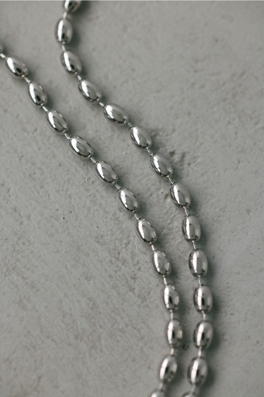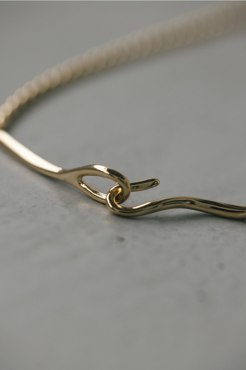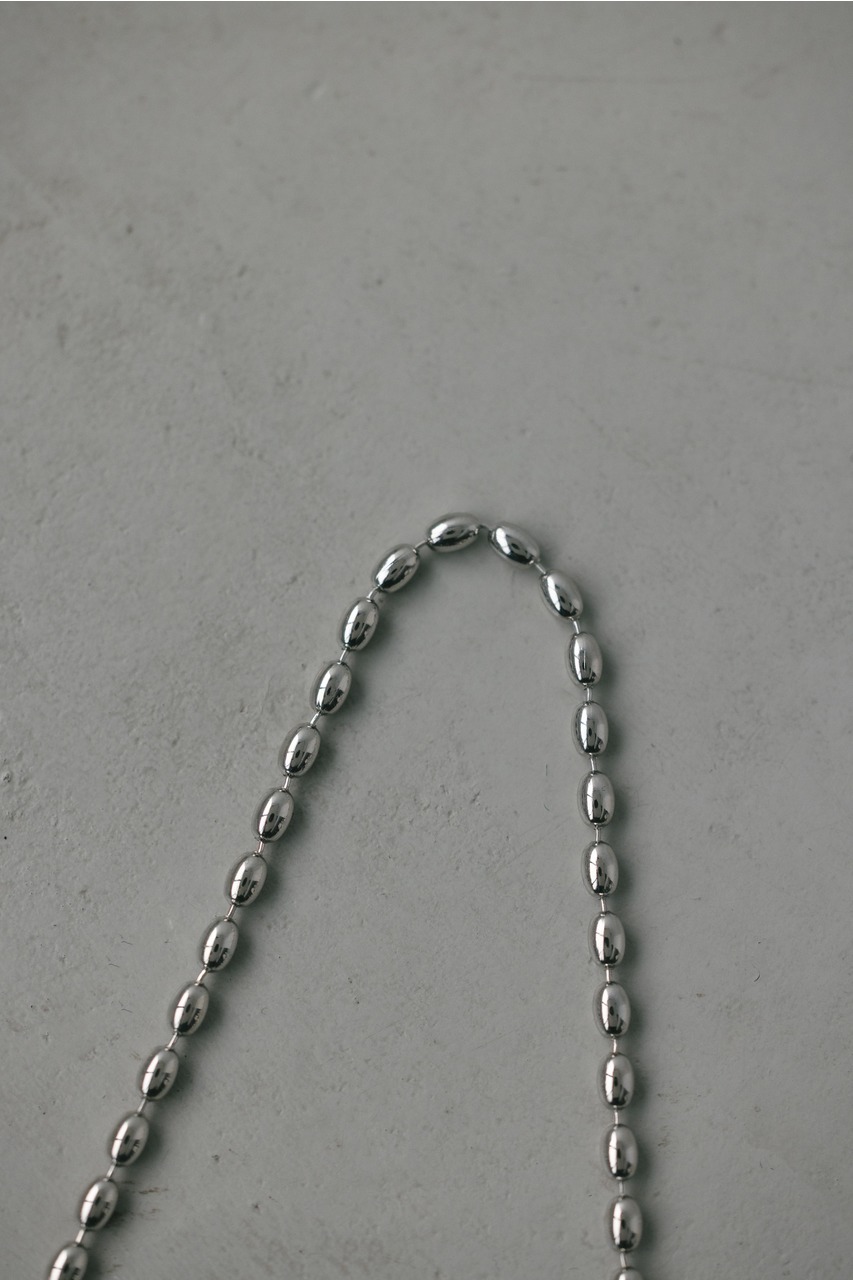 フックデザインがポイントのネックレス。ミニマルな装いのアクセントになります。
