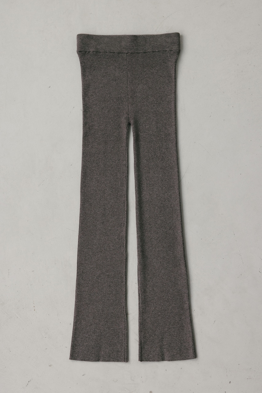 バックスリットがポイントのリブニットレギンス。キックバックが良く、暖かみを感じる滑らかな肌触りの糸を使用しているので着心地の良い一枚です。あえて長め丈に仕上げていて、シューズの上にレギンスを被せたりスリットからシューズをのぞかしたスタイリングがおすすめです。ストレッチあり、透け感なし。