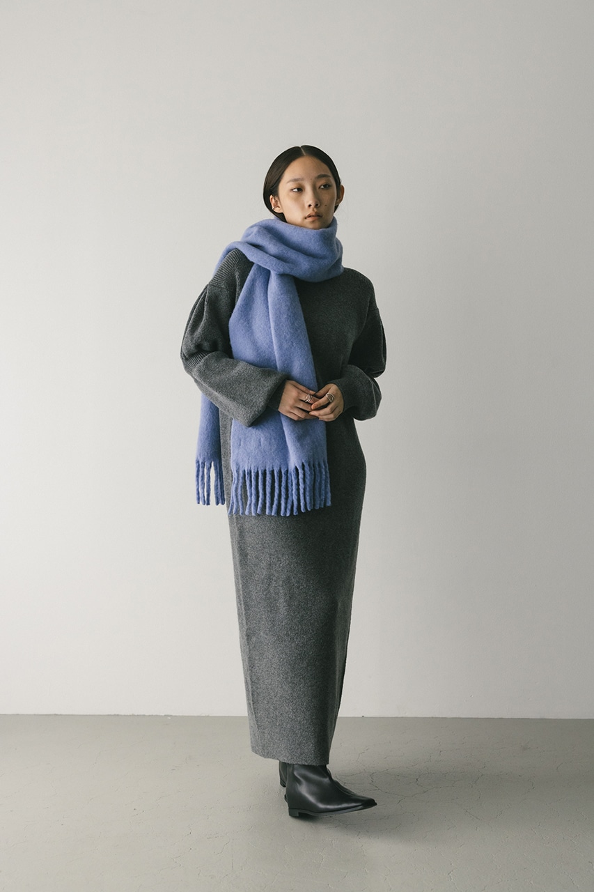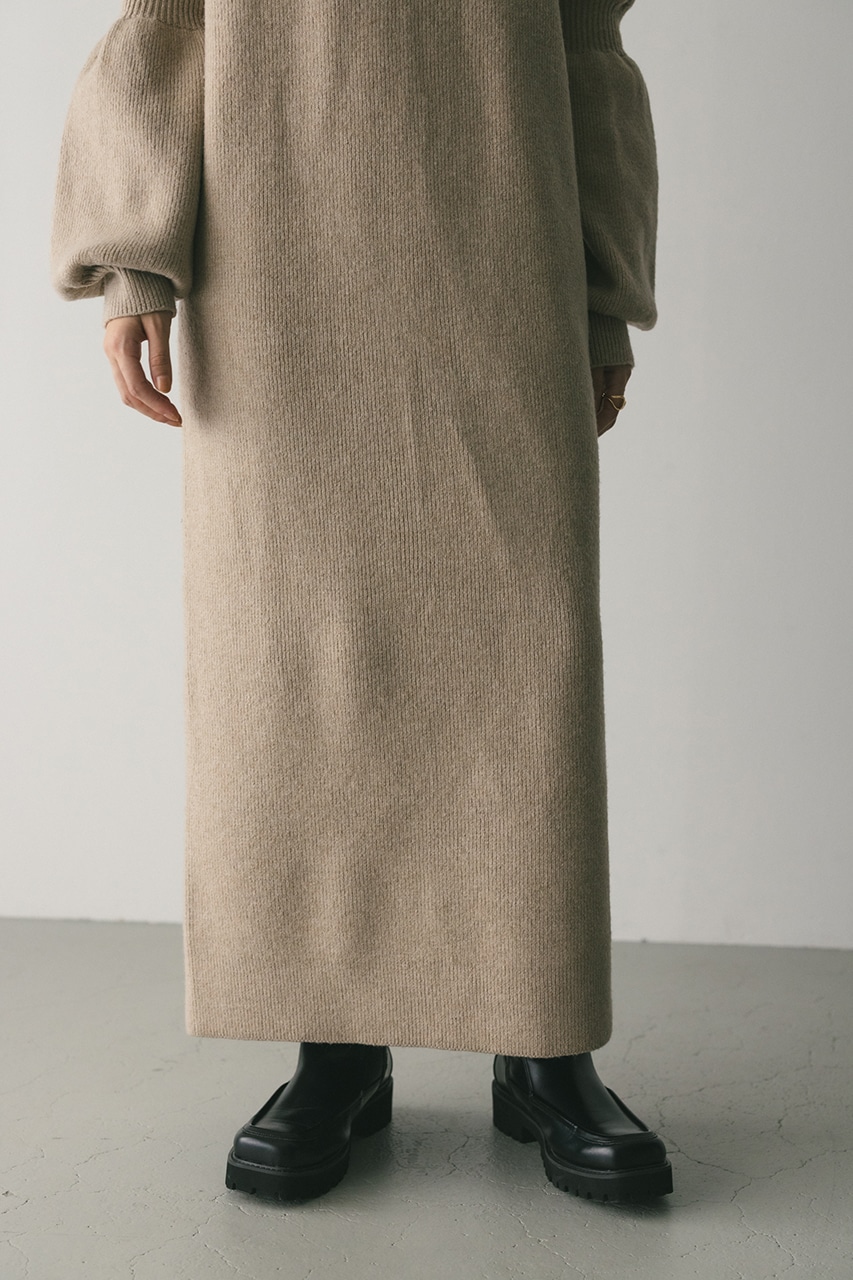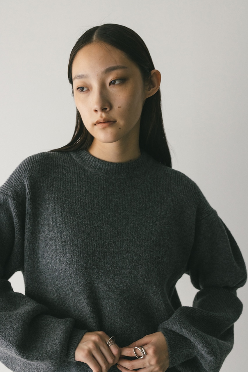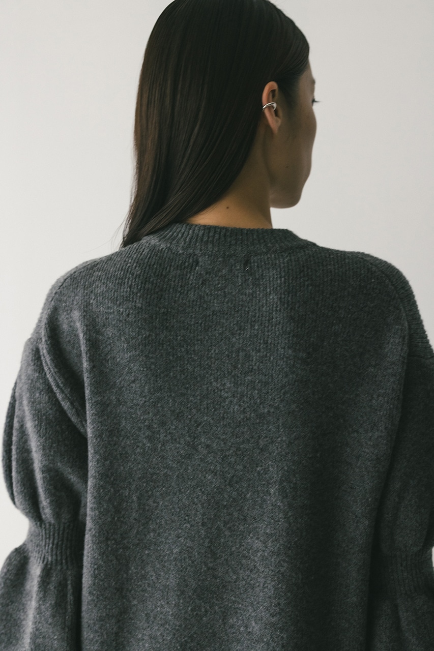 キャンディーのようにパフっとした袖がポイントのニットワンピース。身頃は片畦で編みたてることで、しっかりとした厚みがある身体のラインを拾いにくい仕様に仕上げました。あえて身頃はストレートシルエット、ロング丈にすることで、甘さの中にもスタミキらしいモードな雰囲気をプラスしています。透け感なし、ストレッチあり。