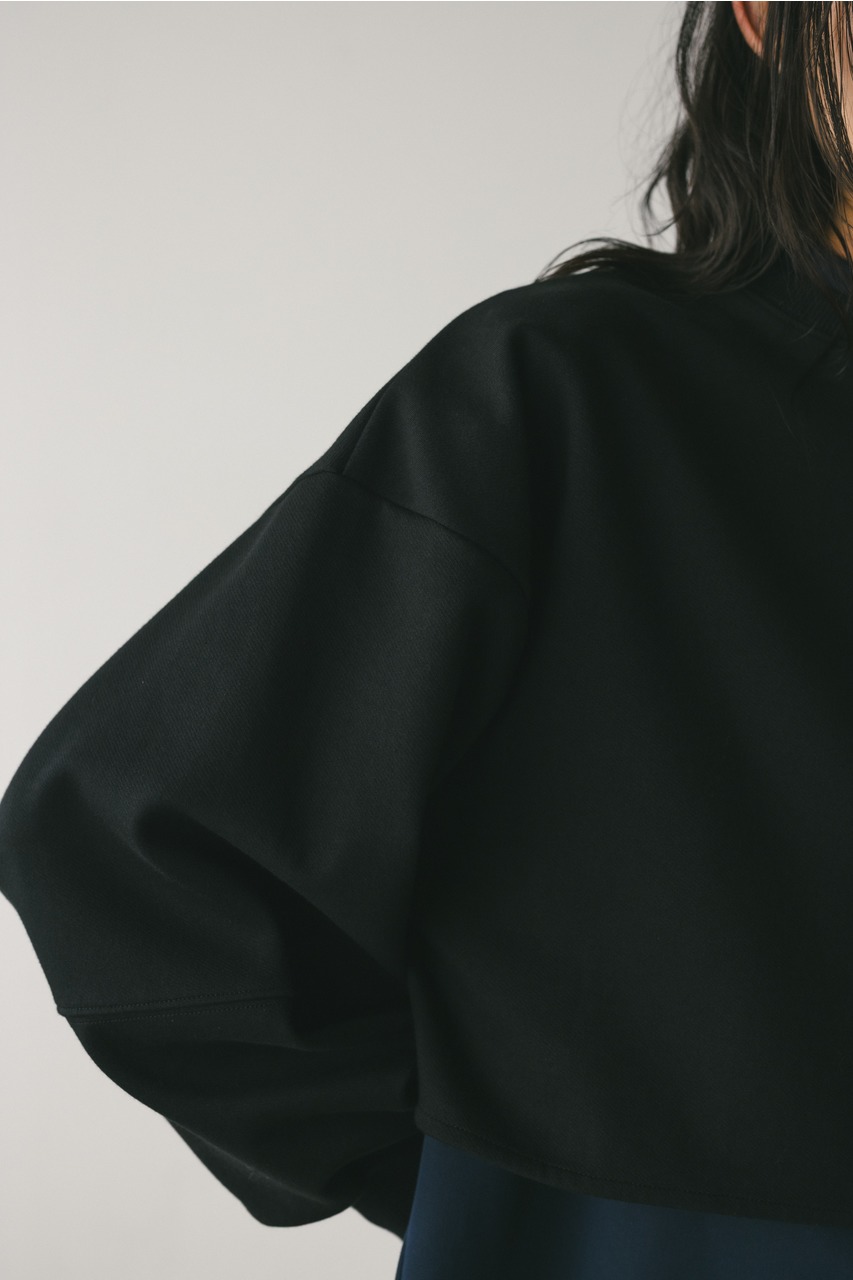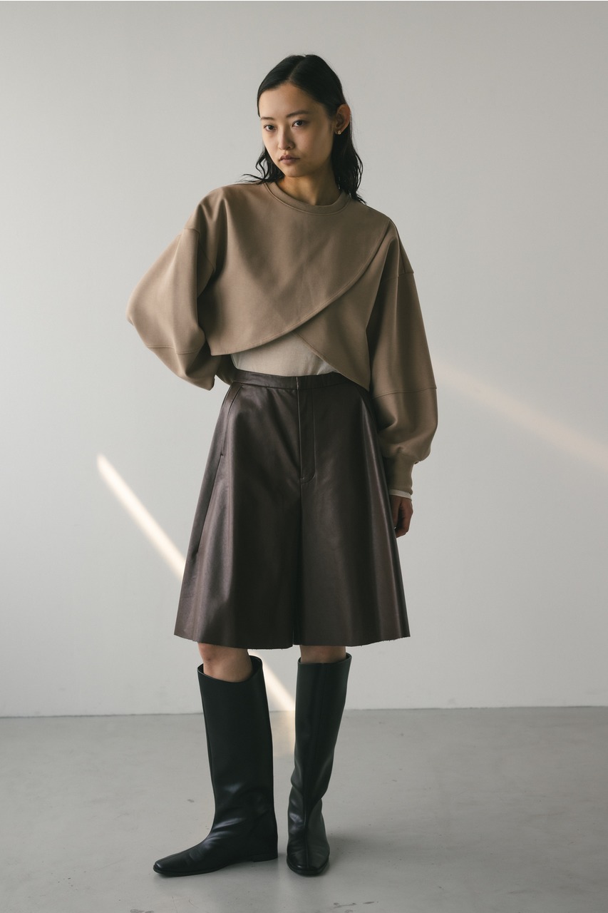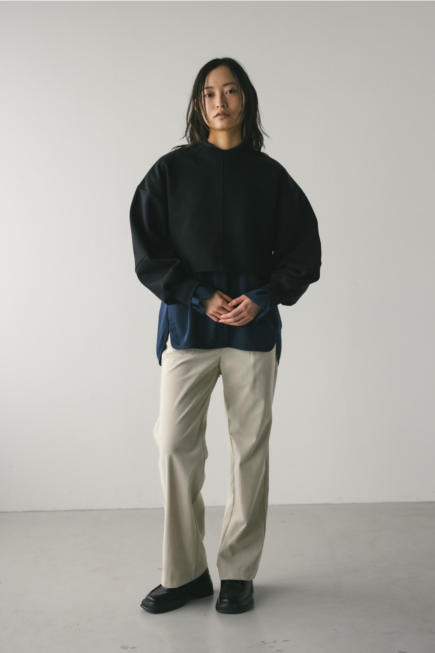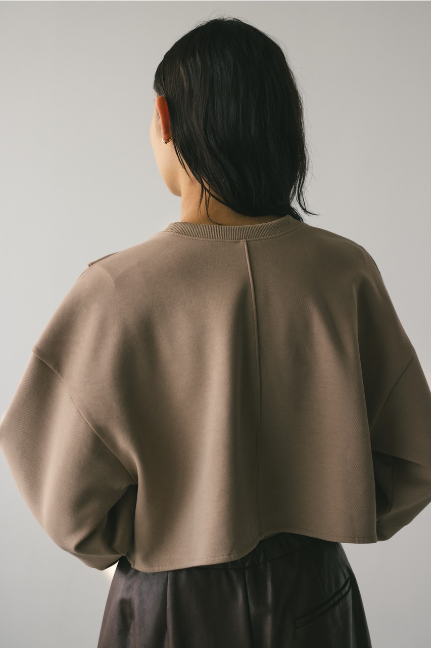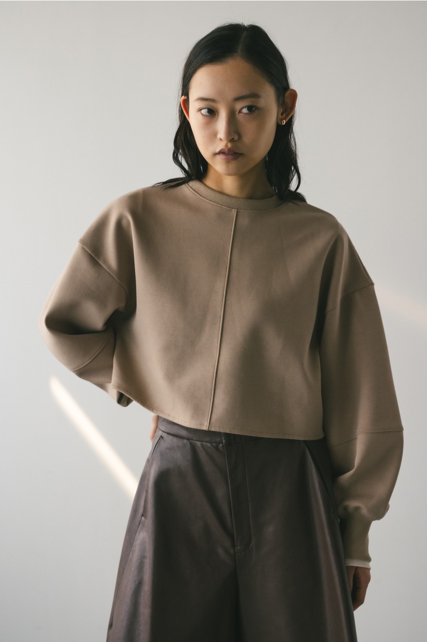 クロスデザインがポイントの前後2WAYで着用可能のダンボールトップ。バランスのとりやすいショート丈でボトムスを選ばず着用頂けます。ストレッチあり、透け感なし。