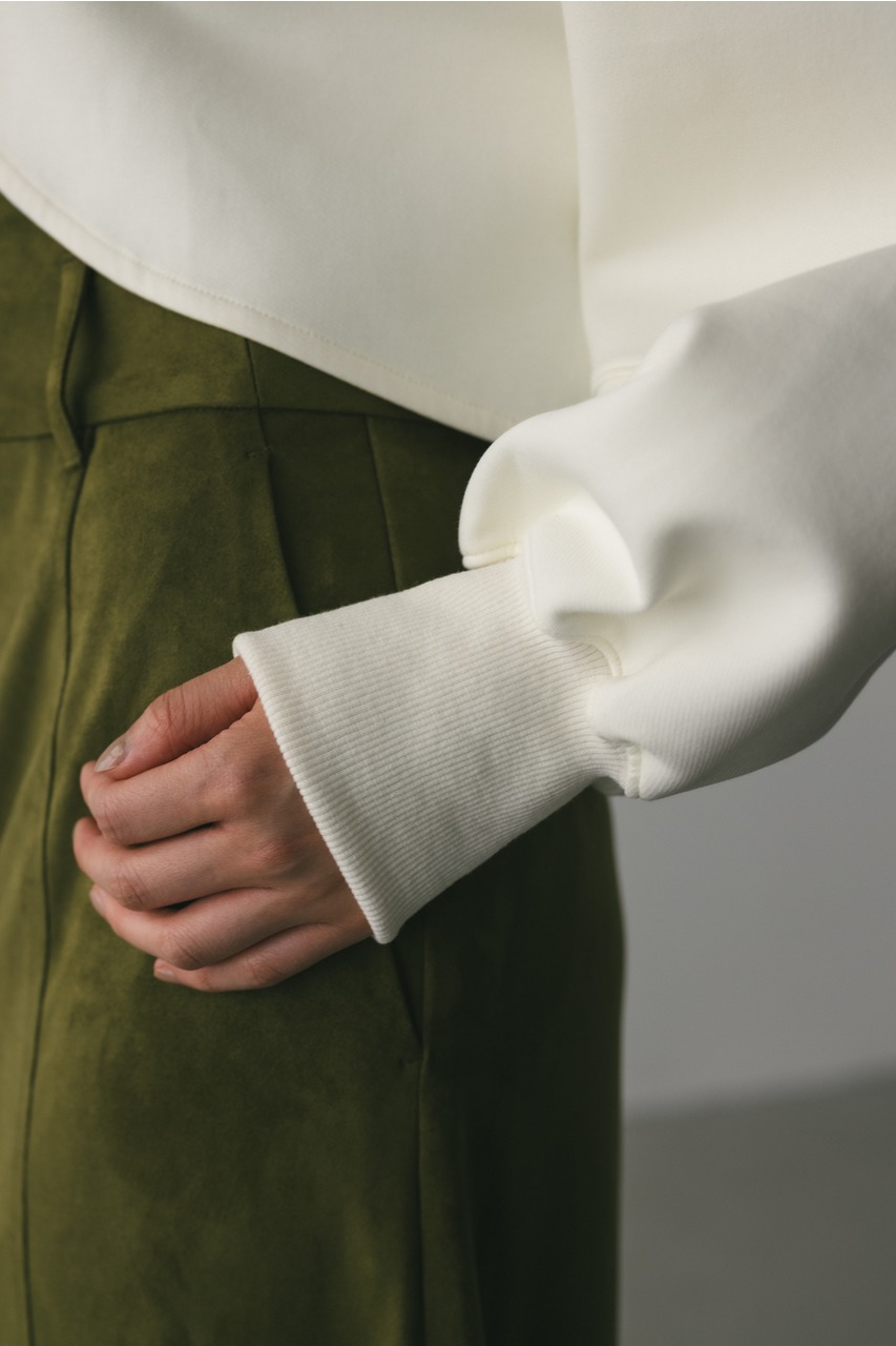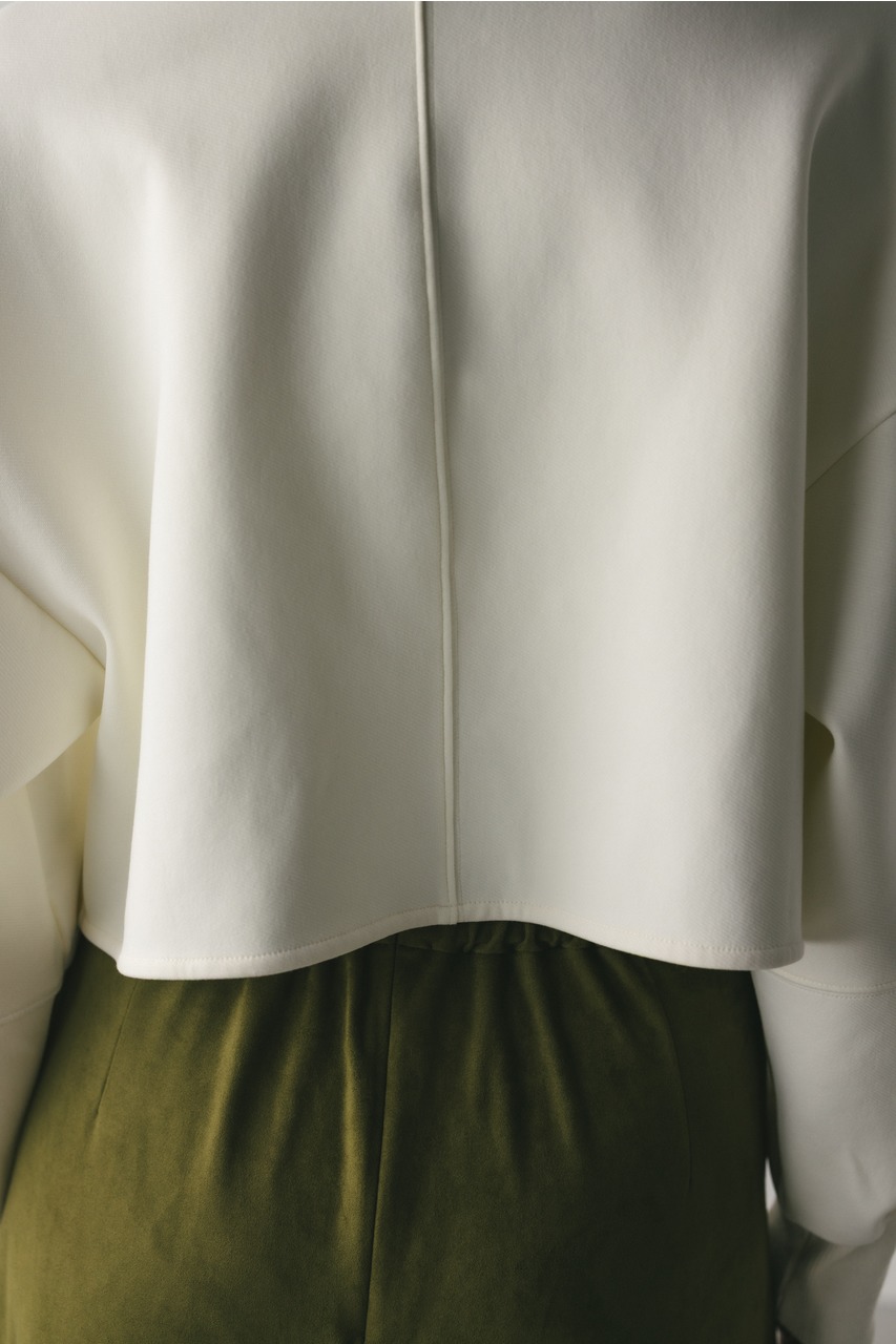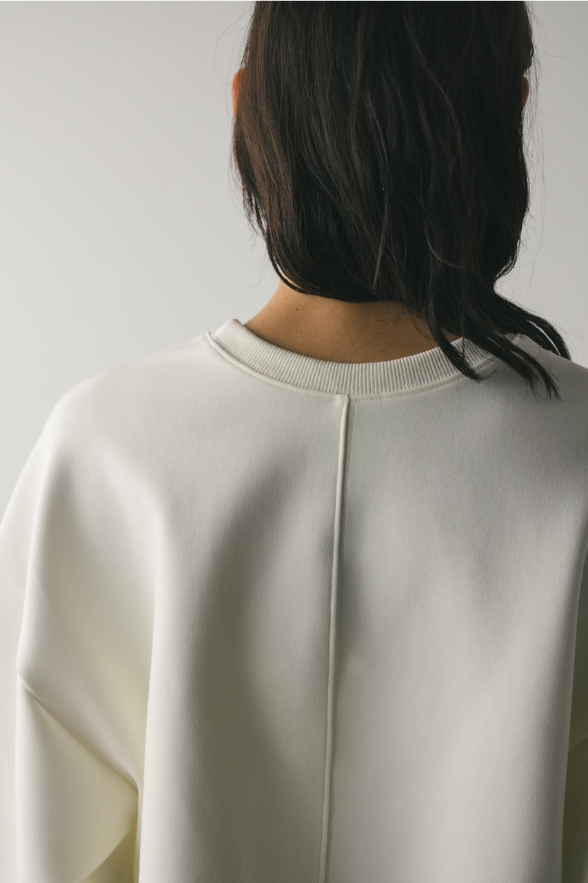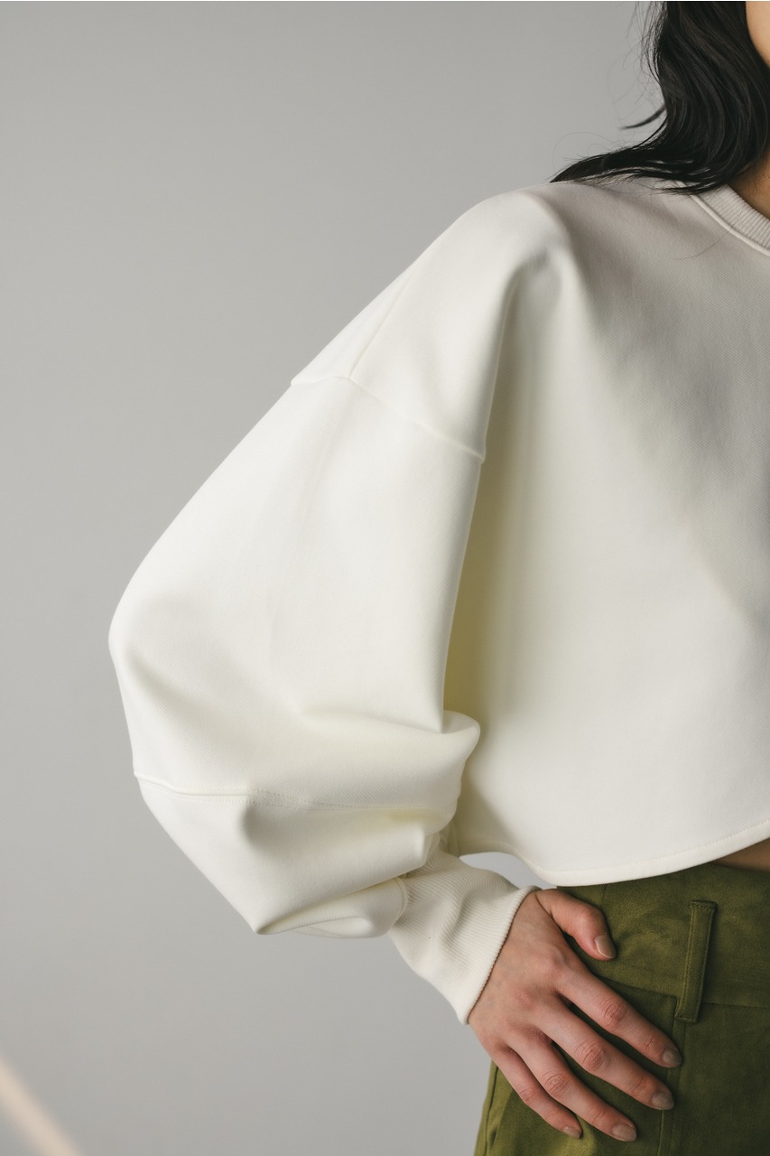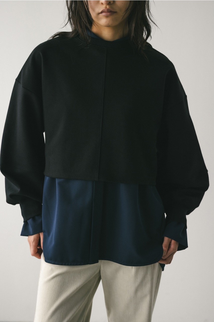 クロスデザインがポイントの前後2WAYで着用可能のダンボールトップ。バランスのとりやすいショート丈でボトムスを選ばず着用頂けます。ストレッチあり、透け感なし。