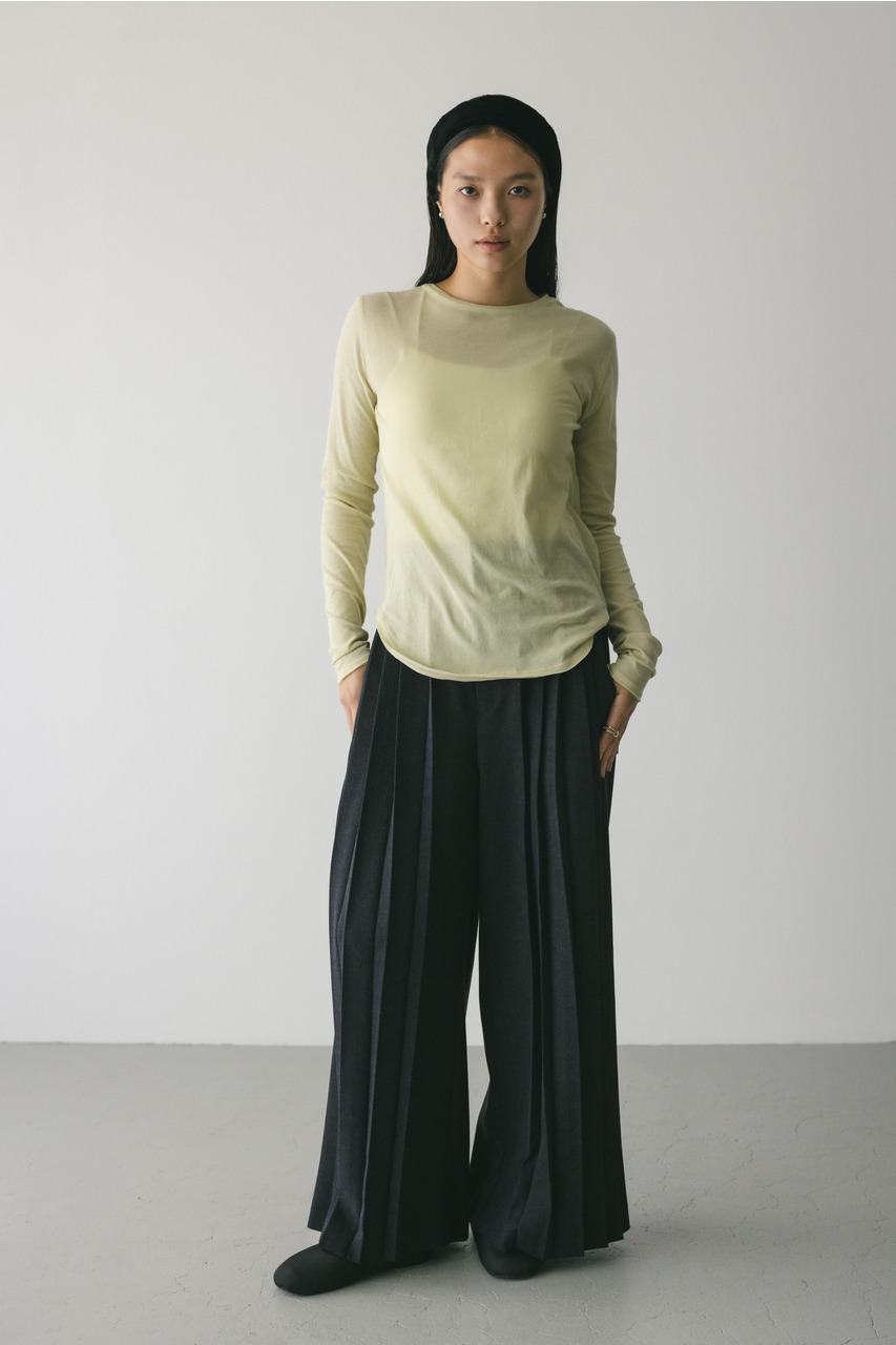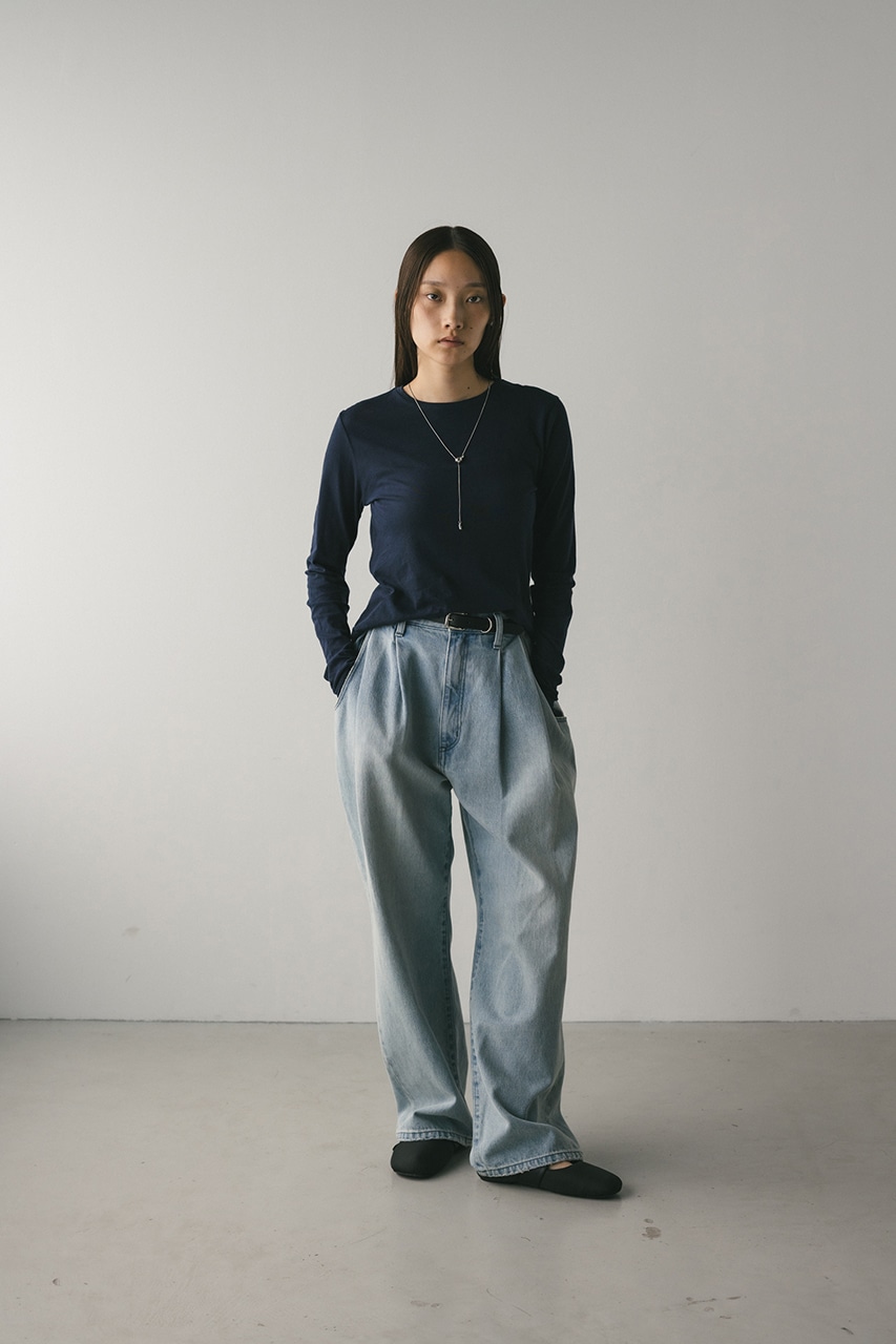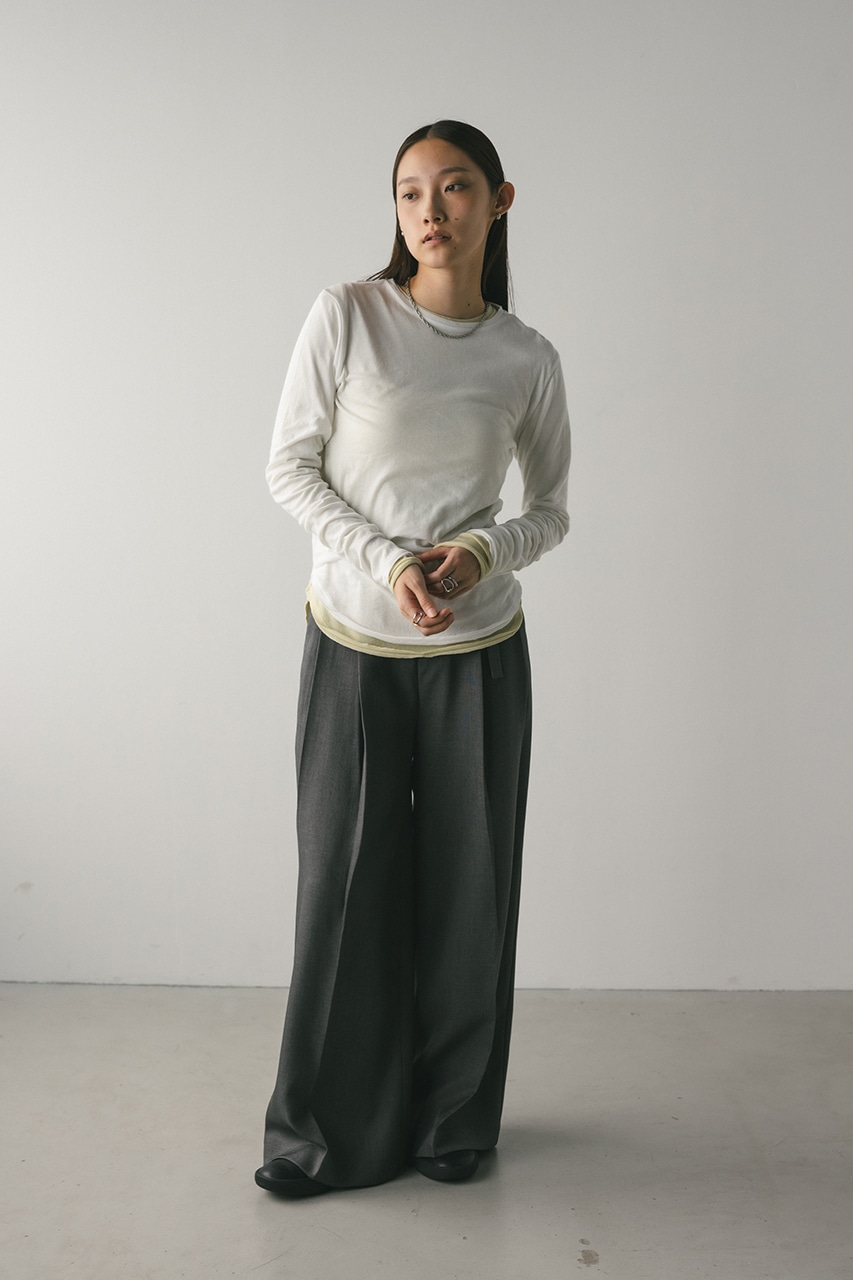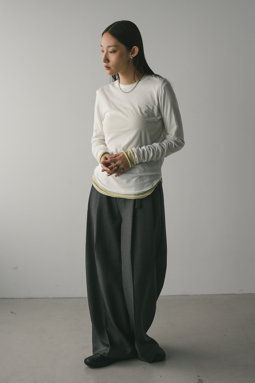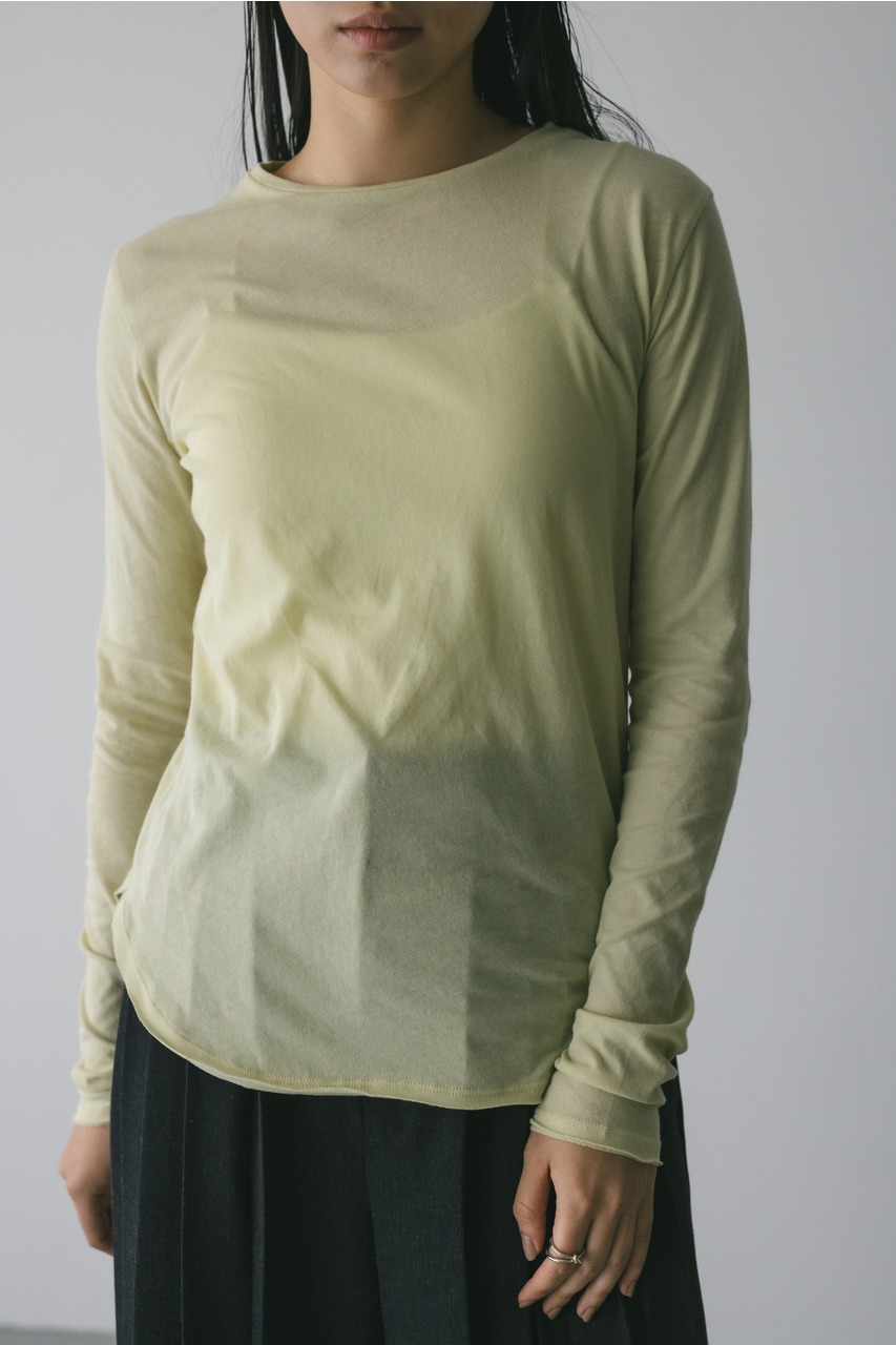 動きのあるヘムカーブラインとバックシームデザインがかわいいカットソー。肌なじみの良い薄めの天竺素材を使用した着心地の良いロンTです。ストレッチあり、透け感あり。