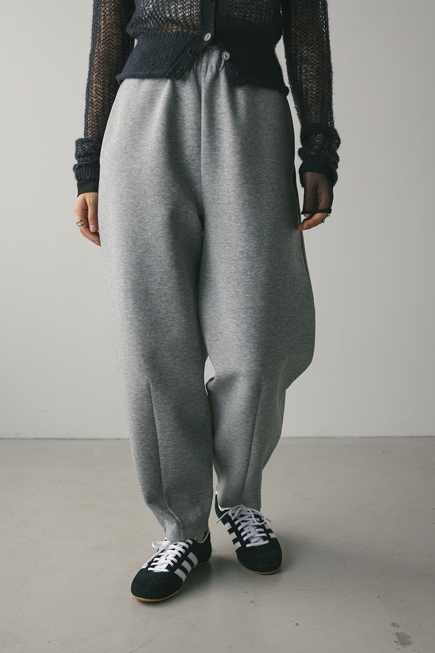 さらっとした肌触りでハリ感のあるダンボール素材を使用したスウェットパンツ。身体のラインをひろいにくく着用頂きやすいボトムス。裾にダーツを施しフォルムを出したシルエットなので、スタイリッシュにスタイリング頂けます。ストレッチあり、透け感なし。