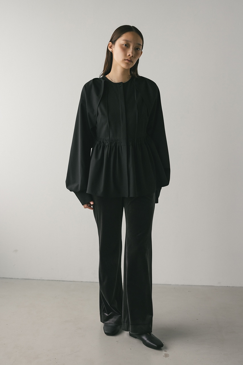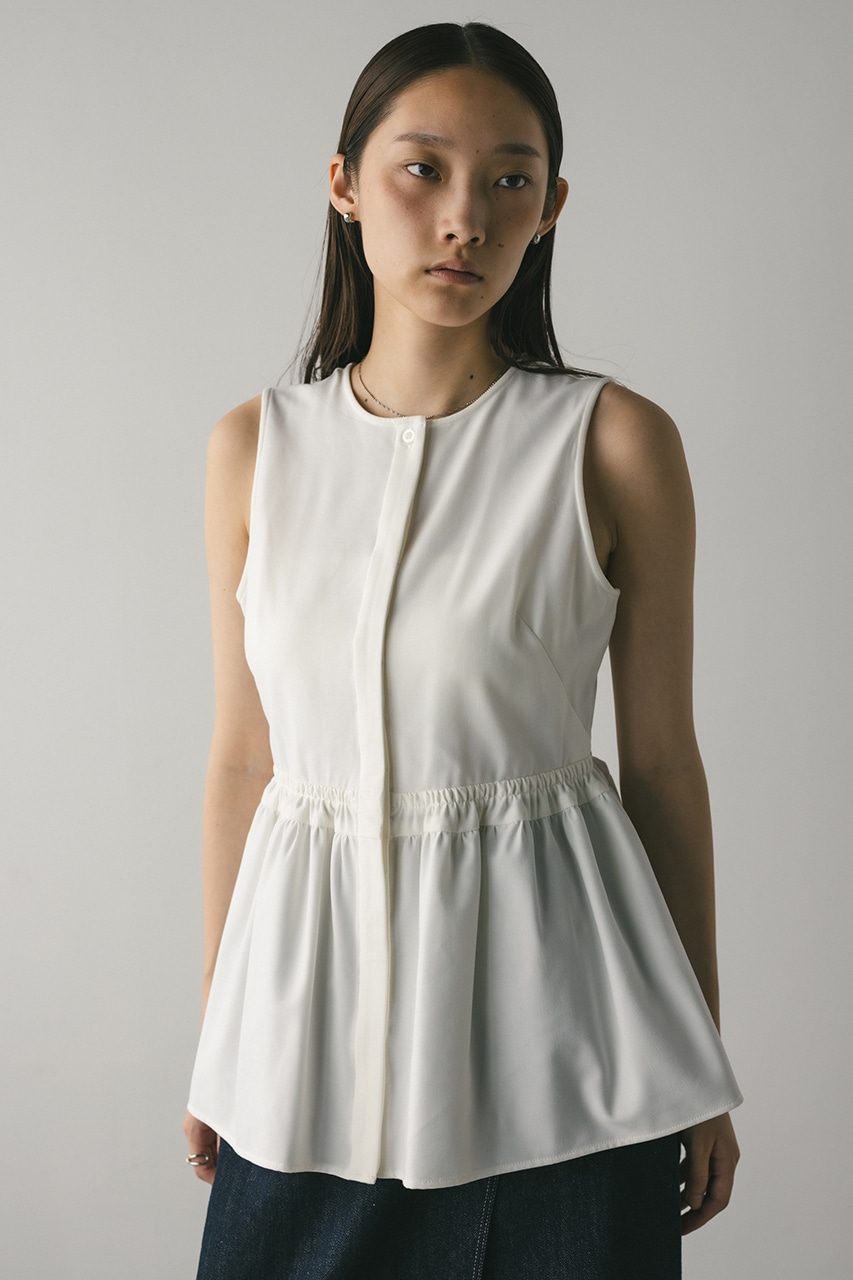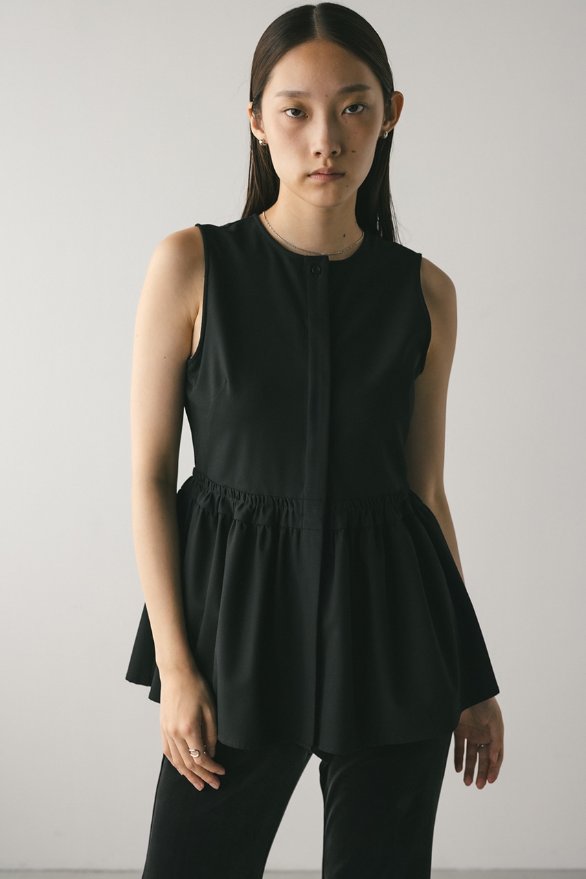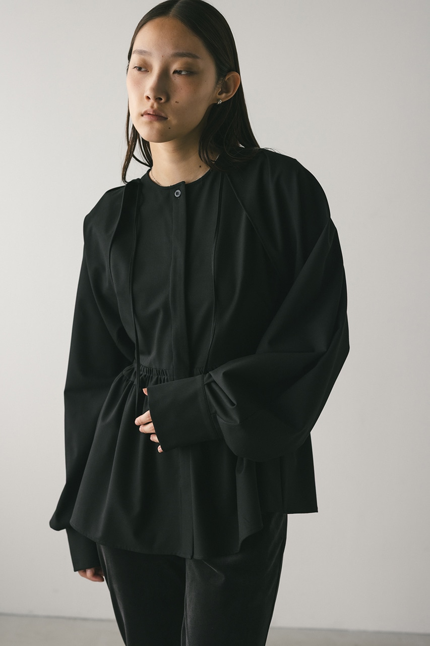 シーンや気温に合わせて着脱できるボレロとノースリぺプラムシャツのセットアイテム。程よい落ち感が肌馴染みよく女性らしく着用頂ける一枚です。ストレッチなし、透け感なし。