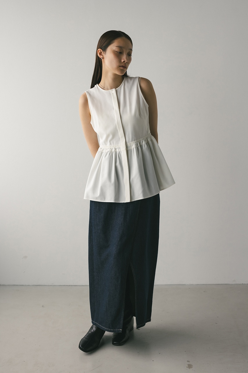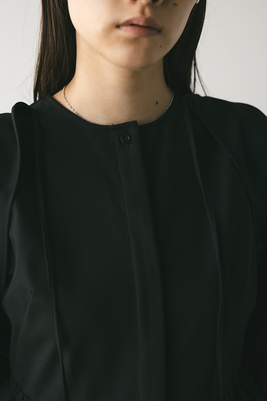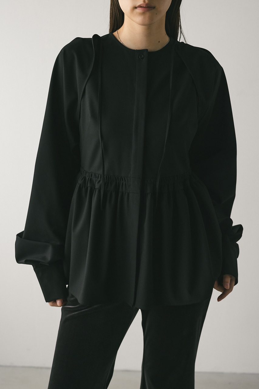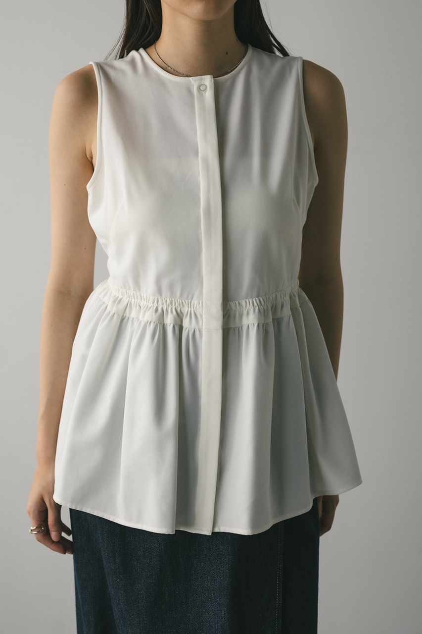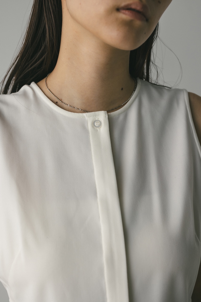 シーンや気温に合わせて着脱できるボレロとノースリぺプラムシャツのセットアイテム。程よい落ち感が肌馴染みよく女性らしく着用頂ける一枚です。ストレッチなし、透け感なし。