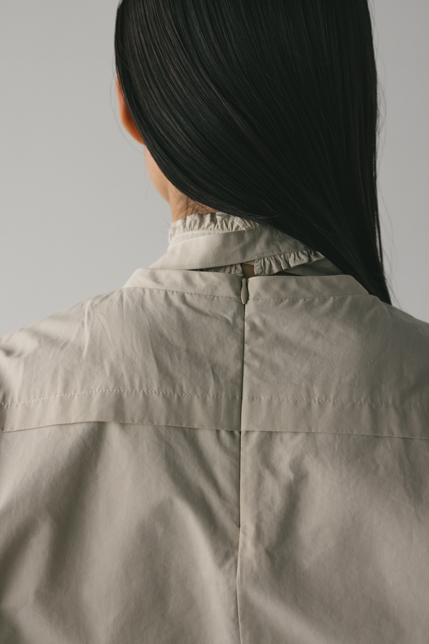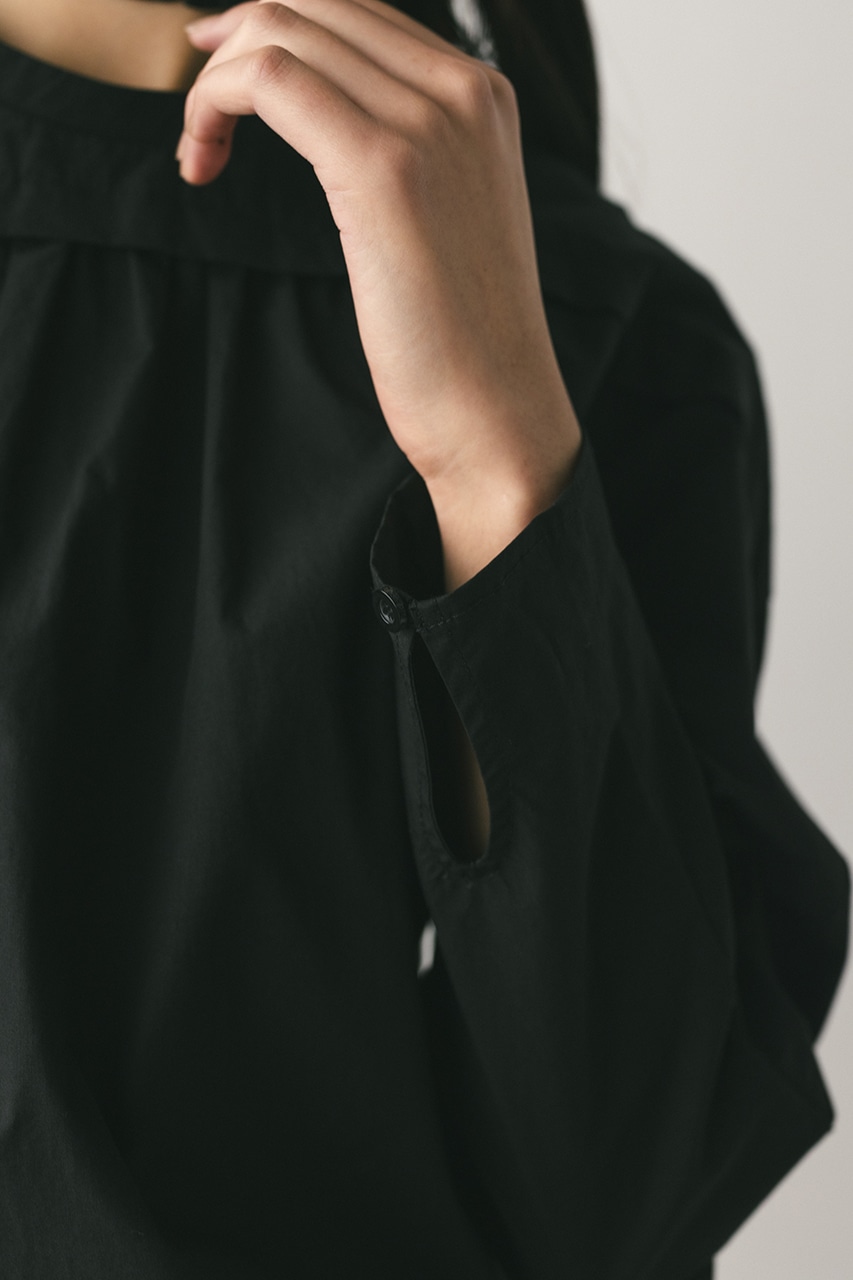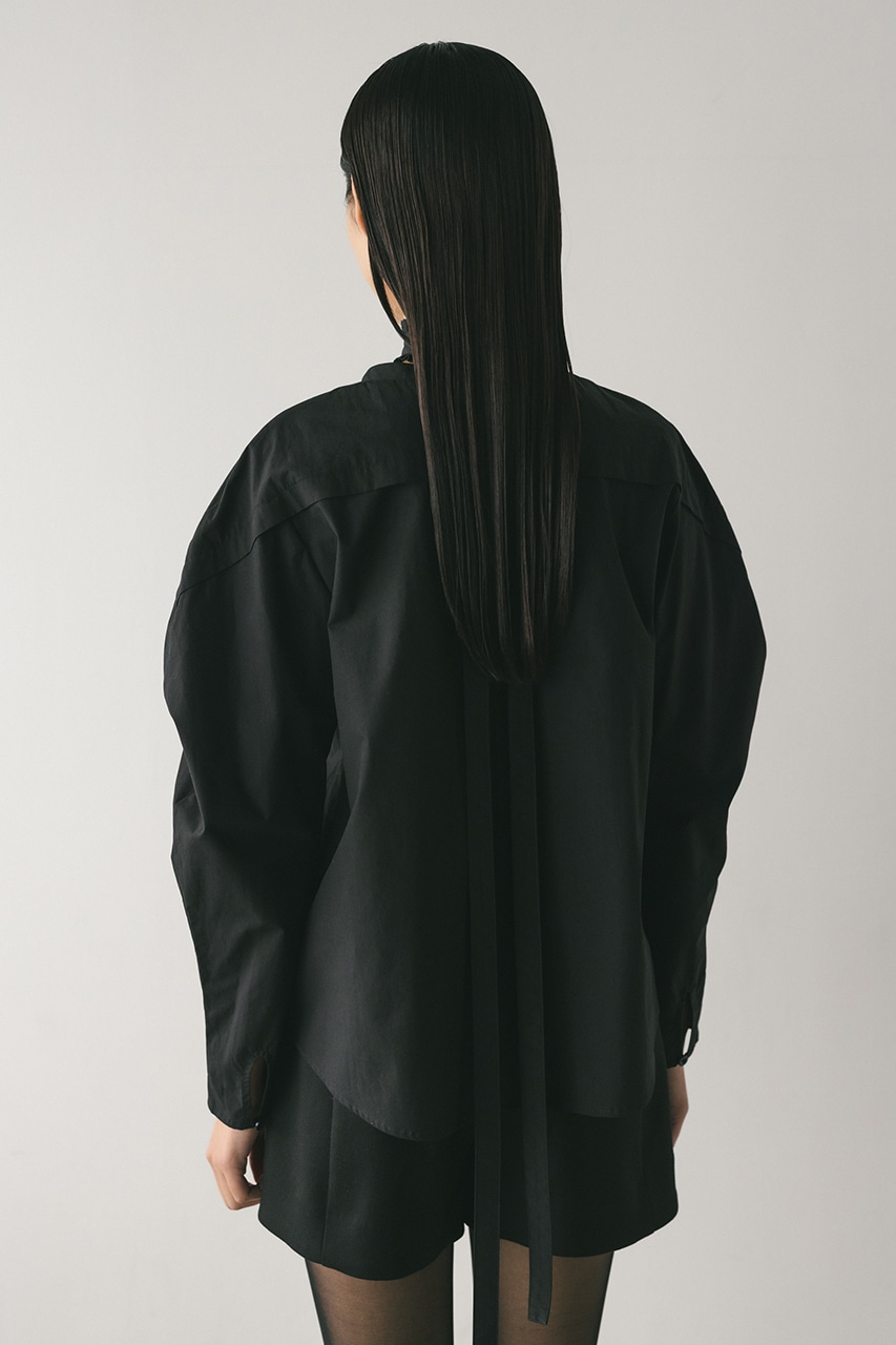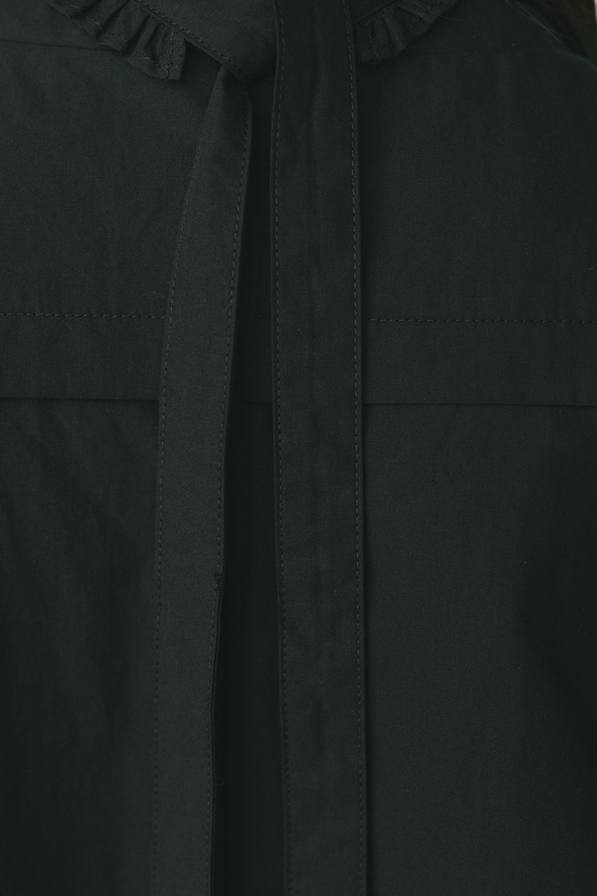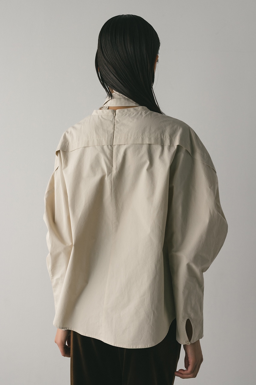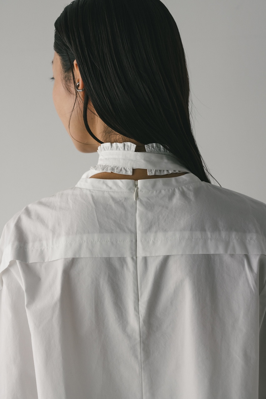 立体的なスリーブが印象的なフリルチョーカー付きブラウス。程よいハリ感でシルエットがきれいに出る一枚。袖デザインがポイントでインナー使いにもおすすめです。部分的にフリルをあしらったチョーカーは、フロントで結んでボウタイにしたり、バックで結んで後ろにタイを垂らしてみたり様々な結び方を楽しめます。ストレッチなし、透け感なし。