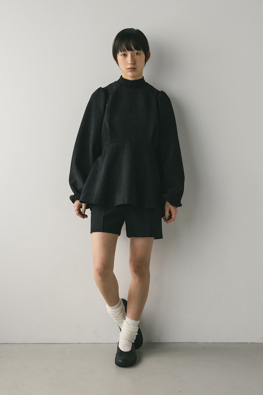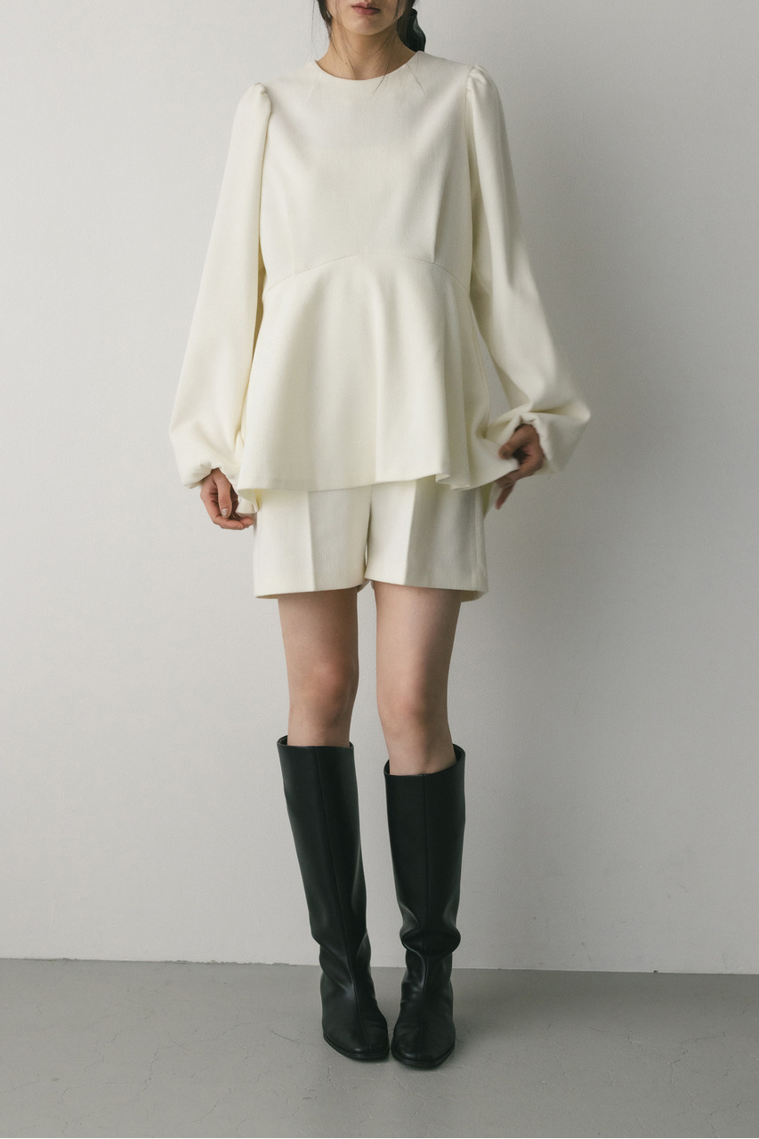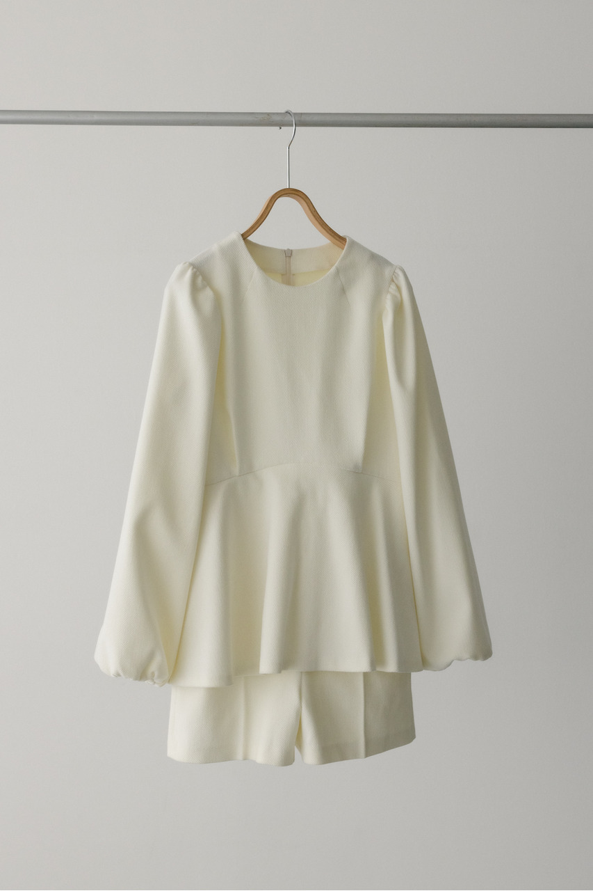 綾目が特徴的な表面感のあるコーデュロイ素材を使用したペプラムシルエットのオールインワン。程よく厚みがありつつも柔らかく温かみのある素材で着心地の良い一枚。全体的にゆったりとしたサイズ感でリラックスして着ていただける大人可愛いミニオールインワンです。長めのペプラムフリルが気になるウエストまわりを自然とカバー。ショートパンツはゆとりのある裾口幅でスタイルアップに導きます。透け感なし、ストレッチなし。