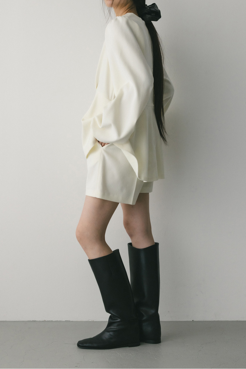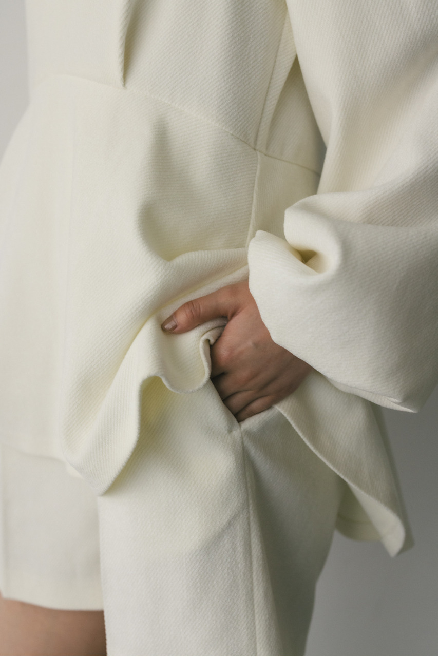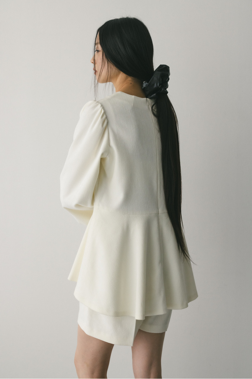 綾目が特徴的な表面感のあるコーデュロイ素材を使用したペプラムシルエットのオールインワン。程よく厚みがありつつも柔らかく温かみのある素材で着心地の良い一枚。全体的にゆったりとしたサイズ感でリラックスして着ていただける大人可愛いミニオールインワンです。長めのペプラムフリルが気になるウエストまわりを自然とカバー。ショートパンツはゆとりのある裾口幅でスタイルアップに導きます。透け感なし、ストレッチなし。