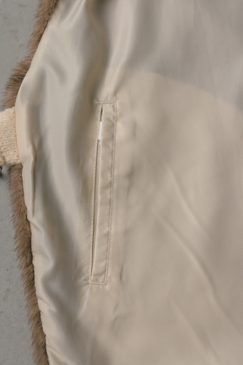 表地:フェイクファー部分ポリエステル100% ニット部分アクリル72% ポリエステル12% ナイロン10% 毛6% 裏地:ポリエステル100%