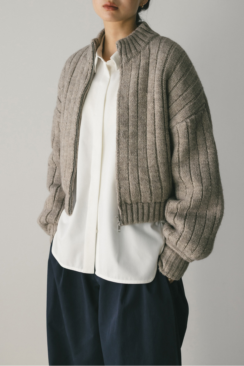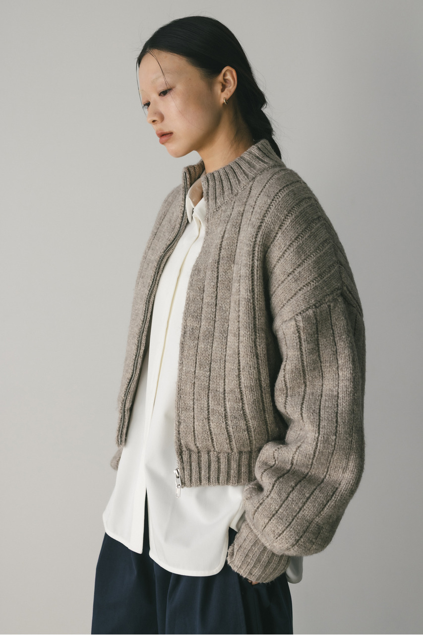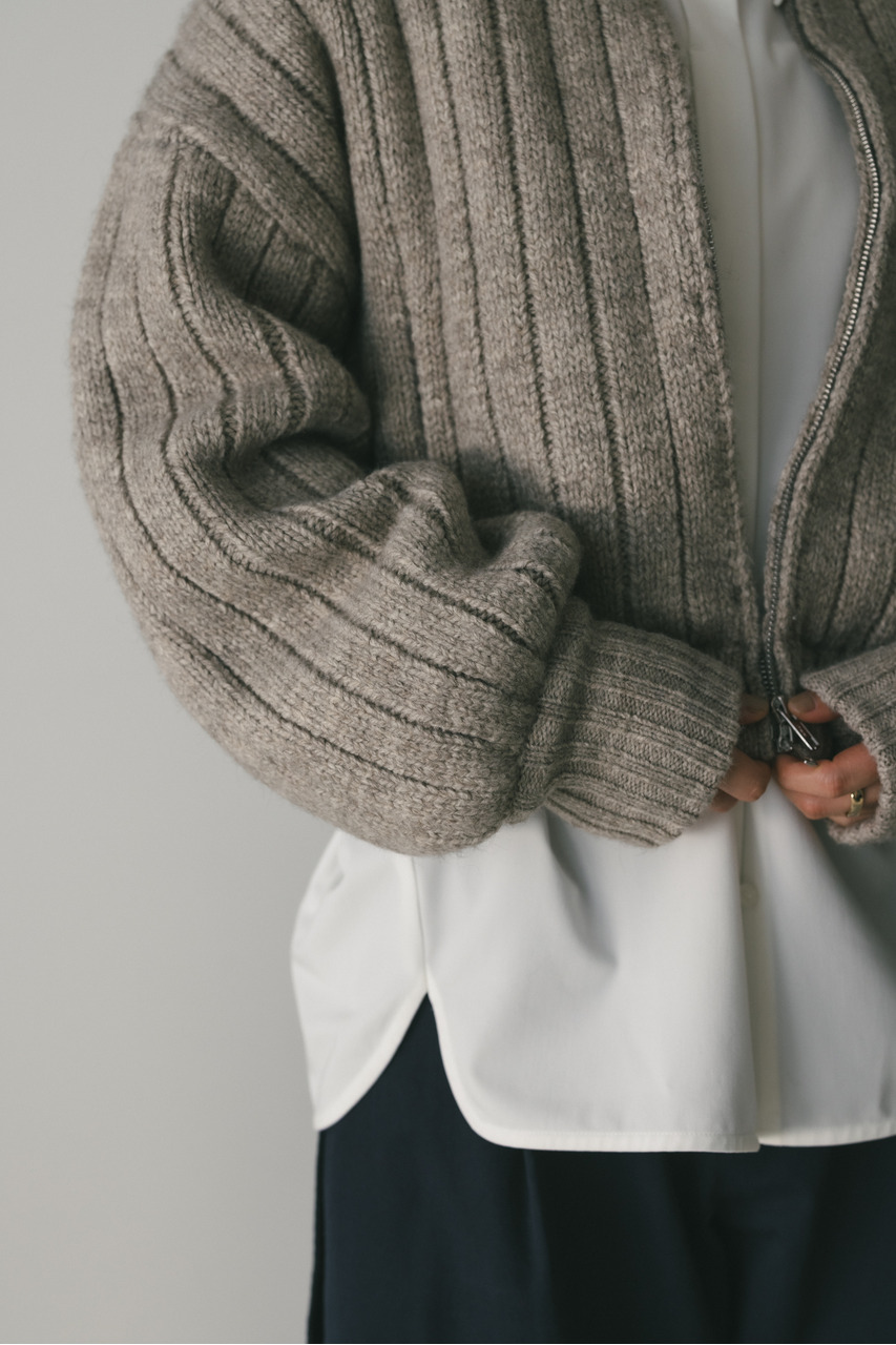 パッファーニットジップカーデ