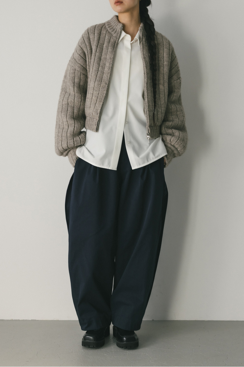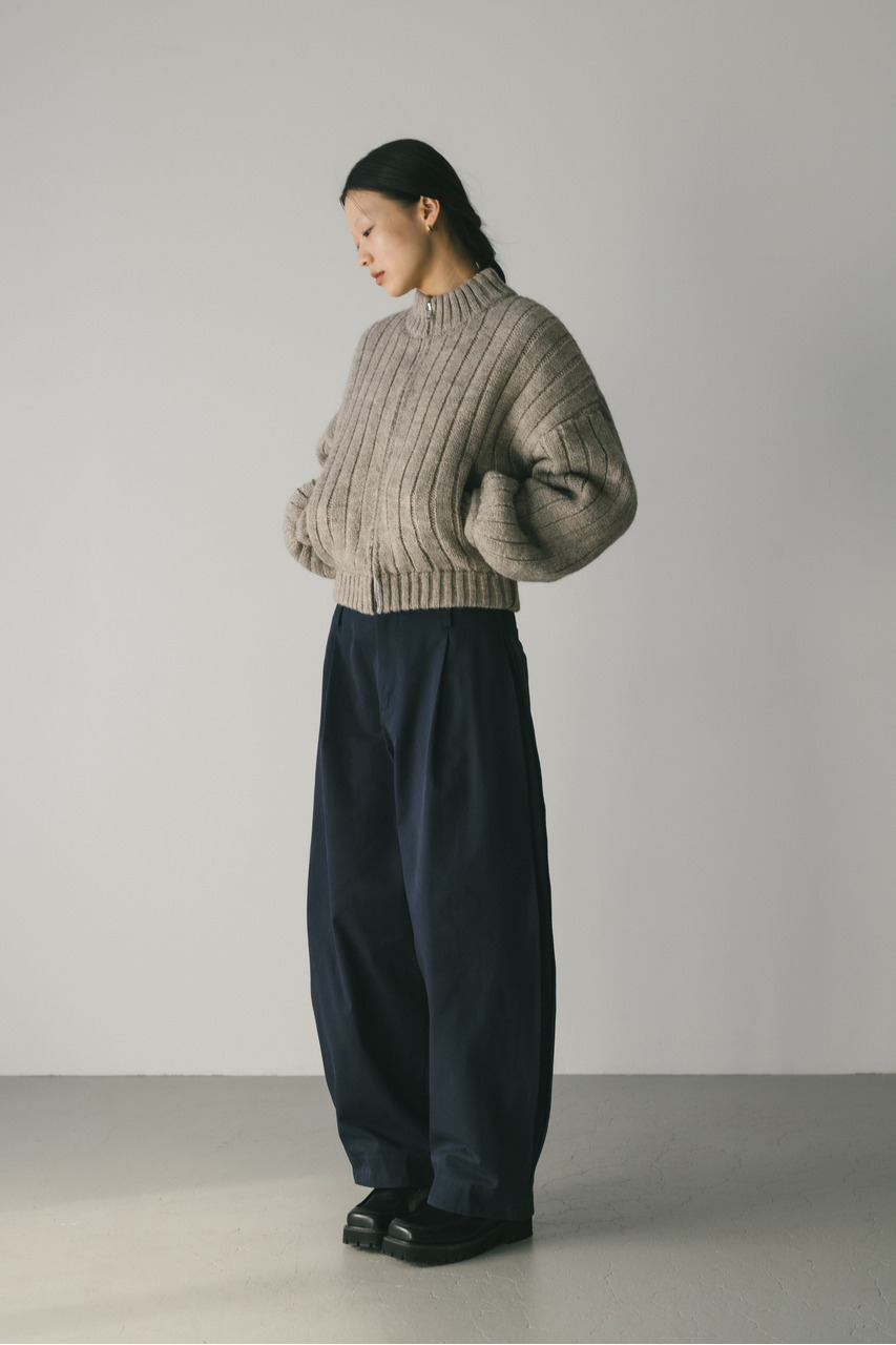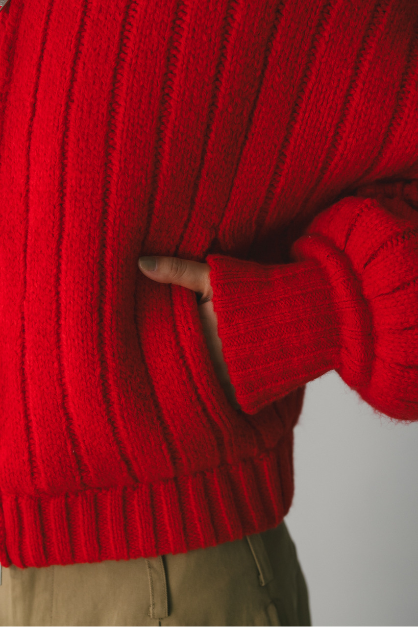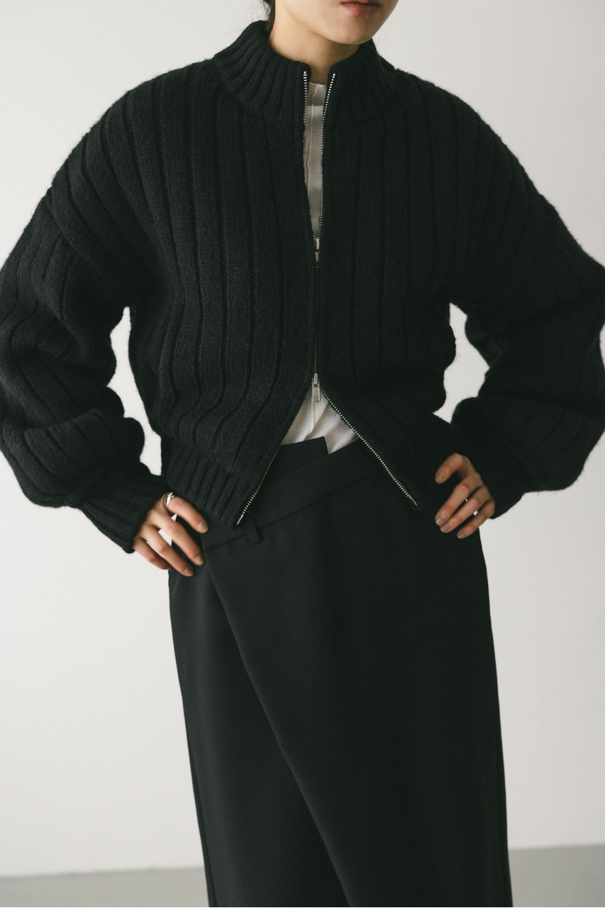 パッファーニットジップカーデ