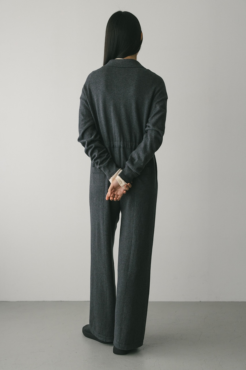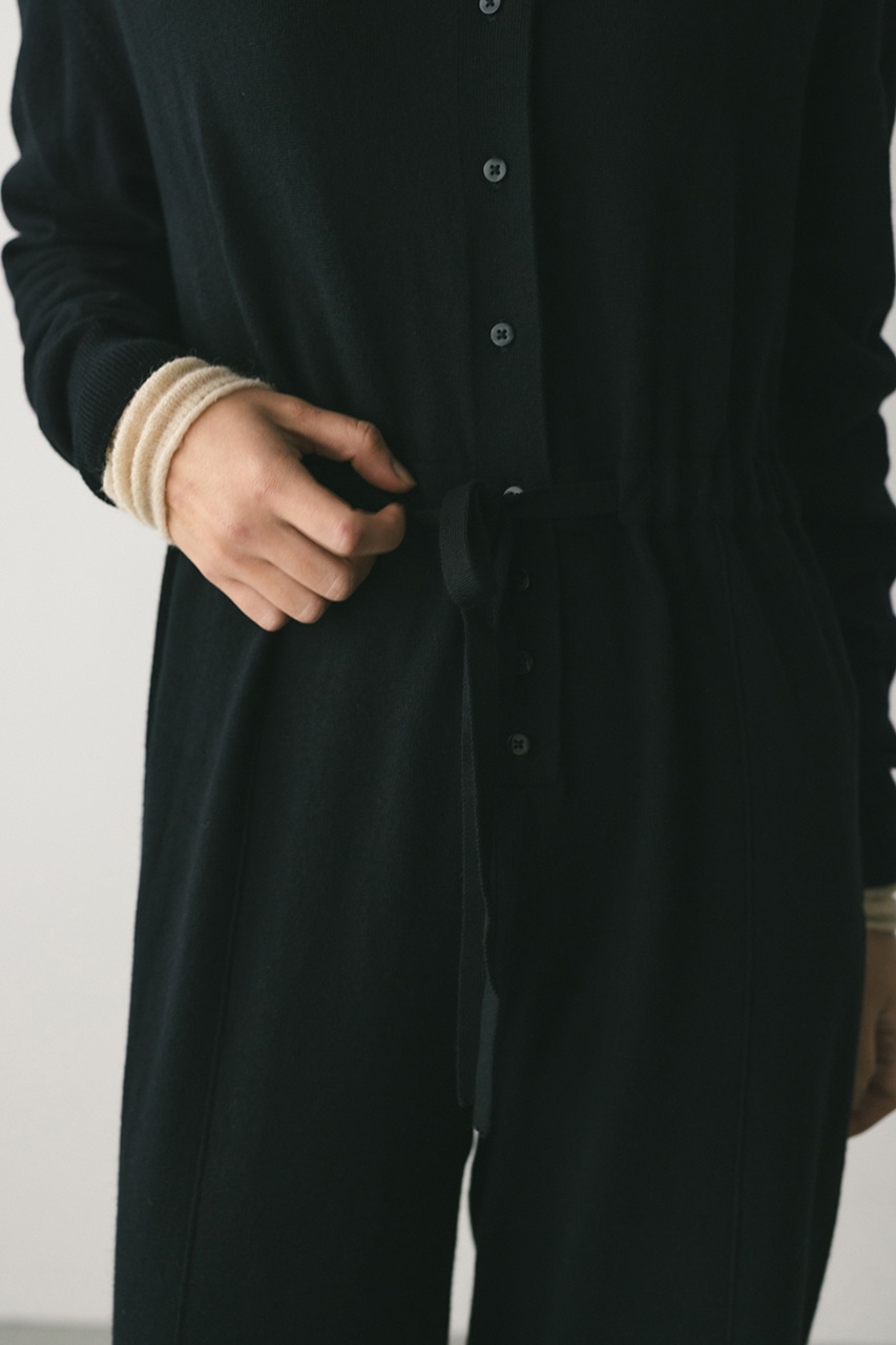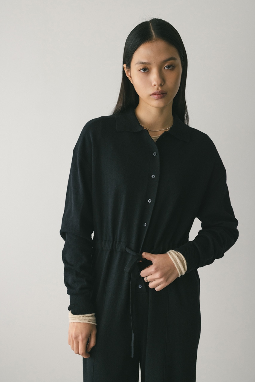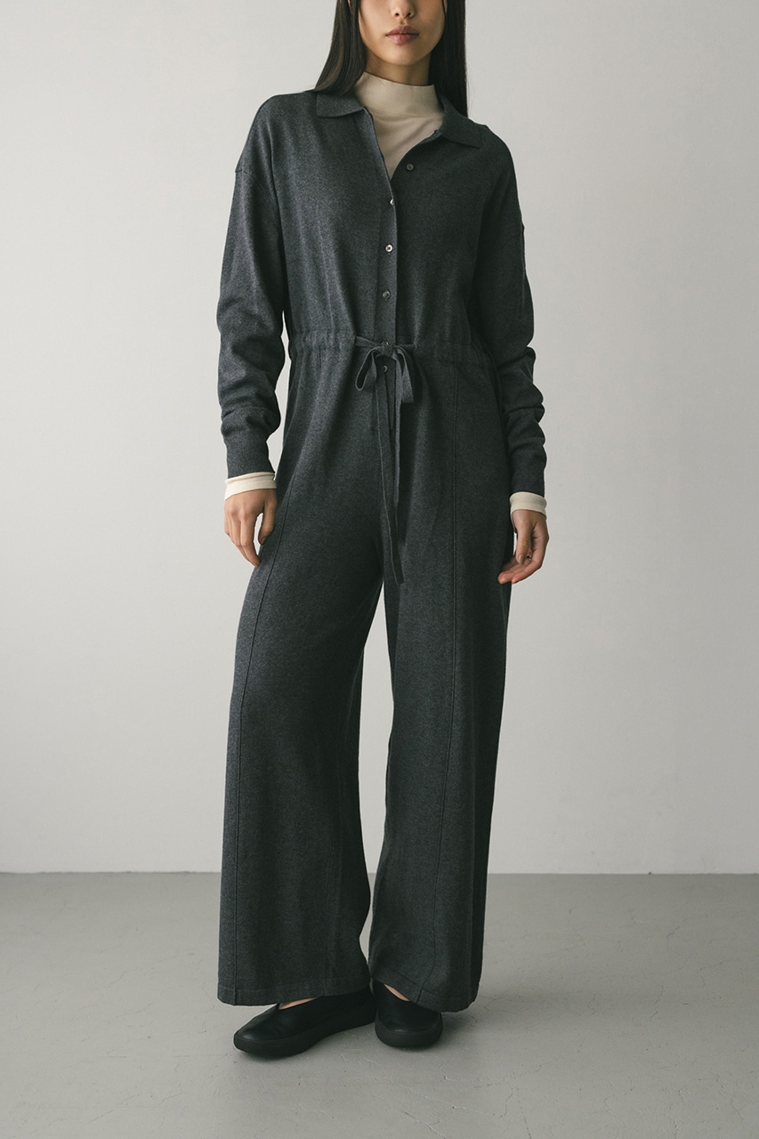大人のリラクシングスタイルを叶えるルーズニットオールインワン。着心地も良く、肌触りと暖かさを兼ね備えた一枚。襟デザインでリラックスの中にもきちんと感をプラス。一枚ではもちろん、ボトムスとしての着用もおすすめです。ウエストひもは調整可能。ブラウジングしたり、ウエスト絞ったりとシルエット変化を楽しめます。ストレッチあり、透け感なし。
