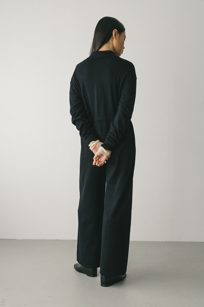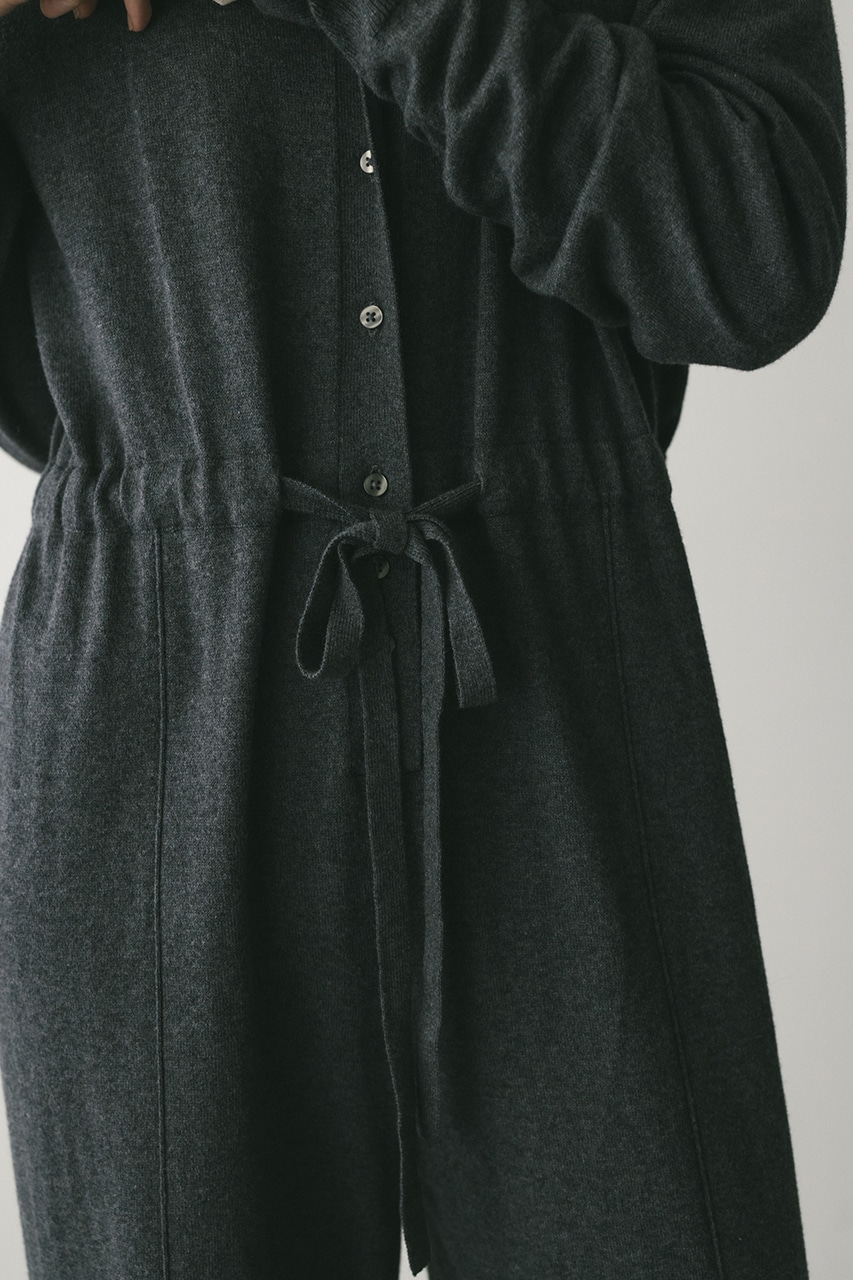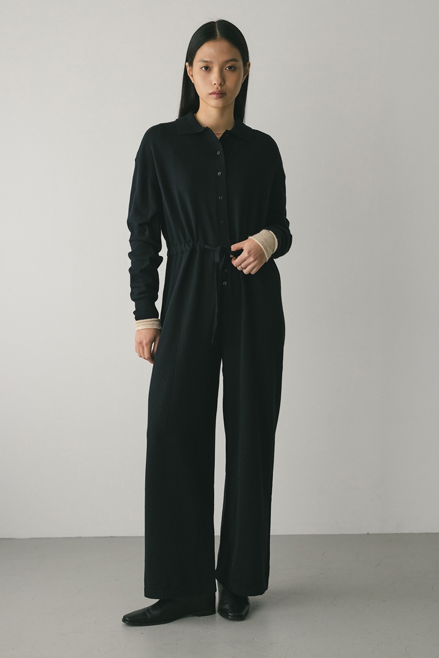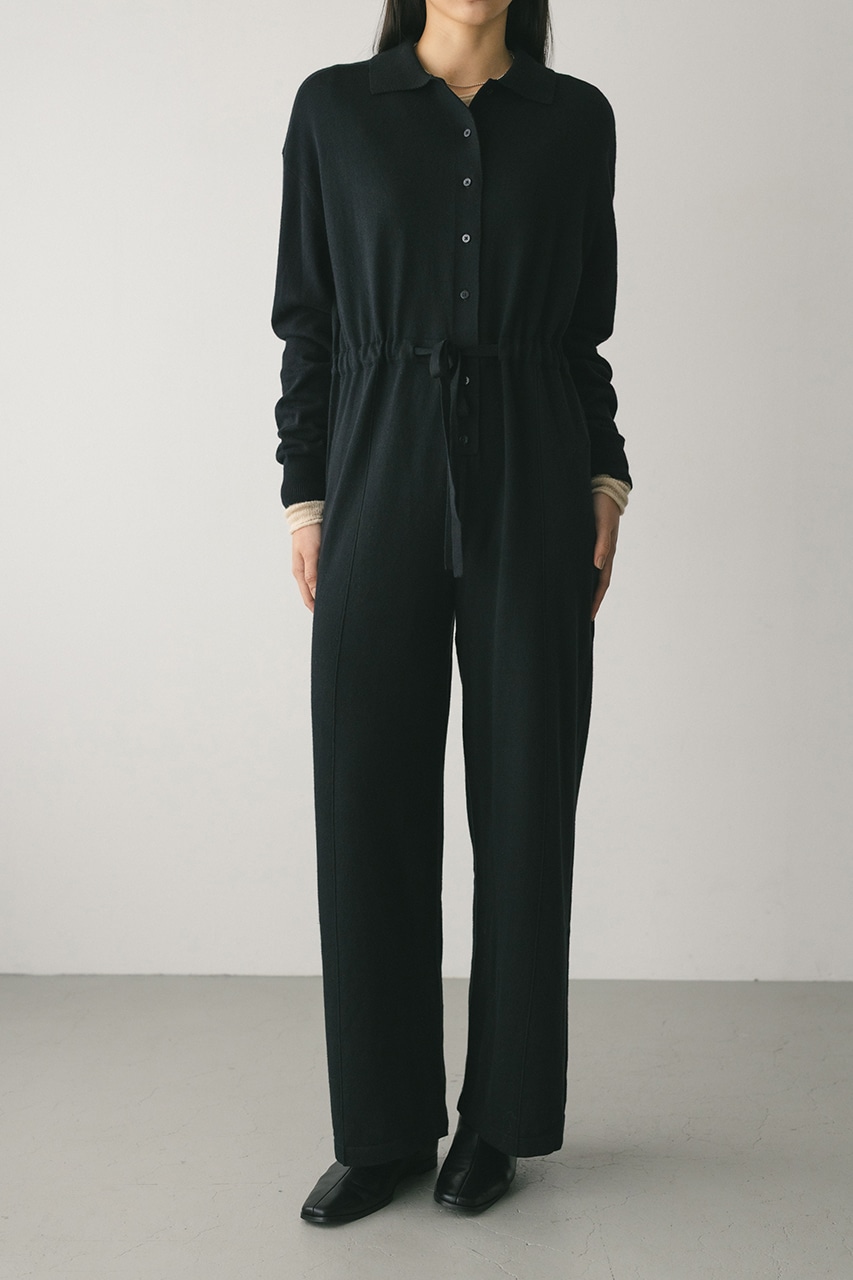 大人のリラクシングスタイルを叶えるルーズニットオールインワン。着心地も良く、肌触りと暖かさを兼ね備えた一枚。襟デザインでリラックスの中にもきちんと感をプラス。一枚ではもちろん、ボトムスとしての着用もおすすめです。ウエストひもは調整可能。ブラウジングしたり、ウエスト絞ったりとシルエット変化を楽しめます。ストレッチあり、透け感なし。