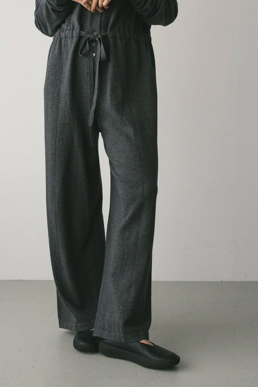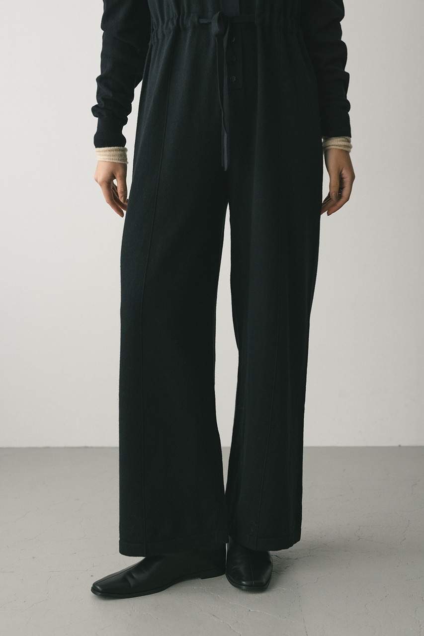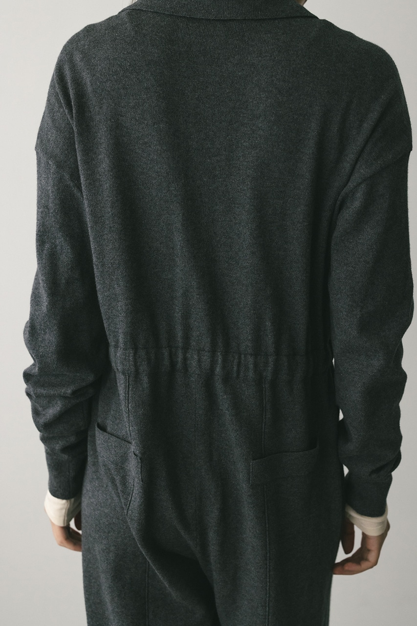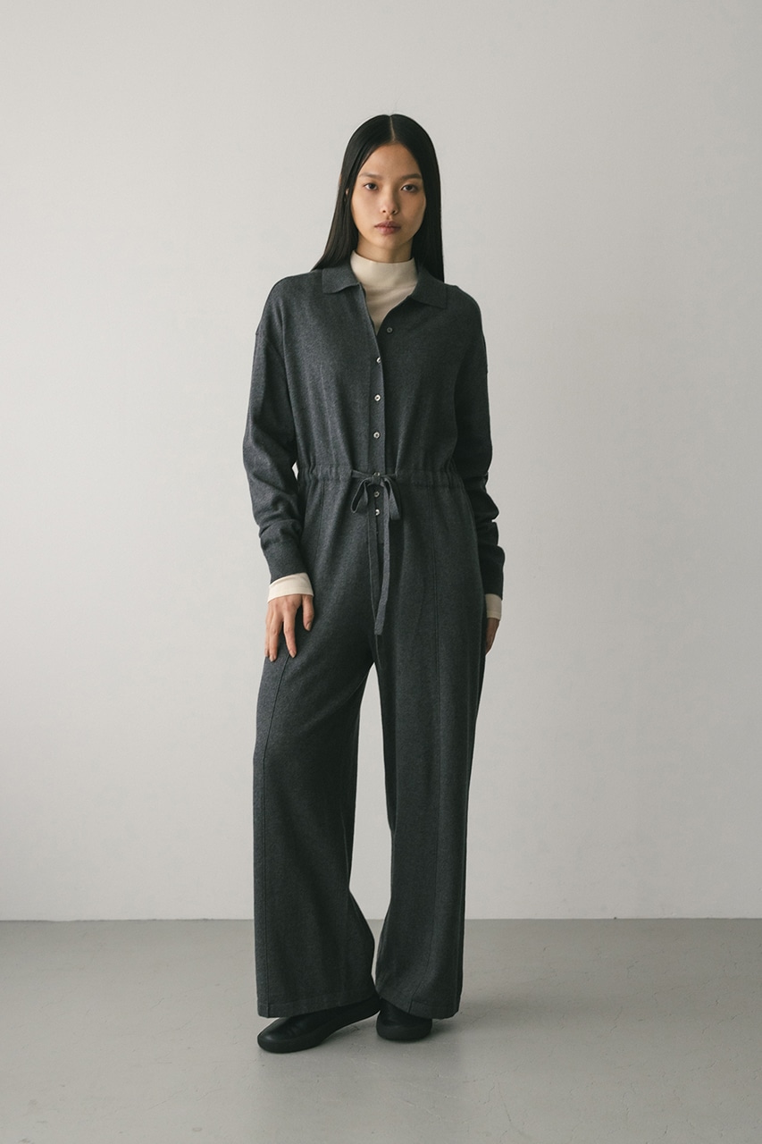 大人のリラクシングスタイルを叶えるルーズニットオールインワン。着心地も良く、肌触りと暖かさを兼ね備えた一枚。襟デザインでリラックスの中にもきちんと感をプラス。一枚ではもちろん、ボトムスとしての着用もおすすめです。ウエストひもは調整可能。ブラウジングしたり、ウエスト絞ったりとシルエット変化を楽しめます。ストレッチあり、透け感なし。